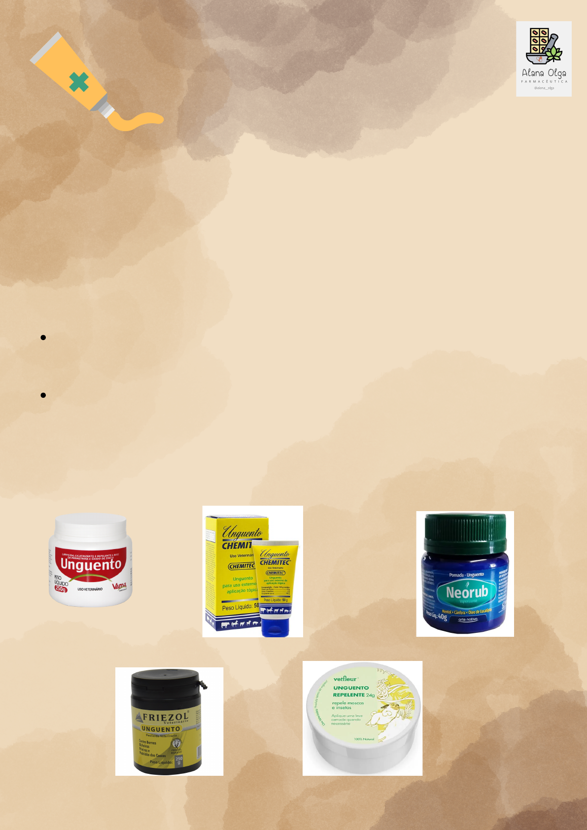 Unguento Conceito São pomadas resinosas, mais resistentes que contém, além da base, uma resina; Administração tópica; Especialidade médica que mais utiliza é a dermatologia; Vantagens São utilizados quando se pretende um maior tempo de atuação e um efeito de proteção nas superfícies externas sem elasticidade; O unguento sofre menos alterações que as pomadas, além de conferir uma consistência maior; Exemplos