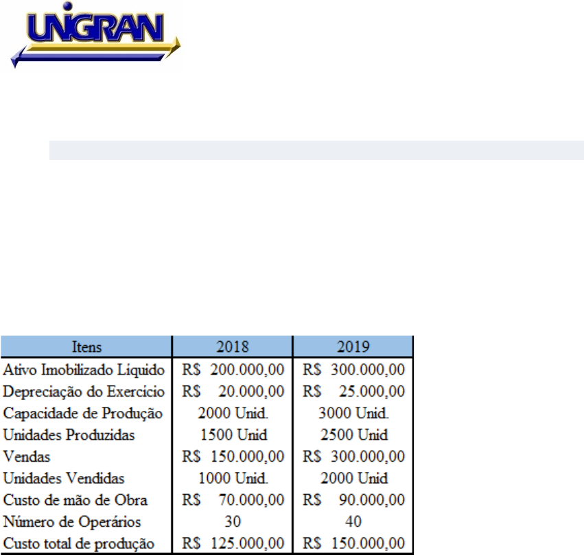 CENTRO UNIVERSITÁRIO DA GRANDE DOURADOS ENSINO A DISTÂNCIA CURSO: CIÊNCIAS CONTÁBEIS DISCIPLINA : Análise das Demonstrações Contábeis II Atividade Aula 7 e 8 Questão 1 (1,5) – As informações a seguir foram disponibilizadas pelo Departamento Contábil de uma Sociedade Anônima. Apesente os Coeficientes desempenho do Imobilizado: a) Nível de Automatização; b) Produção por Imobilizado; c) Grau de Comercialização da Produção; d) Giro do Imobilizado; e) Vida Útil Esperada. Link para Vídeo Aula : https://www.youtube.com/watch?v=yMPCIkrWJbY Questão 2 (1,0) Dados extraídos da Demonstração de Lucros Acumulados da Cia. Pouso Alegre, relativos ao exercício encerrado em 31/12/2019 (em R$): · Ajuste devedor de períodos anteriores R$ 25.000,00 · Dividendos propostos pela administração R$ 200.000,00 · Constituição da Reserva Legal R$ 40.000,00 · Lucro Líquido do Exercício R$ 300.000,00 · Constituição de outras Reservas de Lucros R$ 90.000,00 · Saldo Final em 2019 R$ 0,00 O saldo inicial em 31/12/2019 correspondia: Apresente a DLPA Link para Vídeo Aula : https://www.youtube.com/watch?v=azteeklvq2g