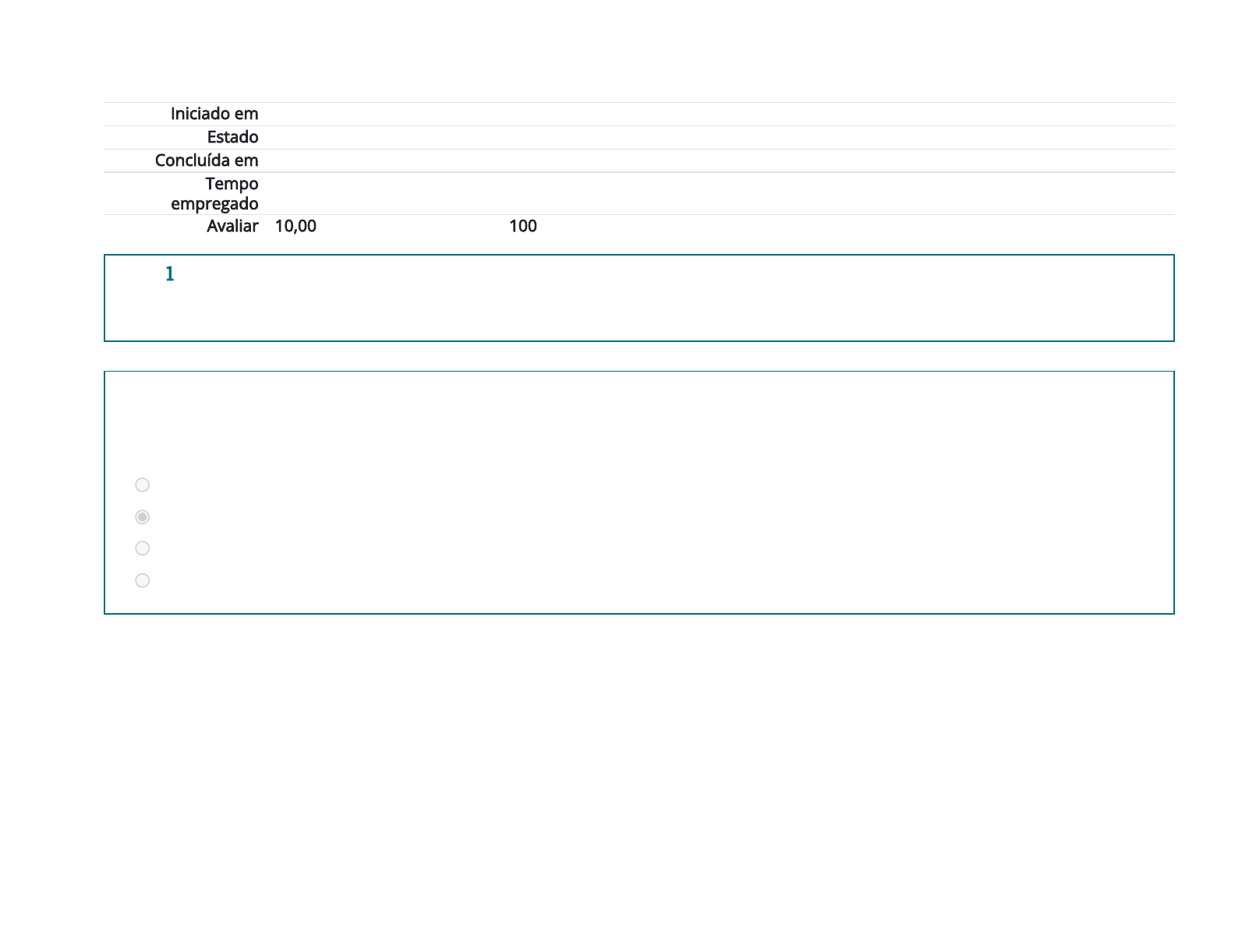 06/09/2022 17:07 Avaliação Final: Revisão da tentativa https://avaunipacevirtual.al.ce.gov.br/mod/quiz/review.php?attempt=9451&cmid=126 1/10 Iniciado em terça, 6 Set 2022, 16:51 Estado Finalizada Concluída em terça, 6 Set 2022, 17:03 Tempo empregado 12 minutos 17 segundos Avaliar 10,00 de um máximo de 10,00(100%) Questão 1 Correto Atingiu 1,00 de 1,00 Tipo de poder baseado na posição do líder na estrutura hierárquica da empresa. É claramente estabelecido e depende do modelo de gestão da organização. Escolha uma opção: a. Recompensa b. Formal c. Penalidade d. Especialista Sua resposta está correta. A resposta correta é: Formal 06/09/2022 17:07 Avaliação Final: Revisão da tentativa https://avaunipacevirtual.al.ce.gov.br/mod/quiz/review.php?attempt=9451&cmid=126 2/10 Questão 2 Correto Atingiu 1,00 de 1,00 São atributos do bom líder, exceto. Escolha uma opção: a. Arrogância b. Humildade c. Entusiasmo d. Ética Sua resposta está correta. A resposta correta é: Arrogância 06/09/2022 17:07 Avaliação Final: Revisão da tentativa https://avaunipacevirtual.al.ce.gov.br/mod/quiz/review.php?attempt=9451&cmid=126 3/10 Questão 3 Correto Atingiu 1,00 de 1,00 Tipo de poder baseado no medo, na capacidade que o líder tem de punir o liderado para in�uenciar comportamentos. Também é muito importante à posição do líder, pois em algumas situações se faz necessário para corrigir comportamentos indesejados. Escolha uma opção: a. Recompensa b. Formal c. Penalidade d. Referência Sua resposta está correta. A resposta correta é: Penalidade 06/09/2022 17:07 Avaliação Final: Revisão da tentativa https://avaunipacevirtual.al.ce.gov.br/mod/quiz/review.php?attempt=9451&cmid=126 4/10 Questão 4 Correto Atingiu 1,00 de 1,00 Associe os Tipos de Poder e suas de�nições. Baseado na posse ou acesso do líder a informações consideradas importantes pelos liderados, nas relações do líder com pessoas importantes ou in�uentes e em seu carisma ou características pessoais admiradas. Baseado na posição do líder na estrutura hierárquica da empresa. É claramente estabelecido e depende do modelo de gestão da organização. Baseia-se na experiência, habilidade e conhecimento que o líder possui. Peritos ou especialistas em alguma área podem inspirar outras pessoas passando-lhes conhecimento e esperando conformidade com suas expectativas. Referência Formal Especialista Sua resposta está correta. A resposta correta é: Baseado na posse ou acesso do líder a informações consideradas importantes pelos liderados, nas relações do líder com pessoas importantes ou in�uentes e em seu carisma ou características pessoais admiradas. → Referência, Baseado na posição do líder na estrutura hierárquica da empresa. É claramente estabelecido e depende do modelo de gestão da organização. → Formal, Baseia-se na experiência, habilidade e conhecimento que o líder possui. Peritos ou especialistas em alguma área podem inspirar outras pessoas passando-lhes conhecimento e esperando conformidade com suas expectativas. → Especialista. 06/09/2022 17:07 Avaliação Final: Revisão da tentativa https://avaunipacevirtual.al.ce.gov.br/mod/quiz/review.php?attempt=9451&cmid=126 5/10 Questão 5 Correto Atingiu 1,00 de 1,00 Muitas vezes o líder foca tanto em uma ação com um aparente benefício, que deixa de perceber a organização como um todo e não antevem os consequentes resultados indesejados. Escolha uma opção: Verdadeiro Falso A resposta correta é 'Verdadeiro'. 06/09/2022 17:07 Avaliação Final: Revisão da tentativa https://avaunipacevirtual.al.ce.gov.br/mod/quiz/review.php?attempt=9451&cmid=126 6/10 Questão 6 Correto Atingiu 1,00 de 1,00 Peter Drucker enfatizava quatro métodos para alcançar engajamento. Qual método a�rma que se você pegar uma pessoa altamente capacitada e lhe der uma tarefa muito inferior, provavelmente ele não fará um bom trabalho, porque não se sente desa�ado? Escolha uma opção: a. Focar a alocação cuidadosa e a promoção b. Proporcionar informações aos trabalhadores c. Encorajar os trabalhadores na aquisição da visão gerencial d. Exigir altos padrões de desempenho Sua resposta está correta. A resposta correta é: Exigir altos padrões de desempenho 06/09/2022 17:07 Avaliação Final: Revisão da tentativa https://avaunipacevirtual.al.ce.gov.br/mod/quiz/review.php?attempt=9451&cmid=126 7/10 Questão 7 Correto Atingiu 1,00 de 1,00 Aprendizagem contínua é autorresponsabilidade. Este conceito serve tanto para pessoas quanto para organizações. Escolha uma opção: Verdadeiro Falso A resposta correta é 'Verdadeiro'. 06/09/2022 17:07 Avaliação Final: Revisão da tentativa https://avaunipacevirtual.al.ce.gov.br/mod/quiz/review.php?attempt=9451&cmid=126 8/10 Questão 8 Correto Atingiu 1,00 de 1,00 Segundo Rensis Likert, é o sistema administrativo democrático. Há um envolvimento total dos colaboradores no estabelecimento de metas e métodos de trabalho. Estilo de gestão que preconiza o trabalho em equipe e suscita um clima organizacional amistoso e prazeroso. Escolha uma opção: a. Consultivo b. Autocrático Coercitivo c. Participativo d. Autocrático Benevolente Sua resposta está correta. A resposta correta é: Participativo 06/09/2022 17:07 Avaliação Final: Revisão da tentativa https://avaunipacevirtual.al.ce.gov.br/mod/quiz/review.php?attempt=9451&cmid=126 9/10 Questão 9 Correto Atingiu 1,00 de 1,00 Segundo Rensis Likert, o estilo de liderança em que o líder consulta os subordinados antes de estabelecer os objetivos e tomar decisões. Mas ainda há pouca interação entre os agentes e baixo nível de controle dos resultados atingidos, é o: Escolha uma opção: a. Participativo b. Consultivo c. Autocrático coercitivo d. Autocrático benevolente Sua resposta está correta. A resposta correta é: Consultivo 06/09/2022 17:07 Avaliação Final: Revisão da tentativa https://avaunipacevirtual.al.ce.gov.br/mo