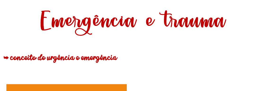 - Emergência: risco iminente de morte ou sofrimento intenso. - Urgência: sem risco potencial à vida (Uma urgência pode evoluir para emergência) ➥ Política nacional - Garantir integralidade, universalidade, equidade. - Organização de redes assistenciais ( pactuação) - Atendimento priorizado: coração, osso, trauma e AVC’s ➥ Diretrizes - Articular, conectar, humanizar, integralidade. - Regionalização - Caminho em que a rede nacional quer chegar. (procurar a unidade mais próxima possível, que possa tratar seu caso) ➥ componentes / pontos de atenção - Atenção básica= estabelecer vinculo, 1º contato/cuidado - Força nacional do SUS= situação de calamidade pública - sala de estabilização= estabilizar e mandar para a unidade mais próxima. - SAMU = estabilizar e transportar. - UPA= média complexidade / investigação inicial. - Rede hospitalar= alta complexidade, enfermarias especificas, UTI’s. - Atenção domiciliar= reabilitação - Vigilância, promoção e prevenção. ➥ Biomecânica - Avaliação “física” do trauma - Leis da física (como a física interferiu no acidente, o que causou) ➥ Repercussão das lesões - Tipos de traumas: cervical, bacia, tórax, TCE, perfuração de órgãos, etc. ➥ XABCDE - Avaliação primária - X = hemorragia exsanguinante / hemorragias graves que podem ocasionar a morte - A = desobstrução de vias áreas - B = ventilação e respiração - C = circulação e controle de hemorragia - D = estado neurológico - E = exposição e controle de hipotermia ➥ SBV - CAUSAS: Extra hospitalar = doenças cardíacas pré-existente Intra hospitalar= 5 H’s e 5 T’s 5 H’s= hipovolemia, hipóxia, hidrogênio (distúrbio metabólico), hipotermia, hipo/hipercalemia. 5 T’s= tamponamento cardíaco, TEP (tromboembolismo pulmonar), trombose coronariana, tóxicos, pneumotórax ➥ CABD - Priorizar a massagem cardíaca em casos de parada cardiorrespiratória, para não perder (em casos de não achar o pulso) e colocar a vida do paciente em risco. - C = checar responsividade e respiração. Chamar por ajuda Checar pulso Compressões torácicas - A = abertura de vias aéreas - B = boa ventilação - D = desfibrilação ➥ cadeia de sobrevivência - o que pode ser feito no local que estou? - PASSOS: Extra hospitalar= 1º: acionar o samu 2º: RCP imediata 3º: rápida desfibrilação 4º: serviços médicos básicos e avançados de emergência 5º: cuidados pós parada cardíaca Revisão para prova Intra hospitalar= 1º: vigilância e prevenção 2º: acionar equipe 3º: RCP imediata 4º: rápida desfibrilação 5º: cuidados pós parada cardíaca ➥ classificação de risco ➥ TCE - Escala de glasgow - Abertura ocular, resposta motora, resposta verbal, reatividade pupilar ➥ TRM - Pneumotórax= Aberto: curativo 3 pontos Simples: acúmulo de ar na cavidade entre a pleura visceral e parietal Hipertensivo: acúmulo de ar no espaço pleural sob pressão, comprimindo os pulmões e diminuindo o retorno venoso para o coração.