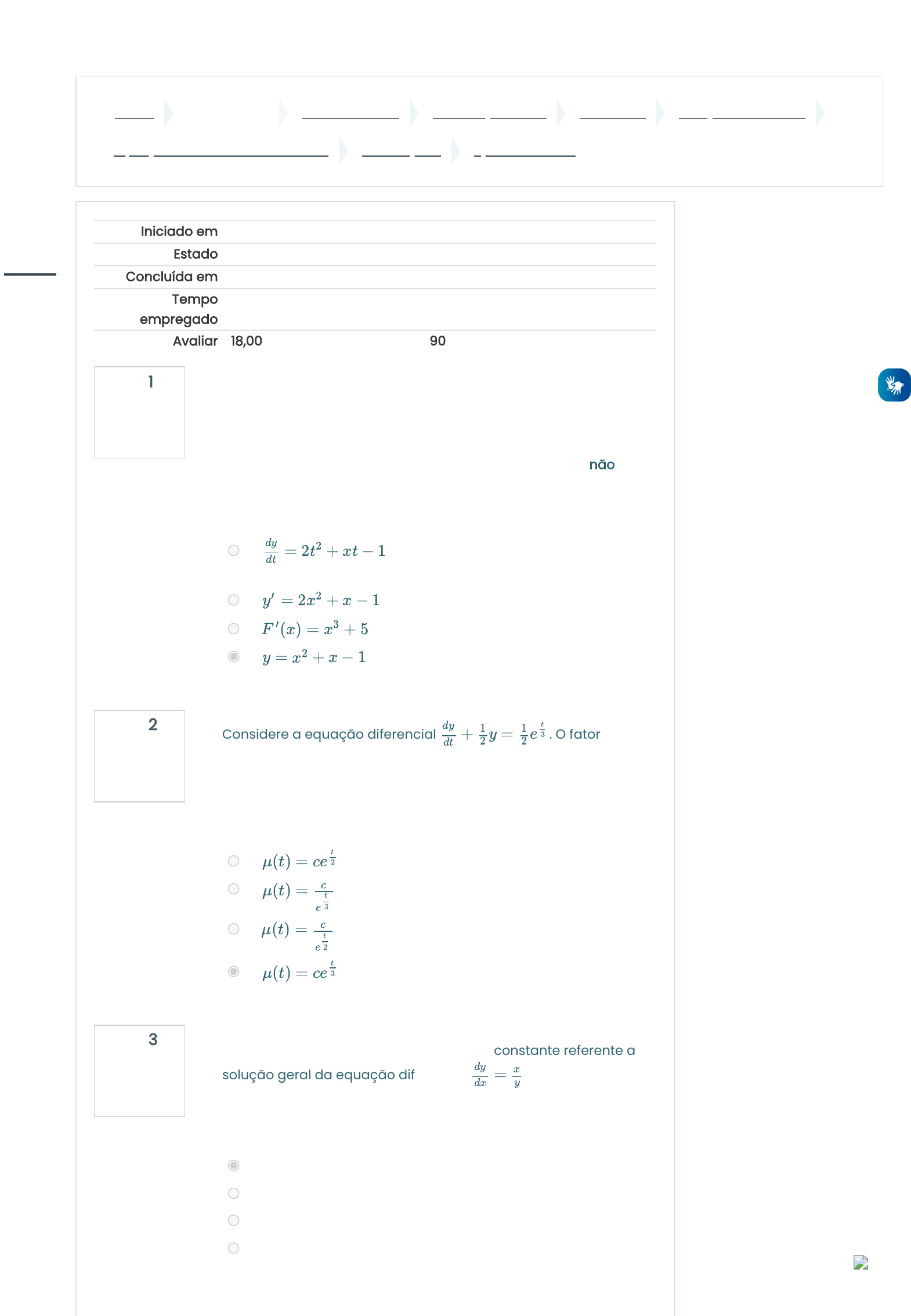 Equações Diferenciais Ordinárias AVALIAÇÕES QUESTIONÁRIO 1