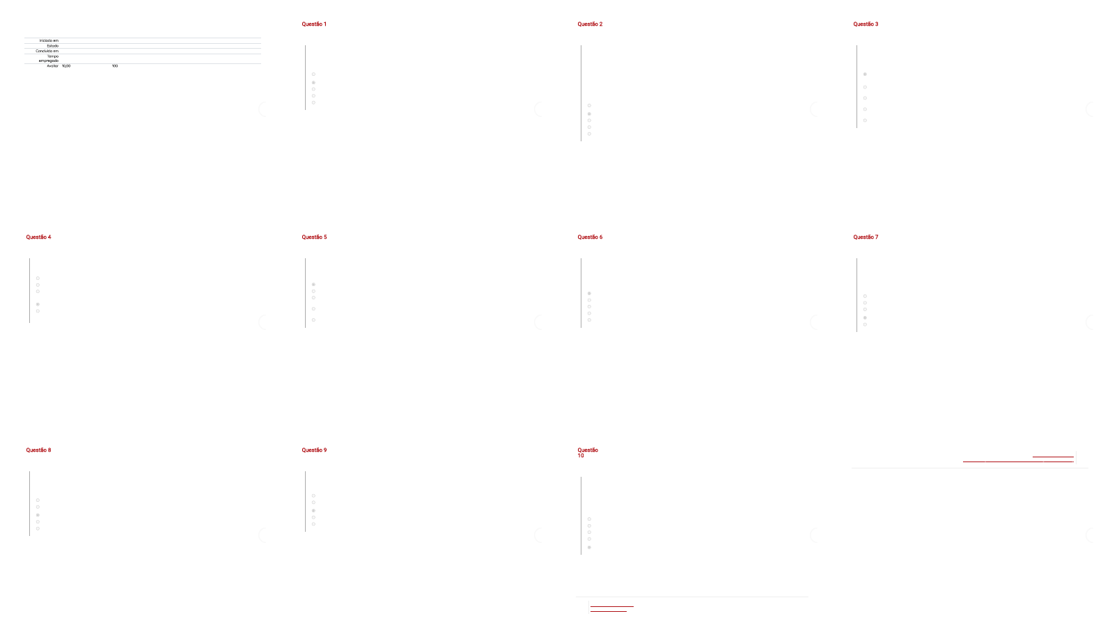 01/06/2022 14:05 Avaliação Formativa II: Revisão da tentativa https://virtual.uninta.edu.br/mod/quiz/review.php?attempt=3684842&cmid=115394 1/12 Iniciado em Wednesday, 1 Jun 2022, 13:53 Estado Finalizada Concluída em Wednesday, 1 Jun 2022, 14:04 Tempo empregado 10 minutos 49 segundos Avaliar 10,00 de um máximo de 10,00(100%) 01/06/2022 14:05 Avaliação Formativa II: Revisão da tentativa https://virtual.uninta.edu.br/mod/quiz/review.php?attempt=3684842&cmid=115394 2/12 Questão 1 Correto Atingiu 1,00 de 1,00 Para viabilizar os procedimentos, para uma pesquisa necessitamos de protocolos e recomendações, para o preenchimento dos resultados a serem coletados e como forma de uniformizar as coletas dos dados. Qual deve ser a sequência dos protocolos. Responda a sequência de procedimentos. Escolha uma opção: A. Identi�cação, recomendações dados antropométricos, resultados e observações. B. Identi�cação, dados antropométricas, resultados, observações e recomendações. C. Identi�cação, observações dados antropométricos, resultados, e recomendações. D. Identi�cação, recomendações, observações, dados antropométricos e resultados. E. Identi�cação, recomendações dados antropométricos, resultados e observações. Sua resposta está correta. Questão 10 - CINEANTROPOMETRIA - AP2 A resposta correta é: Identi�cação, dados antropométricas, resultados, observações e recomendações. 01/06/2022 14:05 Avaliação Formativa II: Revisão da tentativa https://virtual.uninta.edu.br/mod/quiz/review.php?attempt=3684842&cmid=115394 3/12 Questão 2 Correto Atingiu 1,00 de 1,00 A escolha do teste para a realização de uma avaliação física deve ser fundamentada em três grandes perspectivas ou três grandes pilares. São eles o público alvo, o instrumento a ser utilizado e o objetivo da avaliação física. Considerando os três grandes pilares, julgue as a�rmações abaixo: I) A avaliação física deve conter os testes mais atualizados e �dedignos possíveis, independente de estar ao alcance ou não do avaliador. II) A avaliação física deve mensurar variáveis que permitam avaliar e acompanhar o objetivo do aluno. III) O instrumento de medida a ser utilizado deve ter garantias de que foi a melhor solução para a avaliação do cliente, mesmo que não seja 100% �dedigno. IV) O teste a ser realizado independe do público alvo, uma vez que o teste deve mensurar uma valência física ou antropométrica. É correto apenas o que se a�rma em: Escolha uma opção: A. I e III. B. II e III. C. I e II. D. I e IV. E. II e IV. Sua resposta está correta. Questão 17 - CINEANTROPOMETRIA - AP2 A resposta correta é: II e III. 01/06/2022 14:05 Avaliação Formativa II: Revisão da tentativa https://virtual.uninta.edu.br/mod/quiz/review.php?attempt=3684842&cmid=115394 4/12 Questão 3 Correto Atingiu 1,00 de 1,00 Você mediu a circunferência da cintura dos seus alunos que participam das atividades extracurriculares da escola em que trabalha. O grupo 1 (10 a 12 anos), obteve uma média de 85 cm, grupo 2 (13 a 15 anos) de 76 cm e o grupo 3 (16 a 18 anos) de 75cm. Ao Interpretar os dados seguindo os valores tabelados de Fernández (2004), você pode concluir que: Escolha uma opção: A. O grupo 1 apresentou acúmulo de gordura central considerado excessivo para a idade, o grupo 2 um pouco acima da média e o grupo 3 dentro dos padrões normais para idade. B. O grupo 1 apresentou acúmulo de gordura central considerado excessivo para a idade, já os grupos 2 e 3 apresentaram-se acima da média para as respectivas idades. C. Todos os grupos apresentaram acúmulo de gordura central, mas o grupo 2 apresentou uma pequena redução devido à aceleração do crescimento especí�ca da idade. D. O grupo 1 apresentou acúmulo de gordura central considerado excessivo para a idade, já os grupos 2 e 3 apresentaram-se dentro da normalidade para as respectivas idades. E. Todos os grupos apresentam-se dentro da média, não demonstrando acúmulo de gordura central. Sua resposta está correta. Questão 19 - CINEANTROPOMETRIA - AP2 A resposta correta é: O grupo 1 apresentou acúmulo de gordura central considerado excessivo para a idade, o grupo 2 um pouco acima da média e o grupo 3 dentro dos padrões normais para idade. 01/06/2022 14:05 Avaliação Formativa II: Revisão da tentativa https://virtual.uninta.edu.br/mod/quiz/review.php?attempt=3684842&cmid=115394 5/12 Questão 4 Correto Atingiu 1,00 de 1,00 A utilização da antropometria na escola é justi�cada por vários aspectos. Identi�que e marque a alternativa correta. Escolha uma opção: A. Permite identi�car riscos a saúde associada a índices excessivamente altos ou baixos de gordura corporal. B. Possibilita a identi�cação de disfunções no crescimento ou de per�l morfológico de risco. C. Propicia o acompanhamento das variáveis relacionadas ao crescimento e desenvolvimento físico em relação à idade cronológica e maturacional. D. todas as respostas estão corretas. E. Proporciona o monitoramento de mudanças na composição corporal, associadas aos processos de crescimento, desenvolvimento, maturação e idade. Sua resposta está correta. Questão 6 - CINEANTROPOMETRIA - AP2 A resposta correta é: todas as respostas estão corretas. 01/06/2022 14:05 Avaliação Formativa II: Revisão da tentativa https://virtual.uninta.edu.br/mod/quiz/review.php?attempt=3684842&cmid=115394 6/12 Questão 5 Correto Atingiu 1,00 de 1,00 Responda a alternativa correta: A utilização da antropometria na escola é justi�cada pelos seguintes aspectos: Escolha uma opção: A. Todas as respostas estão corretas. B. Possibilita a identi�cação de disfunções no crescimento ou de per�l morfológico de risco. C. Propicia o acompanhamento das variáveis relacionadas ao crescimento e desenvolvimento físico em relação à idade cronológica e maturacional. D. Proporciona o monitoramento de mudanças na composiç