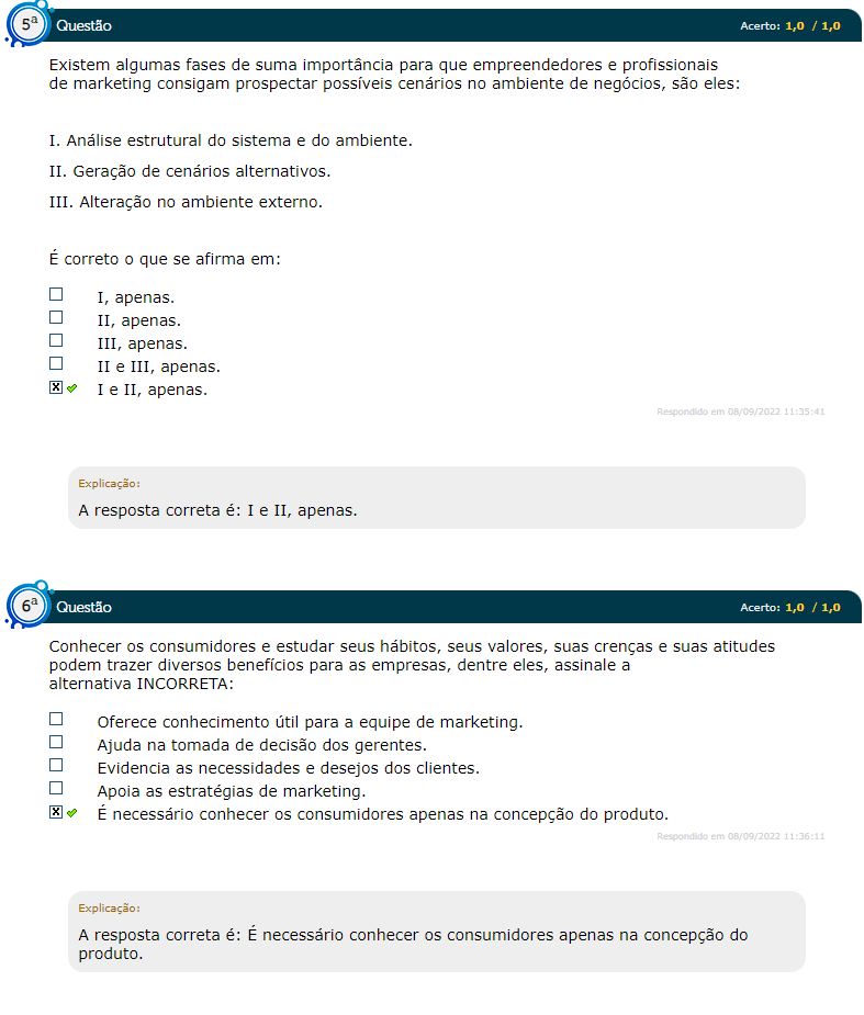 Existem algumas fases de suma importância para que empreendedores e profissionais de marketing consigam possíveis cenários no ambiente de negócios. É correto que se afirma em: I. Análise estrutural do sistema e do ambiente. II. Geração de cenários alternativos. III. Alteração no ambiente externo. I, apenas. II, apenas. III, apenas. II e III, apenas. I e II, apenas.
