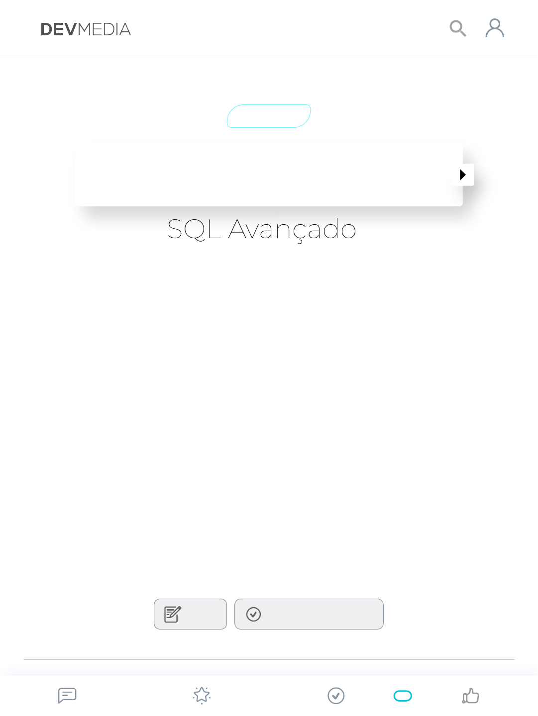 Anotar Marcar como concluído Artigos Artigo SQL Avançado Veja nesse artigo algumas funções avançadas de SQL, assim como trabalhar com datas, conversões e relacionamento entre tabelas. Invista em você! Saiba como a DevMedia pode ajudar sua carreira. 82 SQL Avançado https://www.devmedia.com.br/sql-avancado/28889 1 of 19 12/07/2022 22:33 https://www.devmedia.com.br/pro/?utm_source=devmedia&utm_medium=banner&utm_campaign=Caneca%20DevMedia https://www.devmedia.com.br/pro/?utm_source=devmedia&utm_medium=banner&utm_campaign=Caneca%20DevMedia https://www.devmedia.com.br/pro/?utm_source=devmedia&utm_medium=banner&utm_campaign=Caneca%20DevMedia https://www.devmedia.com.br/pro/?utm_source=devmedia&utm_medium=banner&utm_campaign=Caneca%20DevMedia https://www.devmedia.com.br/pro/?utm_source=devmedia&utm_medium=banner&utm_campaign=Caneca%20DevMedia https://www.devmedia.com.br/pro/?utm_source=devmedia&utm_medium=banner&utm_campaign=Caneca%20DevMedia https://www.devmedia.com.br/pro/?utm_source=devmedia&utm_medium=banner&utm_campaign=Caneca%20DevMedia https://www.devmedia.com.br/pro/?utm_source=devmedia&utm_medium=banner&utm_campaign=Caneca%20DevMedia https://www.devmedia.com.br/artigos/ https://www.devmedia.com.br/artigos/ https://www.devmedia.com.br/artigos/ https://www.devmedia.com.br/sql-avancado/28889#modulo-mvp https://www.devmedia.com.br/sql-avancado/28889#modulo-mvp https://www.devmedia.com.br/sql-avancado/28889#modulo-mvp https://www.devmedia.com.br/sql-avancado/28889#modulo-mvp https://www.devmedia.com.br/sql-avancado/28889#modulo-mvp https://www.devmedia.com.br/ https://www.devmedia.com.br/ https://www.devmedia.com.br/ https://www.devmedia.com.br/ https://www.devmedia.com.br/ https://www.devmedia.com.br/ https://www.devmedia.com.br/ https://www.devmedia.com.br/ https://www.devmedia.com.br/ https://www.devmedia.com.br/ https://www.devmedia.com.br/busca/ https://www.devmedia.com.br/busca/ https://www.devmedia.com.br/busca/ https://www.devmedia.com.br/sql-avancado/28889# https://www.devmedia.com.br/sql-avancado/28889# https://www.devmedia.com.br/sql-avancado/28889# https://www.devmedia.com.br/sql-avancado/28889# Banco de Dados SQL Avançado Após vermos algumas funções básicas em SQL , podemos começar a nos aprofundar mais no assunto. Como sabemos o SQL é uma linguagem de comunicação com Banco de dados e é a mais utilizada do mundo. Trabalhando com Funções NVL A função NVL é utilizada para substituir O código abaixo apenas para exibição. o valor nulo do campo pesquisado por outro valor determinado. O código abaixo seleciona o campo punit dos registros da tabela pcmov, atribuindo valor 0 se for nulo. Listagem 1: NVL NVL2 A função NVL2 é utilizada para substituir O código abaixo apenas para exibição. o valor do campo, sendo este nulo ou não. O código abaixo seleciona o campo vpago dos registros da tabela pcprest, select nvl punit 0 from pcmov( , )1 82 SQL Avançado https://www.devmedia.com.br/sql-avancado/28889 2 of 19 12/07/2022 22:33 https://www.devmedia.com.br/artigos/banco-de-dados https://www.devmedia.com.br/artigos/banco-de-dados https://www.devmedia.com.br/artigos/banco-de-dados http://www.devmedia.com.br/sql-basico/28877 http://www.devmedia.com.br/sql-basico/28877 https://www.devmedia.com.br/ https://www.devmedia.com.br/ https://www.devmedia.com.br/ https://www.devmedia.com.br/ https://www.devmedia.com.br/ https://www.devmedia.com.br/ https://www.devmedia.com.br/ https://www.devmedia.com.br/ https://www.devmedia.com.br/ https://www.devmedia.com.br/ https://www.devmedia.com.br/busca/ https://www.devmedia.com.br/busca/ https://www.devmedia.com.br/busca/ https://www.devmedia.com.br/sql-avancado/28889# https://www.devmedia.com.br/sql-avancado/28889# https://www.devmedia.com.br/sql-avancado/28889# https://www.devmedia.com.br/sql-avancado/28889# atribuindo valor 0 se NÃO for nulo, e atribuindo 2 se for nulo. Listagem 2: NVL2 NULLIF A função NULLIF compara dois valores. Se os valores forem iguais, a função retornará valor nulo. Se os valores dos campos valor e vpago forem iguais, a função retornará valor nulo. Se os valores desses campos forem diferentes, a função retornará o primeiro valor. Listagem 3: NULLIF COALESCE A função COALESCE veri�ca os valores da expressão e retorna o primeiro valor não nulo. O código abaixo seleciona dos registros da tabela pcprest, dentre os campos vldesconto, vpago e valor o primeiro que apresentar valor não nulo. Listagem 4: Usando a função COALESCE DECODE select nvl2 vpago 0 2 from pcprest( , , )1 select valor vpago nullif valor vpago from pcprest, , ( , ) ;1 select coalesce vldesconto vpago valor from pcprest( , , ) ;1 82 SQL Avançado https://www.devmedia.com.br/sql-avancado/28889 3 of 19 12/07/2022 22:33 https://www.devmedia.com.br/ https://www.devmedia.com.br/ https://www.devmedia.com.br/ https://www.devmedia.com.br/ https://www.devmedia.com.br/ https://www.devmedia.com.br/ https://www.devmedia.com.br/ https://www.devmedia.com.br/ https://www.devmedia.com.br/ https://www.devmedia.com.br/ https://www.devmedia.com.br/busca/ https://www.devmedia.com.br/busca/ https://www.devmedia.com.br/busca/ https://www.devmedia.com.br/sql-avancado/28889# https://www.devmedia.com.br/sql-avancado/28889# https://www.devmedia.com.br/sql-avancado/28889# https://www.devmedia.com.br/sql-avancado/28889# A função Decode tem como objetivo ʻdecodi�carʼ o valor do campo selecionado, atribuindo um valor de resposta para cada valor de condição estipulado. O código abaixo mostra como selecionar dos registros da tabela pcmov o campo numnota, e exibe mensagem de acordo com as condições: se o campo numnota for igual a 100, exibe ʻCEM,̓ se for 200, exibe ʻDUZENTOS ,̓ se for 300, exibe ʻTREZENTOS ,̓ se não for nenhum dos anteriores, exibe ʻNENHUM.̓ Listagem 5: Usando função decode CASE A função CASE é utilizada para determinar a exibição do resultado a partir de condições especi�cadas dentro da função. O códi