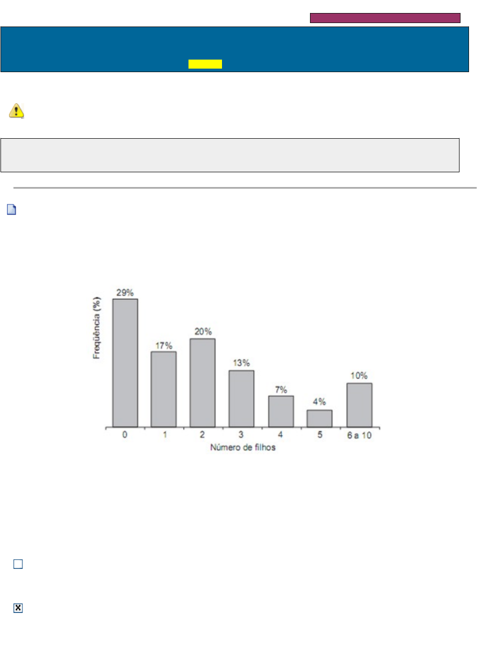 O gráfico a seguir mostra, em percentuais, a distribuição do número de mulheres de 15 anos ou mais de idade, segundo o número de filhos, no Brasil: