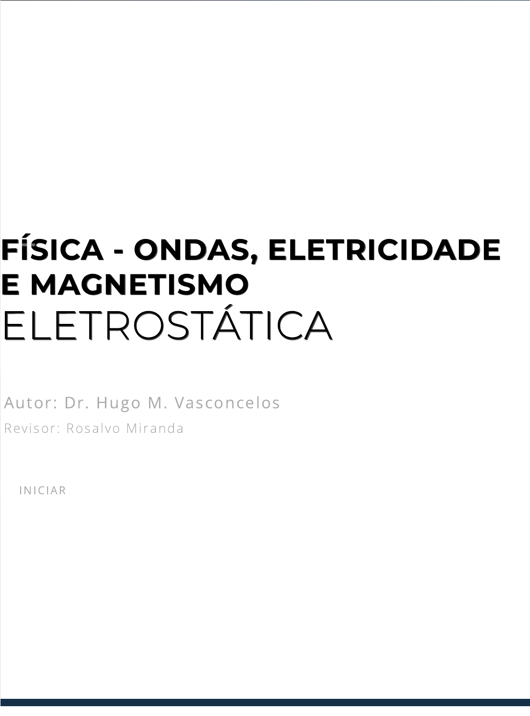 FÍSICA - ONDAS, ELETRICIDADEFÍSICA - ONDAS, ELETRICIDADE E MAGNETISMOE MAGNETISMO ELETROSTÁTICAELETROSTÁTICA Autor: Dr. Hugo M. Vasconcelos Revisor : Rosa lvo Miranda IN IC IAR introdução Introdução Atualmente podemos encontrar inúmeros aparelhos eletrônicos que funcionam de acordo com os princípios da física, principalmente usando os conceitos de eletromagnetismo, ou seja, uma combinação de fenômenos magnéticos e elétricos. Esses conceitos estão presentes em aparelhos como câmeras digitais, televisores, celulares, de forma a aderir em �lmes de plástico ou materiais de vidro. Logo, podemos explicar vários fenômenos ao nosso redor, como o �ash de uma câmera, mas também a formação de um relâmpago em dias chuvosos, a aurora boreal e até mesmo um arco-íris. A ciência do eletromagnetismo foi proposta por vários pensadores ao redor do mundo. Um dos principais foi Michael Faraday, que observou e descreveu fenômenos físicos. Um grande sinal do seu talento foi demonstrado quando descobrimos que seus cadernos e anotações possuíam não apenas uma equação, mas várias delas sistematizadas em um pensamento lógico e cientí�co usado até na atualidade. Já no século XIX, podemos analisar os pensamentos de James Clerck Maxwell, onde surgem as proposições de Faraday juntamente com a matemática, introduzindo ideias próprias com uma base teórica sólida para o estudo do eletromagnetismo. Vamos começar a discutir os conceitos da elétrica para então compreender o estudo das cargas e forças associadas. Os estudos a respeito da eletricidade remontam a sociedades antigas, como gregos, in�uenciadores para as ideias de Franklin e Coulomb. Já no século XIX, Oested demonstrou que fenômenos elétricos e magnéticos estavam interligados, ao observar que um objeto de metal poderia ser perturbado quando colocado próximo de um �o onde passa uma corrente elétrica. Considerando como sabida a presença de cargas elétricas diferentes (positivas e negativas), eletri�cação devido à indução, atração e repulsão, consideramos a unidade Coulomb (C) para de�nir uma carga elétrica, como proposto pelo Sistema Internacional. Além disso, iremos considerar que a carga é conservada e pelo princípio da quantização de carga, é possível a�rmar que cada carga tem um valor inteiro de , ou seja, logo, não existe um valor de carga menor que o proposto por e. Lei de Coulomb Força e CampoForça e Campo ElétricoElétrico e = 1, 602 × C10−19 A princípio, supomos duas cargas e distanciadas uma da outra por uma distância re isoladas uma da outra pelo vácuo, como disposto na Figura 2.1. Figura 2.1 - Duas cargas elétricas pontuais e positivas exercem força uma sobre a outra. Fonte: Serway e Jewett Jr. (2017, p. 7). Usando os princípios da lei de Coulomb, podemos a�rmar que a força elétrica existente entre duas cargas é diretamente proporcional ao produto entre elas e inversamente proporcional ao quadrado entre suas distâncias. Assim, a direção seguida pela força é a linha que passa nas duas cargas. Logo, quando as duas cargas estiverem com o mesmo sinal, como demonstrado na Figura 2.1, estaremos diante de uma força chamada de repulsiva, mas quando as cargas tiverem sinais opostos, a força será chamada de atrativa, como é possível veri�car na Figura 2.2. q1 q2 Figura 2.2 - Duas cargas elétricas pontuais, sendo uma positiva e outra negativa Fonte: Serway e Jewett Jr. (2017, p. 7). As forças elétricas obedecem à terceira lei de Newton, de forma que uma carga estará exercendo in�uência sobre a outra e são iguais apenas em módulo, mas opostas em sentido. Matematicamente a Lei de Coulomb pode ser expressa por, (1) onde é a força que a partícula i exerce sobre a partícula j, r é a distância entre as duas partículas e é o vetor unitário na direção da partícula 1 para 2. No Sistema Internacional, o valor da constante elétrica k é e o valor da permissividade elétrica no vácuo é . Quando temos mais de 2 cargas, a força elétrica entre os pares e cargas será expresso pela equação abaixo: (2) onde cada termo da expressão (2) é a força sobre a partícula de referência. = F ⃗ 12 ke q1q2 r2 r̂12 F ⃗ ij r̂12 8, 988 × N . /109 m2 C2 ε0 8, 854 × /N .10−12C2 m2 = + +. . . +F → 1 F21 −→ F31 −→ F → ij Campo Elétrico Agora vamos supor que temos, em uma região do espaço, uma carga (ou talvez uma distribuição de cargas) chamada de carga fonte. Essa carga irá perturbar todo o ambiente de modo que ao colocarmos uma outra partícula carregada, chamada de carga de prova, ela irá sentir a ação de uma força que não existiria se não houvesse a carga fonte. Logo, mesmo que não houvesse a carga de prova, é considerável observar que as propriedades desse espaço foram modi�cadas. Assim, só poderemos detectar essa alteração devido à carga de prova, mas o que queremos observar é que a perturbação não depende da existência da carga de prova. Para de�nirmos qual é essa propriedade, precisamos voltar à nossa carga de prova , como mostrado na Figura 2.3, e inferirmos que tipo de perturbação ela está sofrendo. Se existir um campo elétrico não nulo nessa região, essa carga sofrerá uma força de módulo, direção e sentido bem de�nidos. Em outra linguagem, queremos pontuar que essa perturbação apresenta um caráter vetorial, pois quando colocarmos uma grandeza escalar (carga elétrica) em qualquer ponto desse campo, atuará sobre ela uma grandeza chamada de vetorial, que nada mais é que a força elétrica. Figura 2.3 - Duas cargas elétricas pontuais, sendo uma positiva e outra negativa Fonte: Serway e Jewett Jr. (2017, p. 11). qo É preciso observar que se mudarmos o valor da carga de prova, a força também será alterada na mesma proporção, mas será mantida a mesma direção e sentido. Se trocarmos apenas o sinal dessa carga, a força também mudará apenas o sentido, de for