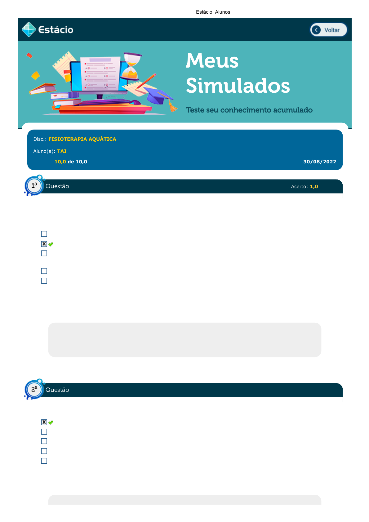 ( ) A imersão na água permite obter fortalecimento e condicionamento sem os efeitos