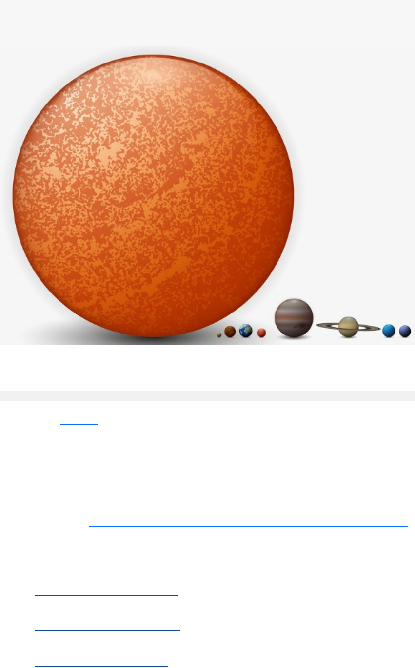 Sol Imprimir Texto: A+ A- PUBLICIDADE O Sol é a estrela mais próxima da Terra, dista aproximadamente 150 milhões de quilômetros de nós, e é responsável por manter todo o Sistema Solar em sua interação gravitacional: oito planetas e os demais corpos celestes que o compõem, como planetas anões, asteroides e cometas. Veja também: Sistemar Solar — origem, planetas, astros, curiosidades Tópicos deste artigo · 1 - Características do Sol · · 2 - Estrutura física do Sol · · 3 - Idade do Sol · · 4 - Cor do Sol · · 5 - Temperatura do Sol · · 6 - Radiação solar · · 7 - Vento solar · · 8 - Evolução do Sol · Características do Sol A composição do Sol é de 74% de hidrogênio e 24% de hélio, sendo o percentual restante formado principalmente por oxigênio, carbono e ferro. Toda a energia produzida pelo Sol é proveniente do processo de fusão nuclear decorrente das grandes temperaturas de seu núcleo (cerca de 15 milhões de kelvin) e de sua enorme pressão. Consequentemente, nossa estrela é capaz de converter átomos de hidrogênio em hélio, e os números são incríveis: a cada segundo, o Sol funde cerca de 600 milhões de toneladas de hidrogênio em hélio, convertendo parte dessa massa em energia, na forma de ondas eletromagnéticas, como os raios gama. Ao todo, o Sol consome cerca de 4 milhões de toneladas de sua massa por segundo, uma taxa mais do que suficiente para mantê-lo brilhando pelos próximos 6 ou 7 bilhões de anos, devido à sua grande massa, que é de aproximadamente 1,98.1031 kg, mais de 330 mil vezes a massa da Terra. Não pare agora... Tem mais depois da publicidade ;) Por conta de sua enorme massa, a gravidade na superfície do Sol chega a 274 m/s², 27,4 vezes maior que a massa da Terra. Isso faz com que a velocidade de escape por lá chegue aos 617 km/s, mais de 2 milhões de quilômetros por hora. O período de rotação do Sol em torno do seu próprio eixo é de 27 dias para o seu equador, que gira a 7189 km/h, e de 35 dias para os seus polos. Essa diferença de período rotacional produz uma rotação diferencial (chamada de dínamo solar), responsável por sua grande atividade magnética, uma vez que toda a matéria presente na estrela encontra-se ionizada (no estado plasmático), dando origem às tempestades solares, erupções coronárias e manchas solares. Na figura, temos uma concepção artística em escala real que compara o tamanho do Sol aos demais planetas do Sistema Solar. Estrutura física do Sol O Sol pode ser dividido em partes com diferentes propriedades físicas, a saber: · Núcleo: onde ocorrem as fusões nucleares, e o processo de nucleossíntese representa cerca de 25% da massa do Sol. · Zona radiativa: onde a radiação eletromagnética produzida pelo núcleo é refletida por muitas vezes, e essa leva milhares de anos para escapar de seu interior. · Zona convectiva: uma camada instável que transmite calor por meio da convecção, nessa região ocorrem erupções solares. · Fotosfera: a camada mais externa do Sol, é com base nela que toda a luz solar é irradiada. A fotosfera tem cerca de 100 km de espessura. · Cromosfera: uma camada de baixa densidade que marca a transição entre a atmosfera solar e a coroa solar. · Coroa: uma aura de plasma que permeia milhões de quilômetros ao redor do Sol, sua temperatura pode chegar a 1.000.000 ºC. Acredita-se que essa temperatura surja em razão do intenso campo magnético do Sol. Idade do Sol Estima-se que a idade do Sol seja de 4,6 bilhões de anos e que, daqui a cerca de 7 bilhões de anos, ele será uma gigante vermelha, com um raio equatorial 200 vezes maior que o atual (de 6,963.108 m, quase 109 vezes o raio da Terra) e até 5000 vezes mais brilhante, “engolindo” a órbita do nosso planeta. Ao atingir essa marca, o Sol será capaz de fundir átomos de carbono devido às altas temperaturas. Os estágios finais da evolução estelar do Sol indicam que essa estrela se tornará uma anã branca — uma classe de estrelas extremamente densas —, apresentando menos da metade de sua massa atual devido ao processo de fusão nuclear e à emissão de ventos solares, comprimida em um raio até 17 vezes menor, deixando em sua volta uma grande nuvem de poeira estelar. Cor do Sol O Sol é considerado uma estrela de sequência principal (que produz sua energia por meio da fusão do hidrogênio), de categoria anã amarela. Apesar do nome, não é uma estrela pequena ou de cor amarelada, é na verdade maior e mais brilhante que boa parte das estrelas visíveis a olho nu, apesar de estar muito longe de ser uma das maiores, ou mais luminosas. O adjetivo amarela, por sua vez, está relacionado à temperatura de sua superfície (cerca de 6000 ºC) e a sua luminosidade: trata-se de uma estrela muito mais fria e menos luminosa que as chamadas de brancas e azuis. Além disso, o Sol é capaz de produzir todos os comprimentos de onda da luz visível, de forma que, ao ser observado de fora da Terra, sua cor é branca. O tom amarelo que observamos ao olhar para esse astro surge devido à dispersão dos raios solares ao adentrarem a atmosfera, observe a foto a seguir, tirada a 22 km de altura. Temperatura do Sol A temperatura do Sol é bastante variada e pode ser bastante complexa de compreender, devido à grande quantidade de conceitos envolvidos para a sua explicação. O núcleo solar pode chegar a 15 milhões de kelvin, é nessa região onde se formam os átomos de hélio por meio da fusão nuclear. A região imediatamente próxima do núcleo, conhecida como zona radiativa, pode apresentar temperaturas que variam entre 2 e 7 milhões de kelvin. Às margens da zona radiativa, encontra-se a zona convectiva, onde se formam grandes correntes de plasma que são capazes de transmitir energia ao exterior do Sol por meio da convecção. A zona convectiva tem uma temperatura média de 2 milhões de kelvin. A superfície do Sol, por sua vez, chamada de fotosfera, apresenta uma temperat