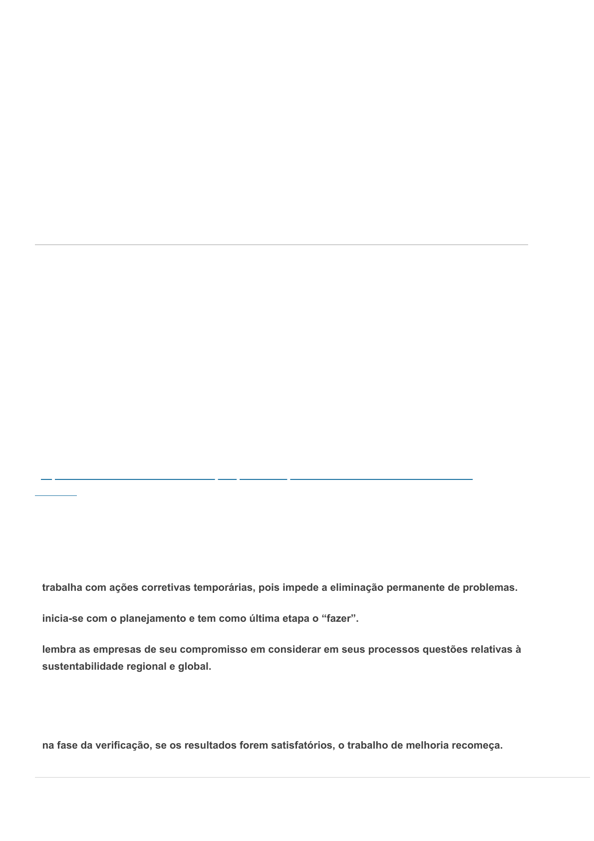 16/08/2022 18:10 Comentários https://sereduc.blackboard.com/ultra/courses/_113339_1/outline/assessment/_5853514_1/overview/attempt/_20272431_1/review/inline-feedback… 1/8 Conteúdo do exercício Ocultar opções de resposta Pergunta 1 1 / 1 Leia o texto a seguir: “Uma das razões para a gritante falta de competitividade do Brasil é a falta de método ao realizar o seu trabalho [...]. Mas como mudar essa realidade? É necessário aprender a se fazer as coisas direito. E, até para aprender, é necessário um método. E com isso vem o famoso ciclo PDCA que muita gente utiliza.” Fonte: TERRA. Por que o ciclo PDCA vem mudando a cara da indústria brasileira. Disponível em: <https://www.terra.com.br/noticias/dino/por-que-o-ciclo-pdca-vem-mudando-a-cara-da-industria- brasileira,57d6254ccebb0ab7c17047deb070aad4s1ysndbp.html>. Acesso em 4 out. 2020. Considerando essas informações e o conteúdo estudado sobre indicadores, certificações, tecnologias e instrumentos de gestão relacionados à responsabilidade socioambiental, pode-se afirmar que o ciclo PDCA: trabalha com ações corretivas temporárias, pois impede a eliminação permanente de problemas. inicia-se com o planejamento e tem como última etapa o “fazer”. lembra as empresas de seu compromisso em considerar em seus processos questões relativas à sustentabilidade regional e global. Resposta correta é fonte de orientação estratégica na busca a melhoria contínua dos processos das organizações. na fase da verificação, se os resultados forem satisfatórios, o trabalho de melhoria recomeça. 10/10 Nota final Enviado em: 16/08/22 18:09 (BRT) https://www.terra.com.br/noticias/dino/por-que-o-ciclo-pdca-vem-mudando-a-cara-da-industria-brasileira 16/08/2022 18:10 Comentários https://sereduc.blackboard.com/ultra/courses/_113339_1/outline/assessment/_5853514_1/overview/attempt/_20272431_1/review/inline-feedback… 2/8 Ocultar opções de resposta Pergunta 2 1 / 1 As empresas não são ambientes isolados, pois não trabalham somente diante do posicionamento de acionistas e empregados. Ao contrário, elas dependem de agentes externos, como fornecedores, parceiros comerciais, autoridades públicas e clientes. Além disso, devem respeitar os direitos humanos e o meio ambiente. Considerando essas informações e o conteúdo estudado sobre responsabilidade socioambiental e as ações de gestão interna e externa, analise as asserções a seguir e a relação proposta entre elas. I. As empresas devem fornecer produtos e serviços aos seus clientes de forma ética, eficiente e ecologicamente correta. Porque: II. Diante da constante discussão sobre questões de responsabilidade socioambiental, os clientes estão engajados sobre os produtos que consomem. A seguir, assinale a alternativa correta: As asserções I e II são proposições falsas. As asserções I e II são proposições verdadeiras, mas a II não é uma justificativa correta da I. A asserção I é uma proposição falsa, e a II é uma proposição verdadeira. Resposta corretaAs asserções I e II são proposições verdadeiras, e a II é uma justificativa correta do I. A asserção I é uma proposição verdadeira, e a II é uma proposição falsa. Pergunta 3 1 / 1 Leia o trecho a seguir: “O grupo que compreende Avon, Natura, The Body Shop e Aesop, lançou seu Compromisso com a Vida em junho e declarou que reduzirá suas emissões líquidas de carbono a zero em seus quatro negócios até 2030. A empresa também se comprometeu a alcançar a paridade de gênero até 2023.” Fonte: BRASIL BEAUTY NEWS. Natura & Co faz novas parcerias com Pacto Global das Nações Unidas. Disponível em: <https://www.brazilbeautynews.com/natura-co-faz-novas-parcerias-com-pacto-global,3799>. Acesso em: 04 out. de 2020. Considerando essas informações e o conteúdo estudado sobre Responsabilidade socioambiental como estratégia de gestão, analise as afirmativas a seguir: I. Por muitos anos, o setor empresarial esteve distante das questões ambientais, por crer que práticas de responsabilidade socioambiental não trariam lucro. https://www.brazilbeautynews.com/natura-co-faz-novas-parcerias-com-pacto-global 16/08/2022 18:10 Comentários https://sereduc.blackboard.com/ultra/courses/_113339_1/outline/assessment/_5853514_1/overview/attempt/_20272431_1/review/inline-feedback… 3/8 Ocultar opções de resposta Ocultar opções de resposta II. A implementação de políticas sociais e ambientais são apoiadas pela população e tem estimulado as empresas a aderirem às práticas socioambientais. III. Apesar da adoção de um perfil ambientalmente correto, muitas empresas têm percebido que esta tendência de mercado trará dificuldades de reestruturação. IV. Ser uma empresa responsável socioambientalmente pode resultar na valorização da marca, na maior fidelização de clientes e na melhora do desempenho dos funcionários. Está correto apenas o que se afirma em: III e IV. I e II. Resposta corretaI, II e IV. II e IV. I, II e III. Pergunta 4 1 / 1 Leia o trecho a seguir: “A primeira (questão) é como as novas tecnologias, a inteligência artificial e o machine learning estão impactando o mundo do trabalho. A segunda (questão) é como se manter relevante neste cenário em que as máquinas inteligentes farão boa parte do trabalho. Haverá uma explosão da produtividade e o aumento do desemprego por conta de que muita gente não terá habilidade para trabalhar em harmonia com os robôs e as novas tecnologias.” Fonte: SAMBRANA, C. O homem, as máquinas e o trabalho. Disponível em: <https://neofeed.com.br/blog/home/o- homem-as-maquinas-e-o-trabalho/>. Acesso em: 02 out. de 2020. Considerando essas informações e o conteúdo estudado sobre responsabilidade socioambiental como estratégia de gestão, analise as asserções a seguir e a relação proposta entre elas. I. A reestruturação empresarial, focada no avanço tecnológico, deve informar e consultar as partes interessadas e b