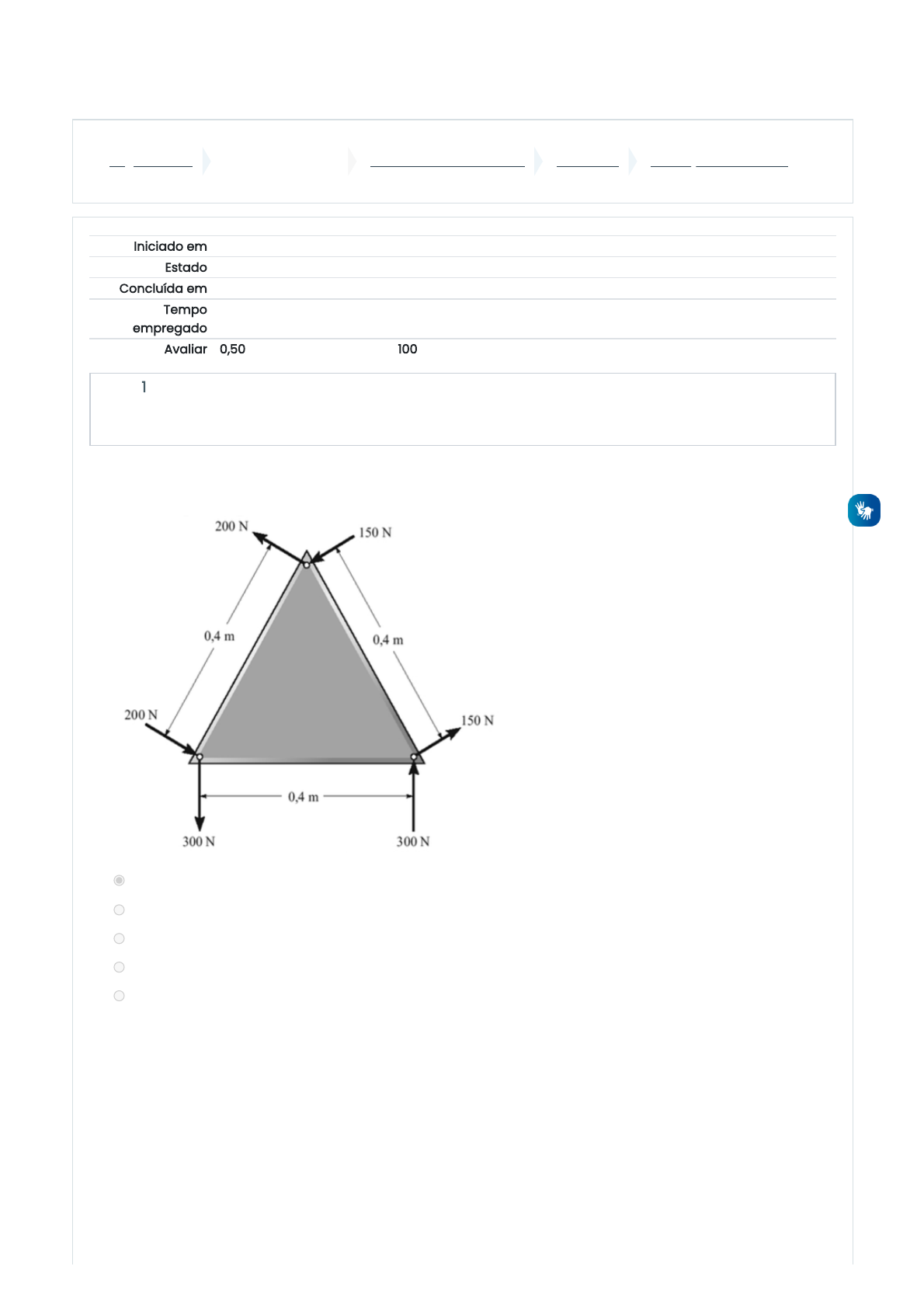 Página inicial Minhas disciplinas 2022/2 - Mecânica Geral UNIDADE II Avaliação - Unidade II