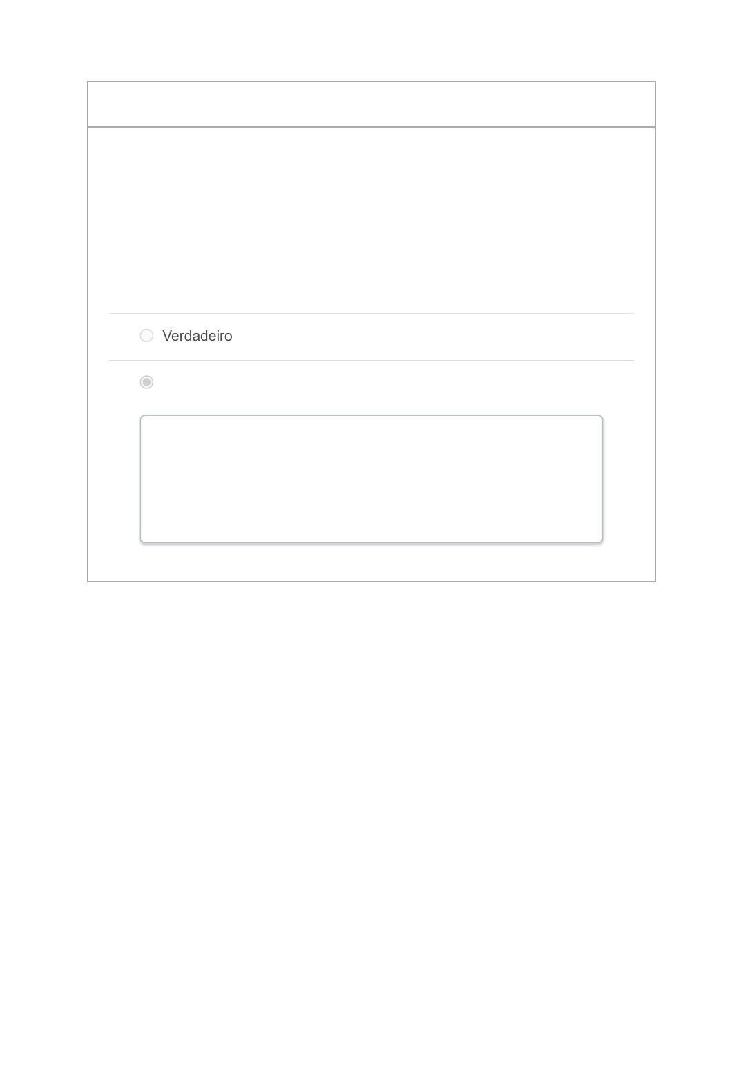 Pontuação desta tentativa: 1 de 1 Enviado 29 ago em 20:20 Esta tentativa levou Menos de 1 minuto. 1 / 1 ptsPergunta 1 Se treinarmos um classificador Naïve Bayes usando infinitos dados de treinamento que satisfazem todas as suas suposições de modelagem, tal como a independência condicional, então ele irá atingir erro zero, na base de treinamento. Verdadeiro Falso Existem dois motivos que fazem com que a afirmativa seja falsa. Primeiramente, o algoritmo de Naïve Bayes é probabilístico e pode não ser possível prever o resultado final a partir das probabilidades individuais. O que se pode afirmar é que ele terá uma alta probabilidade de acerto. Além disso, a função de cálculo do Naïve Bayes é linear, de forma que problemas não lineares não podem ser resolvidos com 100% de acurácia. Pontuação do teste: 1 de 1