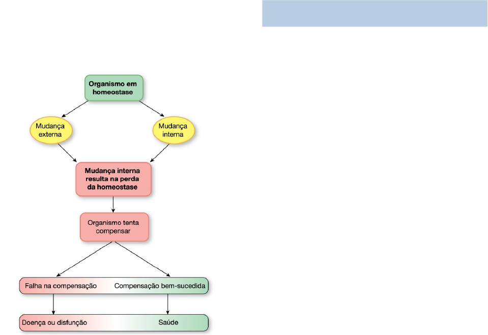 Fisiologia Humana Homeostase Definida como a capacidade do organismo em manter o seu ambiente interno em condição estável, tanto em ritmo, como em composição química. Garante um estado de independência relativa do organismo em relação às oscilações do ambiente externo. Manutenção de um estado de equilíbrio do meio interno do corpo que envolve as células (liquido intersticial), fluidos que circulam pelas nossas células. Essencial para sobrevivência do corpo. Um organismo em homeostase pode sofrer uma mudança externa, por exemplo, através do aumento da temperatura em um dia quente ou uma disfunção interna através da prática de atividade física, fazendo com que sua temperatura corpórea aumente, resultando na perda da homeostase. Com isso, há o desencadeamento de respostas de compensação, por exemplo, produção de suor. Se esse mecanismo compensatório falhar, o resultado será uma enfermidade/doença, nesse caso, hipertermia. Se o mecanismo compensatório tiver sucesso, o indivíduo permanece saudável, mantendo a homeostase, pois o suor reestabeleceu a temperatura corpórea. Além disso... A sobrevivência de organismos vivos requer um meio interno homeostático; O corpo humano precisa de homeostase para manter a estabilidade e sobreviver; Mais do que sobreviver, deve ter a capacidade de se adaptar ao seu ambiente externo e interno; Sistemas ecológicos, biológicos e sociais são homeostáticos e mantêm o equilíbrio contrariando qualquer mudança, e caso não sejam bem sucedidos em repor o equilíbrio, isso pode resultar na interrupção do funcionamento do sistema. Exemplo de mudança externa: variação de temperatura do ambiente externo; realização de uma refeição rica em carboidratos. Exemplo de mudança interna: aumento da pressão arterial; aumento do dióxido de carbono no sangue. Condições do meio interno: temperatura, concentração de O2 e nutrientes. Mecanismo de homeostase Cada célula, órgão ou sistema tenta manter o seu meio interno dentro dos limites fisiológicos normais, permitindo que as funções sejam realizadas com máxima eficiência. O mecanismo de homeostase do corpo está sob o controle do Sistema Nervoso e das Glândulas endócrinas. O sistema nervoso capta qualquer informação de desequilíbrio vinda do organismo. Ele processa essa informação no intuito de encontrar uma solução para o organismo voltar ao equilíbrio e, geralmente, essa resposta envolve a liberação de hormônios e outros agentes produzidos pelo sistema endócrino. Fatores que afetam a homeostase · Temperatura · Salinidade · pH · Concentrações de nutrientes: glicose · Concentração de gases: O2 · Concentração de resíduos: CO2 e ureia Processo de homeostase Como já dito, a homeostase garante o bom funcionamento do organismo e é fundamental para todas as funções metabólicas, necessitando que todos os órgãos e sistemas operem em sintonia. Os sistemas, quando em homeostase, apresentam as seguintes propriedades: São extremamente estáveis; Todos os seus componentes estão organizados de forma interna, estrutural e funcional, a fim de contribuir para a manutenção do equilíbrio; Não seguem uma resposta necessariamente lógica, o resultado de um determinado estímulo pode ser oposto ao esperado normalmente. Exemplos de homeostase Regulação da quantidade de agua e minerais no corpo, conhecida como osmorregulação. Tem lugar principalmente nos rins; Remoção de resíduos metabólicos, conhecida como excreção. Tem lugar em órgãos excretórios como os rins (ureia) e os pulmões (CO²) Regulação da temperatura corporal, termorregulação. Realizada principalmente pela pele e pela circulação sanguínea. Regulação dos níveis de glicose no sangue, realizada principalmente pelo fígado e pela insulina secretada no pâncreas. Quando ocorre a mudança de uma variável, o sistema pode reagir segundo dois tipos de feedback. Feedback Negativo É a reação pela qual o sistema responde de modo a reverter a direção da mudança. Com intuito de manter estáveis as variáveis a fim de manter a homeostase. Por exemplo, quando a concentração corporal de dióxido de carbono aumenta, os pulmões são estimulados a aumentar a sua atividade, aumenta a ventilação pulmonar para poder expelir mais dióxido de carbono. A termorregulação é outro exemplo. Quando a temperatura corporal sobe ou desce, os receptores na pele e no hipotálamo sentem a alteração, desencadeia uma ordem no cérebro que dá inicio a uma reação no sentido de gerar ou liberar calor, conforme seja o caso. No feedback negativo, o órgão X estimula o órgão Y, cuja função inibe ou paralisa a atividade do órgão X. Em outras palavras, o estimulo bloqueia o seu próprio estimulador. Feedback Positivo A resposta amplifica a mudança da variável. Tem um efeito desestabilizador, pelo que não contribui para a homeostase. É menos comum do que o feedback negativo. Por exemplo, nos nervos, um potencial elétrico limite desencadeia a geração de um potencial de ação muito mais elevado. Outro exemplo é a coagulação do sangue e vários eventos na gestação, tipo o trabalho de parto. No feedback positivo, o órgão X estimula o órgão Y que volta a estimular o órgão X intensificando sua ação. Um dos mecanismos destes, isoladamente, levaria a exaustão ou esgotamento energético do sistema. Por isso, o feedback positivo está sempre acoplado ao feedback negativo.