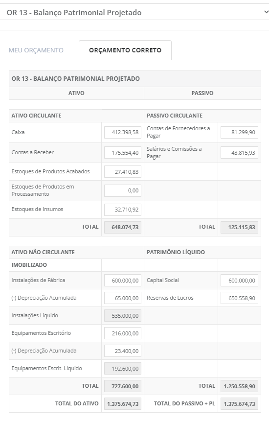 aixa R$ 50.000,00 Contas de Fornecedores a Pagar R$ 49.326,00 Contas a Receber R$ 130.800,00 Salários e Comissões a Pagar R$ 38.250,54 Estoques de Pro