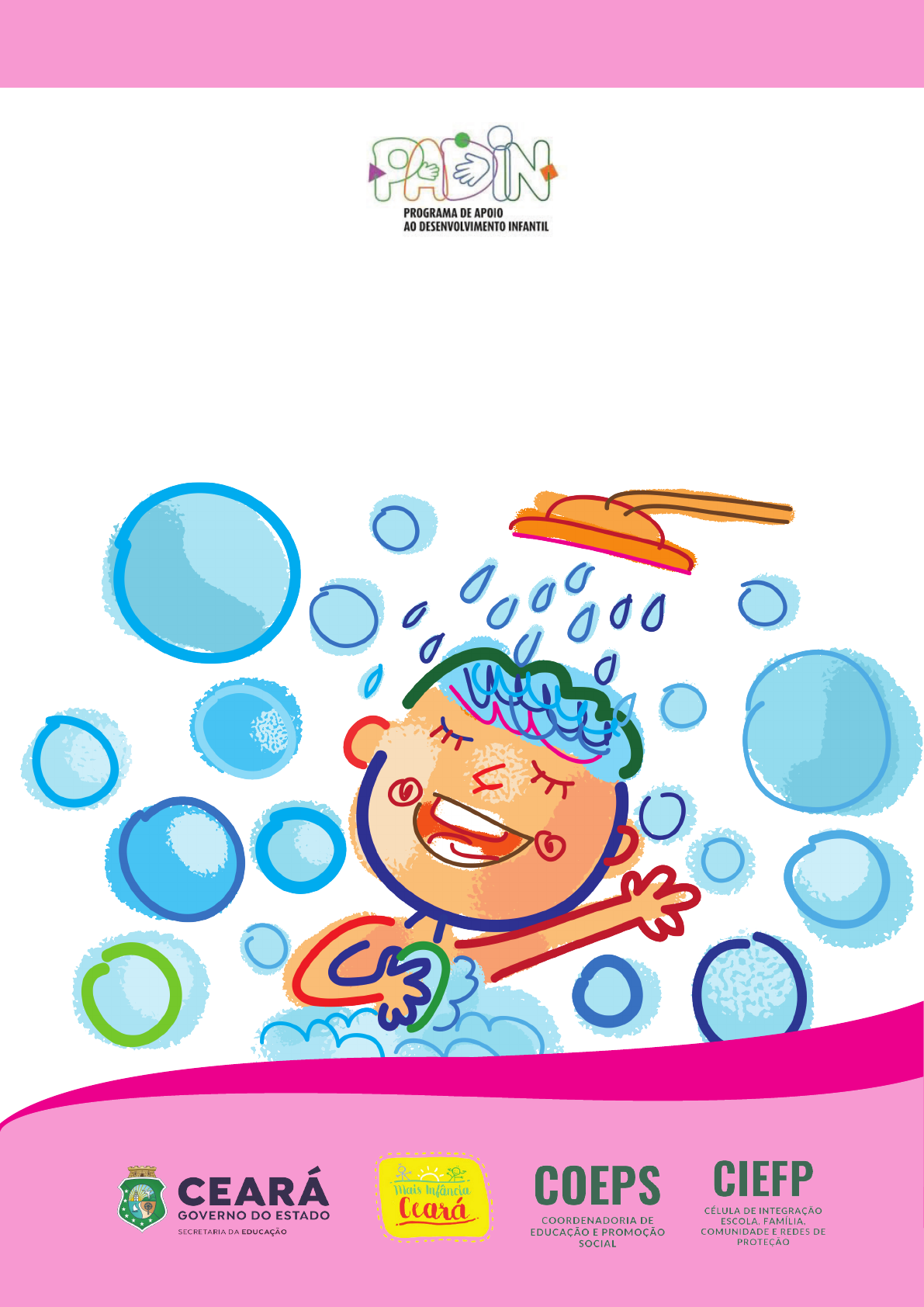 SAÚDE DA CRIANÇA E HÁBITOS DE HIGIENE CARTILHA 06 #construindojuntos ● OUTUBRO /2021 ● PADIN Governador Camilo Sobreira de Santana Vice-Governadora Maria Izolda Cela de Arruda Coelho Primeira-Dama do Estado Onélia Maria Leite de Santana Secretária da Educação Eliana Nunes Estrela Secretário Executivo de Cooperação com os Municípios Márcio Pereira de Brito Coordenadora de Educação e Promoção Social Francisca Aparecida Prado Pinto Articuladora da Coordenadoria de Educação e Promoção Social Antonia Araújo de Sousa Assessora Técnica Coordenadoria de Educação e Promoção Social Sandra Maria Silva Leite Orientador da Célula de Integração Família, Escola, Comunidades e Rede de Proteção Daniel Marinho Almeida GT/PADIN Régis Brito Ribeiro - Gerente Ana Paula Pinto de Oliveira Bárbara Cruz Débora Oliveira Cavalcante Ribeiro José Felício da Silva Elvira Carvalho Mota Maria Ana do Amarante Azevedo OBRA COLETIVA Ana Kelly Araújo Freire Antônia Ribeiro Lima Denise Pedroso de Moraes Fabiana Gomes do Nascimento Santos Francisco Renato Gomes Cardozo Geiciany de Medeiros Carvalho Sales Iana Lívia Silva Araújo Ismaela Oliveira de Araújo Jeneffer Marinho Luziana Soares Marques Maruska Ramos de Araújo Rosângela Matos Santos Feitoza Maria Edmaura Gomes do Nascimento Aguiar Ocilandia Soares Olga Maria Pinto Manhaes Valdenise Ismério Ferreba Design Gráfico Daniel Dias Sumário APRESENTAçãO ................................................................................... 4 SAúDE EMOCIONAL ........................................................................... 5 1. A SAÚDE DA CRIANÇA ............................................................... 6 AMAMENTAçãO ........................................................................... 7 ALIMENTAçãO SAUDÁVEL ......................................................... 10 A IMPORTÂNCIA DE TER UMA ALIMENTAçãO SAUDÁVEL .............................................. 11 O QUE NãO PODEMOS ACRESCENTAR EM NOSSA ALIMENTAçãO? ..................................................... 12 PUERICULTURA E VACINAçãO ................................................. 13 ROTINA E A HORA DO SONO ..................................................... 15 SAúDE EMOCIONAL ..................................................................... 17 2. HÁBITOS DE HIGIENE .................................................................. 20 HIGIENE BUCAL ............................................................................ 23 HORA DO BANHO ......................................................................... 26 A PANDEMIA E OS CUIDADOS COM O BEBÊ ........................ 27 3. CONSIDERAÇÕES FINAIS ........................................................... 29 REFERÊNCIAS ....................................................................................... 35 4 I Saúde da Criança e Hábitos de Higiene ApreSentAção Prezadas/os Supervisoras/es e ADIs, É com imensa satisfação que apresentamos a vocês a 6ª Cartilha PADIN 2021, elaborada por vários colaboradores das CREDEs 06 e 19, dentro do Projeto #construindojuntos para levar o melhor conteúdo possível a cada município que implementa o Programa. Esta cartilha traz como temática A SAÚDE DA CRIANÇA E HÁBITOS DE HIGIENE e visa proporcionar a vocês conhecimentos e reflexões necessários para tratar dos temas aqui abordados com as famílias PADIN. Como o PADIN pode contribuir para a promoção da saúde das famílias e das crianças? Nas próximas páginas, vocês poderão conferir alguns tópicos referentes aos dois grandes blocos temáticos desta cartilha. Ao falarmos em SAÚDE DA CRIANÇA, abordamos desde a amamentação, que é fundamental para a saúde do bebê nos primeiros anos de vida, a necessidade de uma alimentação saudável, o acompanhamento à saúde do bebê e da criança, por meio das consultas de puericultura e a prevenção a doenças por meio da vacinação; além, é claro, dos cuidados com a saúde emocional das nossas crianças, especialmente em um pe- ríodo tão complexo, como este da pandemia. Tratamos, também, dos HÁBITOS DE HIGIENE, abordando de maneira geral, os principais hábitos, porém, demos uma ênfase maior na saúde bucal, higiene do corpo, “A hora do Banho”; e os cuidados durante a pandemia. Ressaltamos, enfim, que trabalhamos com pessoas carentes, extrema- mente vulneráveis, por vezes, sem acesso às informações. Dessa forma é que o PADIN contribui, por meio do nosso trabalho educacional e ações interse- toriais que vêm se desenvolvendo ao longo do tempo com as famílias; nós, Supervisores e Agentes de Desenvolvimento Infantil (ADI) somos os agentes mensageiros dessa transformação. Aproveitem a leitura e bom trabalho! CARTILHA 06 #construindojuntos ● OUTUBRO/2021 ● PADIN I 5 SAúde emocionAl As interações familiares, refletem no desenvolvimento infantil, desde a forma que a mamãe se comunica, até o modo que o papai agiu, essas relaçõese maneiras, refletem com certeza, na saúde emocional infantil. Saúde emocional, é uma questão importante, e quando se trata da infantil, torna-se ainda mais relevante, já que a infância é o período, considerado decisivo, para construção do serzinho atuante. As crianças têm sua saúde emocional, associada ao bem-estar dos pais, se estes estiverem bem, a criança estará muito mais, mas se esses viverem em conflito, com clareza eu te digo: a criança perderá a paz! Diante disso torna-se importante, saber lidar com a situação, procurar para a criança um apoio psicológico, ou algum tipo de orientação, porque os pais são os espelhos pros filhos, e tudo o que é refletido, é levado da mente e pro coração. Se a criança vive em uma família, quer seja de pais separados ou não, e existe brigas contínuas, falta de suporte e de atenção, sinto-lhes dizer, mas a criança irá crescer com descontrole de emoção. Por isso precisamos refletir,