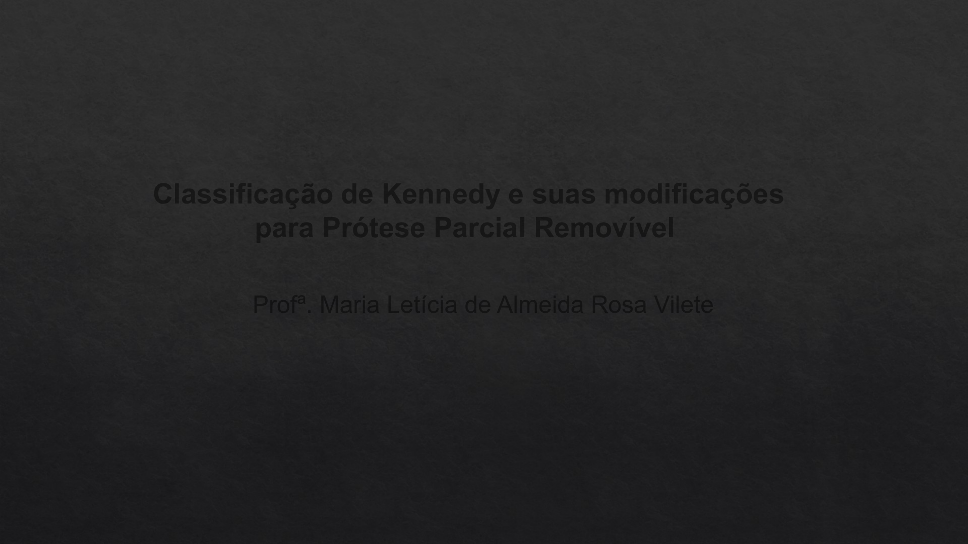 Classificação de Kennedy e suas modificações para Prótese Parcial Removível Profª. Maria Letícia de Almeida Rosa Vilete 1 Preparo – leitura prévia VERGANI, Carlos E.; PAVARINA, Ana C.; JORGE, Janaina H.; et al. Reabilitação oral com prótese parcial removível convencional: guia prático. Barueri. SP: Editora Manole, 2021. Capítulo 1. Artigo de estudo epidemiológico 2 CASO CLÍNICO 3 20 minutos de resolução individual. 20 minutos de resolução em grupo. Entregar a resolução para a professora. Discussão do caso clínico. CASO CLÍNICO Analisar o seguinte caso clínico dentro do que foi lido sobre a Classificação de Kennedy e suas modificações para a confecção da PPR do caso a seguir: Paciente, M.A.V.S, sexo feminino, 40 anos de idade, procurou a clínica de graduação da Disciplina de Estágio Supervisionado do Centro Universitário Fametro com queixa principal de insatisfação com a estética de seus dentes (Figuras 1 e 2). Na ocasião, a paciente não fazia uso de nenhuma reabilitação oral para seus elementos ausentes. Durante a anamnese, a paciente relatou que perdeu alguns elementos dentários em decorrência da doença cárie. Fonte: SOUZA, H. K. V. et al., Reabilitação estética e funcional com prótese parcial removível: relato de caso. Brazilian Journal of Development. Curitiba, . 7, n. 12, p. 111522-111534. 2021. 4 CASO CLÍNICO No que se refere ao histórico odontológico, a mesma afirmou já ter realizado profilaxias, restaurações e exodontias, sem quaisquer intercorrências. Negou a presença de doenças de caráter hereditário ou sistêmico. O exame clínico inicial revelou que a condição de saúde bucal apresentava-se satisfatória, ausência dos elementos 14, 26 e 35 e necessidade de tratamento restaurador dos elementos: 16, 15, 23, 24, 35, 36, 33 e 46, acometidos por abfrações, no elemento 22 que estava com uma fratura na incisal (Classe IV) e 46 que apresentava cárie (Classe II de Black), além de desgaste incisal nos elementos superiores e inferiores anteriores. A radiografia panorâmica então foi solicitada Fonte: SOUZA, H. K. V. et al., Reabilitação estética e funcional com prótese parcial removível: relato de caso. Brazilian Journal of Development. Curitiba, . 7, n. 12, p. 111522-111534. 2021. 5 CASO CLÍNICO Figura 1: Aspecto inicial do perfil direito da paciente. Fonte: SOUZA, et al., 2021. Figura 2: Aspecto inicial do perfil esquerdo da paciente. Fonte: SOUZA, et al., 2021. 6 DISCUSSÃO DO CASO CLÍNICO Figura 3: Moldagem de estudo da arcada inferior. Fonte: SOUZA, et al., 2021. Figura 4: Moldagem de estudo da arcada superior. Fonte: SOUZA, et al., 2021. 7 DISCUSSÃO DO CASO CLÍNICO Figura 5: Modelo de estudo da arcada superior. Fonte: SOUZA, et al., 2021. 8 DISCUSSÃO DO CASO CLÍNICO Classe I – área desdentada bilateral posterior, tipo extremidade livre Classificação de Kennedy 9 DISCUSSÃO DO CASO CLÍNICO Classe II – área desdentada unilateral posterior, tipo extremidade livre Classificação de Kennedy 10 DISCUSSÃO DO CASO CLÍNICO Classe III – área desdentada posterior, com presença de dentes pilares anterior e posteriormente ao espaço protético Classificação de Kennedy 11 DISCUSSÃO DO CASO CLÍNICO Classe IV – área desdentada anterior em espaço intercalado, cruzando a linha média Classificação de Kennedy 12 DISCUSSÃO DO CASO CLÍNICO Regras de Applegate para as classificações de Kennedy 1. A classificação deve ser realizada após exodontias que alterem a classificação original do arco. 2. O terceiro molar ausente não deve ser considerado na classificação. 3. O terceiro molar só deverá ser considerado na classificação se planejado como suporte para a PPR. 4. Quando o segundo molar estiver presente, mas não for considerado no planejamento, ele também não deve ser considerado na classificação. 5. Os espaços desdentados mais posteriores regem a classificação. 13 DISCUSSÃO DO CASO CLÍNICO Regras de Applegate para as classificações de Kennedy 6. Os espaços protéticos, além daquele que determina a classificação, são considerados áreas de modificações e devem ser descritos em algarismos arábicos (p.ex.: modificação 1, 2, 3 etc.). 7. As modificações independem de sua extensão e são caracterizadas pelo número de espaços protéticos no arco além daquele que determinou a classificação. 8. A Classe IV não aceita modificações. Em caso de arco com presença de espaço protético anterior e outra área desdentada posterior ao espaço, a área desdentada mais posterior é a que determina a classificação. 14 DISCUSSÃO DO CASO CLÍNICO Qual a classificação de Kennedy e sua modificação para a arcada superior da paciente? Figura 5: Modelo de estudo da arcada superior. Fonte: SOUZA, et al., 2021. 15 Referências Bibliográficas VERGANI, C. E.; PAVARINA, A. C.; JORGE, J. H.; et al. Reabilitação oral com prótese parcial removível convencional: guia prático. Barueri, SP: Editora Manole, 2021. SOUZA, H. K. V.; et al. Reabilitação estética e funcional com prótese parcial removível: relato de caso. Brazilian Journal of Development, Curitiba, v.7, n.12, p. 111522-111534 dec. 2021. OLIVEIRA, A. L.; et al. Estudo epidemiológico de arcadas parcialmente edêntulas de pacientes atendidos em uma clínica-escola. Rev Ciên Saúde. 2022;7(2):18-23. <revistaeletronicafunvic.org> 16
