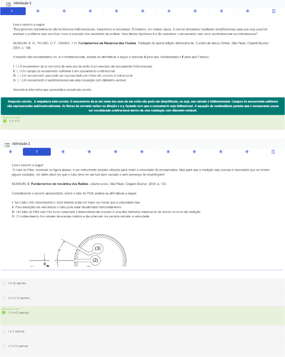Resp 10 questões Fenômenos de Transporte Atv 2 Eng Mec Anhembi Morumbi