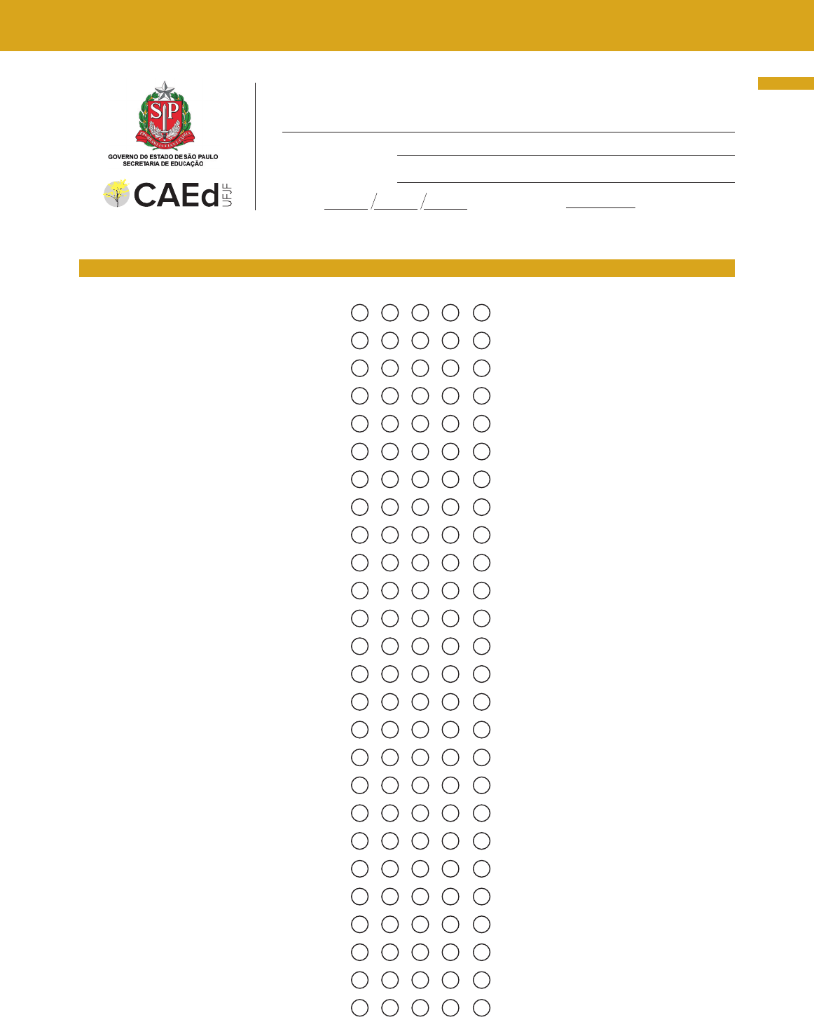 Data Nome do Aluno C A D E R N O M1101 Turma Nome da Escola UTILIZE O LEITOR RESPOSTA ABAIXO DESSA LINHA ENQUADRANDO A CÂMERA APENAS NAS BOLINHAS A B C D E 01 02 03 04 05 06 07 08 09 10 11 12 13 14 15 16 17 18 19 20 21 22 23 24 25 26 MATEMÁTICA 2ª série do Ensino Médio AVALIAÇÃO DA APRENDIZAGEM EM PROCESSO 3º Bimestre BL01M11 01) (M110528H6) Carlos é piloto profissional de corridas e irá disputar uma prova automobilística nesse fim de semana. Quando seu carro apresenta falhas mecânicas e chove ao mesmo tempo, Carlos não consegue completar as corridas das quais participa. O engenheiro da equipe de Carlos informou que a probabilidade de seu carro apresentar falhas mecânicas durante essa prova é de 5%, e que a previsão de chuva para o dia em que essa prova ocorrerá é de 40%. Qual é a probabilidade de Carlos completar essa prova nesse fim de semana? A) 55%. B) 57%. C) 60%. D) 95%. E) 98%. 02) (M110572H6) Uma loja de roupas organizou uma promoção, na qual os clientes poderão retirar um cartão de uma urna para ganhar um prêmio após efetuarem suas compras em um determinado dia. Nessa urna, foram colocados 6 cartões de mesmo formato e tamanho, numerados de 1 a 6, que serão devolvidos à urna após cada retirada. Desses cartões, apenas o que contém o número 2 indica uma bolsa como prêmio e os demais indicam peças de roupas. Um grupo de 7 amigas vai fazer compras nessa loja nesse dia e vai participar dessa promoção, sendo que, 5 delas querem ganhar a bolsa. Qual é a probabilidade de exatamente 5 dessas 7 amigas ganharem a bolsa nesse sorteio? A) 7 5 6 1 5$c `m j B) 6 1 6 55 2$` `j j C) 7 5 6 1 6 55 2$ $c ` `m j j D) 7 5 6 1 6 52 5$ $c ` `m j j E) 5 6 1 2 6 5$ $ $^ ` ^ `h j h j 03) (M1118Q9SP) Pedro está colecionando figurinhas da Copa de Futebol de 2018. Ele tem 5 figurinhas repetidas de jogadores da França, 4 de jogadores da Dinamarca e 3 de jogadores do Brasil. Ele quer montar um pacote de figurinhas contendo 2 jogadores de cada um destes três times, de quantas maneiras ele pode fazê-lo? A) 720 B) 180 C) 120 D) 90 E) 60 M1101 1 BL01M11 04) (M120652I7) Em comemoração ao Dia do Estudante, uma professora distribuirá, aleatoriamente, um bombom para cada um de seus alunos. Ao todo, ela levou 40 bombons para serem distribuídos, sendo 5 de chocolate ao leite com recheio de morango, 8 de chocolate branco com recheio de brigadeiro, 12 de chocolate branco com recheio de morango e 15 de chocolate ao leite com recheio de brigadeiro. Qual é a probabilidade do primeiro bombom distribuído ser um bombom com recheio de morango? A) 17 1 . B) 40 6 . C) 40 17 . D) 40 23 . E) 23 17 . 05) (M110573H6) Observe o Triângulo de Pascal apresentado abaixo. 1 1 1 1 2 1 1 3 3 1 1 4 6 4 1 Por meio desse triângulo, é possível obter os coeficientes do desenvolvimento de (x + 3)4. Qual é o termo central desse desenvolvimento? A) x4. B) 6x2. C) 9x3. D) 54x2. E) 90x2. M1101 2 BL02M11 06) (M1119Q10SP) Um treinador de basquete deseja escolher 05 atletas para compor um time profissional, essa escolha deverá ser feita dentre os 10 integrantes da equipe do seu clube. De quantas maneiras diferentes o treinador poderá organizar seu time? A) 2 B) 50 C) 252 D) 30240 E) 100000 07) (M120351I7) Uma professora dividiu sua turma em 12 grupos para a apresentação de um trabalho. Esses grupos receberam números de identificação de 1 a 12 para a realização de um sorteio que determinará a ordem das apresentações. Para esse sorteio, a professora colocou em uma urna 12 bolinhas numeradas também de 1 a 12, que serão retiradas aleatoriamente, determinando a ordem de apresentação dos grupos do primeiro ao último. Jurema é uma aluna dessa turma e deseja que seu grupo seja o primeiro a se apresentar. Qual é a probabilidade do grupo de Jurema ser o primeiro a se apresentar? A) 12 1 . B) 11 1 . C) 12 11 . D) 12 12 . E) 1 12 . 08) (M110574H6) Observe o binômio apresentado no quadro abaixo. (x + 2)10 Qual é o 7º termo do desenvolvimento desse binômio? A) 256x4. B) 960x7. C) 3 360x4. D) 13 440x4. E) 15 360x3. 09) (M110141I7) Em um sistema de segurança de um caixa eletrônico, é gerada, automaticamente, uma senha única de primeiro acesso para cada cliente. Essa senha é composta por 3 letras maiúsculas distintas, dentre as 26 letras do alfabeto. Qual é a quantidade máxima de senhas diferentes que podem ser geradas nesse sistema de segurança? A) 17 576. B) 15 600. C) 2 600. D) 78. E) 75. M1101 3 BL02M11 10) (M110571H6) A fim de fazer um sorteio de brindes para seus 7 alunos, uma professora colocou em uma urna três fichas iguais, exceto pela cor, sendo uma azul e duas brancas. Se o aluno retirar a ficha azul, ele será presenteado com uma caneta e se retirar a ficha branca, com um lápis. Durante o sorteio, os alunos vão retirar uma ficha e, em seguida, colocá-la de volta na urna. Qual é a probabilidade de exatamente 5 alunos serem presenteados com lápis? A) 3 2 5 ` j B) 5 3 2$ ` j C) 3 2 3 15 2$` `j j D) 7 5 3 2 3 12 5$ $c ` `m j j E) 7 5 3 2 3 15 2$ $c ` `m j j M1101 4 BL03M11 11) (M110575H6) O 6° termo do desenvolvimento de um binômio é 56x3y5. Qual é o 4º termo desse binômio? A) 45x5y3. B) 56x1y7. C) 56x3y5. D) 56x5y3. E) 70x4y4. 12) (M1119Q7SP) Uma professora de arte propôs aos seus alunos a confecção de uma bandeira oficial para representar a escola. Todos os alunos confeccionarão um modelo que irá para votação de todos os alunos da escola. Veja o molde da bandeira: A bandeira deve seguir alguns padrões, que é a utilização das cores do uniforme da escola: azul, amarelo, vermelho e verde nas suas cinco faixas. Porém, duas faixas consecutivas não podem ser pintadas com a mesma cor. Quantas possibilidades diferentes os alunos terão para escolher a sua bandeira? A) 96 B) 120 C) 324 D) 1024 E) 1280 13) (M110568H6) Fábio é professor de matemática e aplicou um teste surpresa composto por 25 questões de múltipla escolha com 4 alternativas cada, das quais apena