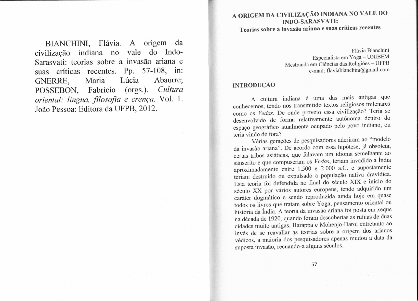 como os Vedas. De onde proveio essa civilização? Teria se