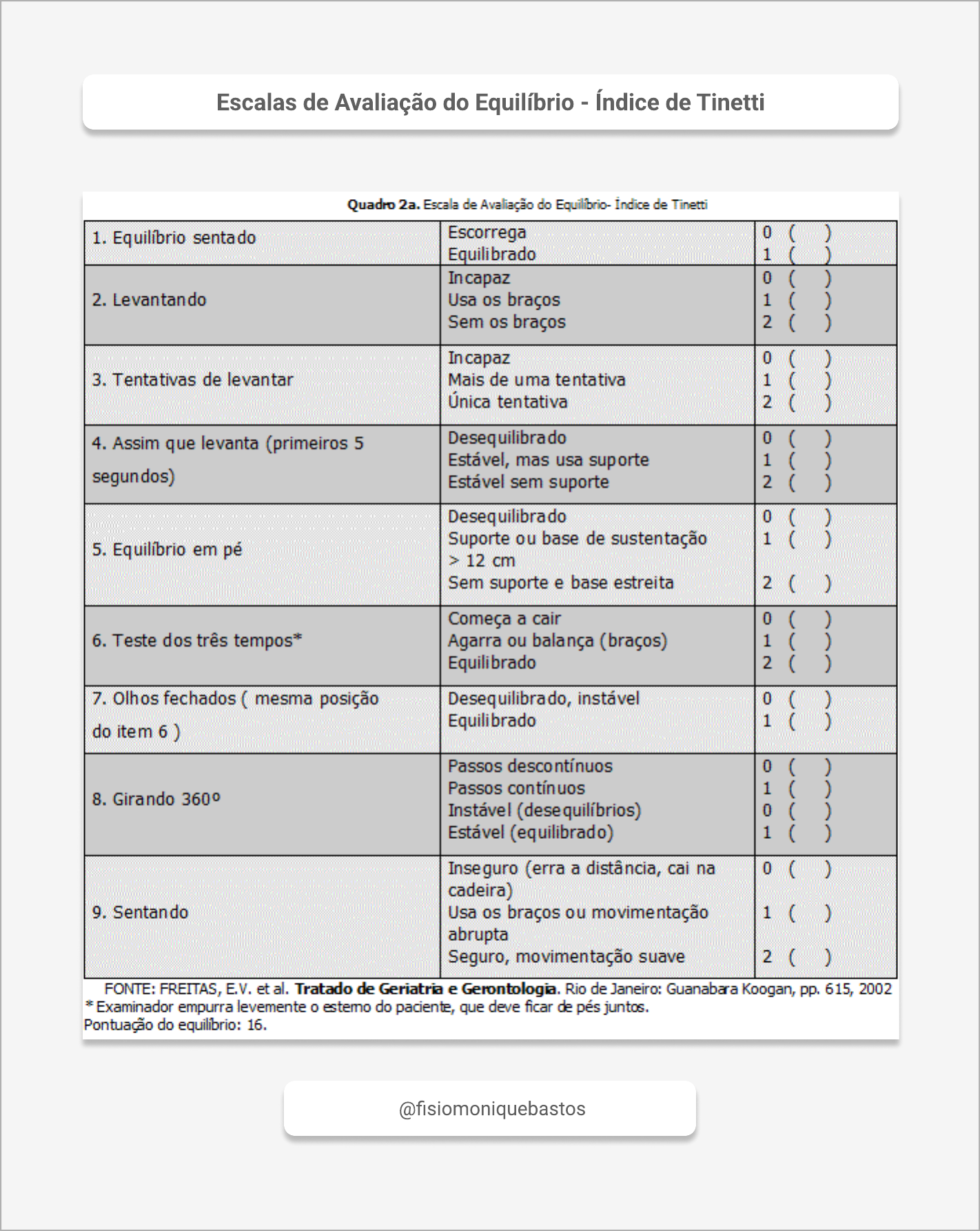 @fisiomoniquebastos Escalas de Avaliação do Equilíbrio - Índice de Tinetti