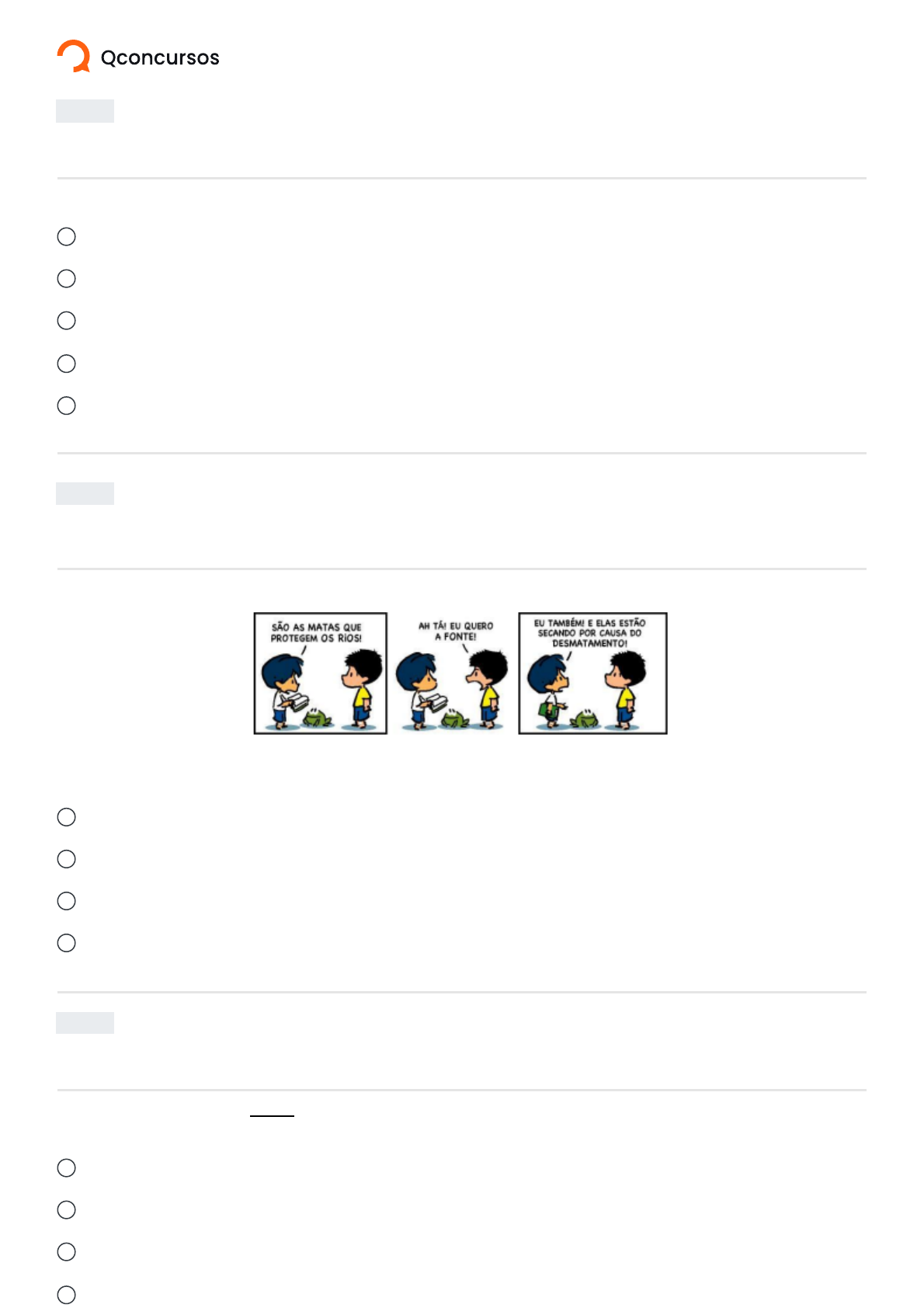 www.qconcursos.com Ano: 2022 Banca: FUNDATEC Órgão: Prefeitura de São José dos Ausentes - RS Assinale a alternativa na qual haja o emprego da linguagem denotativa. A “Você precisa resolver tudo na raça” (l. 04). B “E aí criam-se as panelas” (l. 12). C “são obrigados a pagar um mico” (l. 16-17). D “Os participantes se tornam facilmente irritáveis” (l. 27-28). E “as ‘máscaras vão cair’” (l. 30). Ano: 2022 Banca: IESES Órgão: Prefeitura de Palhoça - SC Para responder à questão, leia a tirinha de Alexandre Beck abaixo. Qual vocábulo da tirinha é utilizado para a construção de uma duplicidade de sentidos? A Rios. B Matas. C Desmatamento. D Fonte. Ano: 2022 Banca: MetroCapital Soluções Órgão: Prefeitura de Nova Odessa - SP “Star Wars é considerado um marco da sétima arte, pois gerou um impacto cultural sem precedentes.” A palavra em destaque foi empregada no excerto, com o intuito de: A Sentido �gurado, ponto de referência. B Sentido �gurado, acontecimento prolongado. C Sentido �gurado, sinal de demarcação. D Sentido literal, metrologia. 1 Q1938727 > Português Interpretação de Textos , Denotação e Conotação Prova: FUNDATEC - 2022 - Prefeitura de São José dos Ausentes - RS - Técnico em Informática 2 Q1936583 > Português Interpretação de Textos , Signi�cação Contextual de Palavras e Expressões. Sinônimos e Antônimos. , Denotação e Conotação Prova: IESES - 2022 - Prefeitura de Palhoça - SC - Professor de Anos Finais - Educação Física 3 Q1935364 > Português Interpretação de Textos , Denotação e Conotação Prova: MetroCapital Soluções - 2022 - Prefeitura de Nova Odessa - SP - Guarda Municipal - Nível III - Masculino/Feminino https://www.qconcursos.com/ https://www.qconcursos.com/questoes-de-concursos/bancas/fundatec https://www.qconcursos.com/questoes-de-concursos/institutos/prefeitura-de-sao-jose-dos-ausentes-rs https://www.qconcursos.com/questoes-de-concursos/bancas/ieses https://www.qconcursos.com/questoes-de-concursos/institutos/prefeitura-de-palhoca-sc https://www.qconcursos.com/questoes-de-concursos/bancas/metrocapital-solucoes https://www.qconcursos.com/questoes-de-concursos/institutos/prefeitura-de-nova-odessa-sp https://www.qconcursos.com/questoes-de-concursos/questoes/44fffdbd-01 https://www.qconcursos.com/questoes-de-concursos/disciplinas/letras-portugues https://www.qconcursos.com/questoes-de-concursos/disciplinas/letras-portugues/interpretacao-de-textos https://www.qconcursos.com/questoes-de-concursos/disciplinas/letras-portugues/denotacao-e-conotacao https://www.qconcursos.com/questoes-de-concursos/provas/fundatec-2022-prefeitura-de-sao-jose-dos-ausentes-rs-tecnico-em-informatica https://www.qconcursos.com/questoes-de-concursos/questoes/779c8a3e-fc https://www.qconcursos.com/questoes-de-concursos/disciplinas/letras-portugues https://www.qconcursos.com/questoes-de-concursos/disciplinas/letras-portugues/interpretacao-de-textos https://www.qconcursos.com/questoes-de-concursos/disciplinas/letras-portugues/significacao-contextual-de-palavras-e-expressoes-sinonimos-e-antonimos https://www.qconcursos.com/questoes-de-concursos/disciplinas/letras-portugues/denotacao-e-conotacao https://www.qconcursos.com/questoes-de-concursos/provas/ieses-2022-prefeitura-de-palhoca-sc-professor-de-anos-finais-educacao-fisica https://www.qconcursos.com/questoes-de-concursos/questoes/31caf30b-fb https://www.qconcursos.com/questoes-de-concursos/disciplinas/letras-portugues https://www.qconcursos.com/questoes-de-concursos/disciplinas/letras-portugues/interpretacao-de-textos https://www.qconcursos.com/questoes-de-concursos/disciplinas/letras-portugues/denotacao-e-conotacao https://www.qconcursos.com/questoes-de-concursos/provas/metrocapital-solucoes-2022-prefeitura-de-nova-odessa-sp-guarda-municipal-nivel-iii-masculino-feminino E Sentido literal, aferência. Ano: 2022 Banca: FGV Órgão: TJ-TO A frase abaixo em que a palavra religião é empregada em sentido �gurado, é: A Fez da obediência ao coronel da fazenda a sua religião; B Todas as religiões parecem-me estar certas em suas a�rmações e erradas em suas negações; C O líder de uma religião não deve só confortar os a�itos, deve também a�igir os confortáveis; D Os que professam alguma religião são mais felizes; E As crianças não devem receber a religião; têm de pegá-la no meio ambiente, como se pega o sarampo. Ano: 2022 Banca: COPESE - UFPI Órgão: Prefeitura de Oeiras - PI Leia o texto a seguir e responda à questão. Por que é tão difícil admitir que estamos errados? A psiquiatria explica 4 Q1934160 > Português Interpretação de Textos , Denotação e Conotação Prova: FGV - 2022 - TJ-TO - Contador - Distribuidor 5 Q1932336 > Português Interpretação de Textos , Denotação e Conotação Provas: COPESE - UFPI - 2022 - Prefeitura de Oeiras - PI - Professor Classe B Nível I - Matemática ... https://www.qconcursos.com/questoes-de-concursos/bancas/fgv https://www.qconcursos.com/questoes-de-concursos/institutos/tj-to https://www.qconcursos.com/questoes-de-concursos/bancas/copese-ufpi https://www.qconcursos.com/questoes-de-concursos/institutos/prefeitura-de-oeiras-pi https://www.qconcursos.com/questoes-de-concursos/questoes/43be94d1-f9 https://www.qconcursos.com/questoes-de-concursos/disciplinas/letras-portugues https://www.qconcursos.com/questoes-de-concursos/disciplinas/letras-portugues/interpretacao-de-textos https://www.qconcursos.com/questoes-de-concursos/disciplinas/letras-portugues/denotacao-e-conotacao https://www.qconcursos.com/questoes-de-concursos/provas/fgv-2022-tj-to-contador-distribuidor https://www.qconcursos.com/questoes-de-concursos/questoes/84e9adc5-f7 https://www.qconcursos.com/questoes-de-concursos/disciplinas/letras-portugues https://www.qconcursos.com/questoes-de-concursos/disciplinas/letras-portugues/interpretacao-de-textos https://www.qconcursos.com/questoes-de-concursos/disciplinas/letras-portugues/denotac