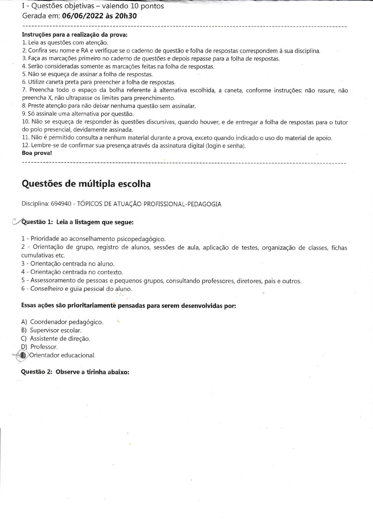 Disciplina: 69494A - TOPICOS DE ATUAÇÃO pROFISSIONAT-pEDAGOGIA