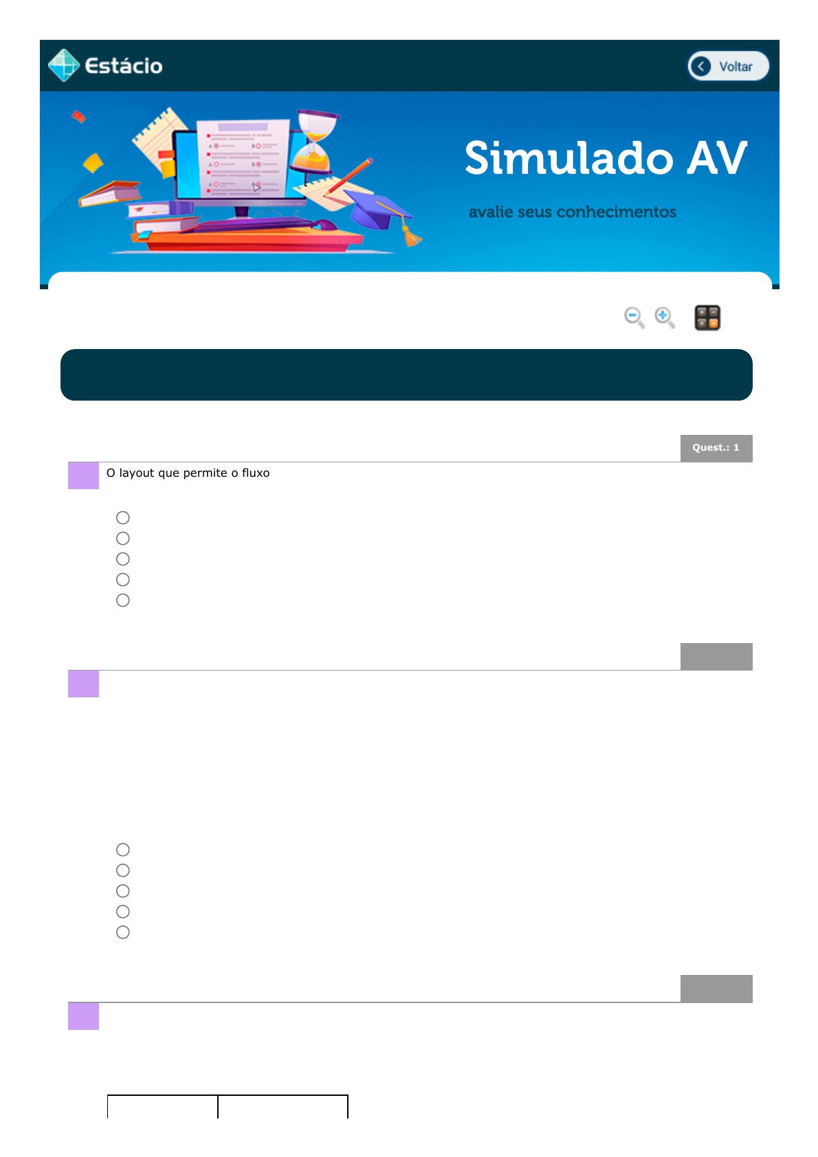 15/09/2021 20:25 Estácio: Alunos https://simulado.estacio.br/alunos/?p0=228475890&user_cod=2187124&matr_integracao=201808329341 1/4 Simulado AV avalie seus conhecimentos Quest.: 1 O layout que permite o fluxo unitário de peças, tem baixos lead times de produção e permite a polivalência de operadores é o: Quest.: 2 O arranjo físico se preocupa com o posicionamento dos recursos de transformação e, por isso, é fundamental para o bom planejamento das instalações. Os quatro tipos básicos de arranjo físico são: - Celular ou de tecnologia de grupo; - Por processo; - Por produto; - Posicional ou de posição fixa. Nesse contexto, são exemplos de instalações para o arranjo físico: Quest.: 3 Dado o quadro abaixo, determine o número de operadores necessários para operar a linha, considerando, respectivamente, a não existência de polivalência de mão de obra e a utilização de operadores polivalentes: Operações Número Lupa Calc. Aluno: ALAN BOMFIM MORAES Matr.: 201808329341 Disciplina: EGT0007 - ADMINISTRAÇÃO DA PRODUÇÃO Período: 2021.3 EAD (GT) / SM 1. Posicional. Por processos. Celular. Misto. Por produtos. 2. Por produto: restaurante à la carte e estaleiro. Por processo: supermercado e loja de departamentos. Celular: linha de produção de automóveis e restaurante self-service. Posicional: linha de produção de automóveis e restaurante self-service. Por processo: linha de produção de automóveis e restaurante à la carte. 3. javascript:voltar(); javascript:alert('Quest%C3%A3o com o c%C3%B3digo de refer%C3%AAncia 201812478701.') javascript:alert('Quest%C3%A3o com o c%C3%B3digo de refer%C3%AAncia 201812484542.') javascript:alert('Quest%C3%A3o com o c%C3%B3digo de refer%C3%AAncia 201813510548.') javascript:diminui(); javascript:aumenta(); javascript:calculadora_on(); 15/09/2021 20:25 Estácio: Alunos https://simulado.estacio.br/alunos/?p0=228475890&user_cod=2187124&matr_integracao=201808329341 2/4 teórico de estações Operação 1 0,8 Operação 2 2,3 Operação 3 1,1 Operação 4 0,4 Operação 5 0,7 Operação 6 3,2 Quest.: 4 Uma linha de produção é formada por três Estações de Trabalho (ET1,ET2,ET3, ET4 e ET5), dispostas em sequência e com capacidades de produção de 200 pçs/h, 120 pcs/h, 300 pçs/h, 90 pçs/h e 450 pçs/h, respectivamente. O gargalo da linha é a Estação: Quest.: 5 O Planejamento de Materiais do Produto X, através do MRP, é mostrado abaixo: O estoque de segurança e o tempo de ressuprimento são, respectivamente: Quest.: 6 Nos trabalhos de Troca Rápida de Ferramenta, as atividades que precisam ser executadas com a máquina parada são chamadas de: 7 operadores polivalentes ou 12 operadores não polivalentes 7 operadores polivalentes ou 13 operadores não polivalentes 9 operadores polivalentes ou 12 operadores não polivalentes 10 operadores polivalentes ou 13 operadores não polivalentes 8 operadores polivalentes ou 14 operadores não polivalentes 4. ET5 ET1 ET3 ET2 ET4 5. 0 unidades e 2 semanas 0 unidades e 1 semana 10 unidades e 2 semanas 10 unidades e 1 semana 50 unidades e 2 semanas 6. javascript:alert('Quest%C3%A3o com o c%C3%B3digo de refer%C3%AAncia 201813488293.') javascript:alert('Quest%C3%A3o com o c%C3%B3digo de refer%C3%AAncia 201813510552.') javascript:alert('Quest%C3%A3o com o c%C3%B3digo de refer%C3%AAncia 201813786218.') 15/09/2021 20:25 Estácio: Alunos https://simulado.estacio.br/alunos/?p0=228475890&user_cod=2187124&matr_integracao=201808329341 3/4 Quest.: 7 Levando em consideração a relevância que representa para a Administração da Produção e Operações, assinale a alternativa que contempla todas as partes relacionadas direta ou indiretamente que fazem parte da Cadeia de Suprimentos ou Supply Chain? Quest.: 8 Assinale a alternativa que contempla temas da função produção ou operação: Quest.: 9 A configuração em que várias empresas do mesmo ramo de atividades estão instaladas na mesma região geográfica é chamado de: Quest.: 10 Uma das linhas de produção de uma instalação produtiva foi dimensionada para operar com 80% de sua capacidade instalada. Sabendo-se que a linha produz 10 unidades por minuto, o volume máximo de produção semanal planejado é de: Atividades fantasmas Atividades externas Atividades cíclicas Atividades regulares Atividades internas 7. Distribuidores, transportadoras, centros de distribuição, armazéns e acionistas. Distribuidores, revendedores, transportadoras, centros de distribuição e órgãos fiscalizadores. Centros de distribuição, armazéns e varejistas. Distribuidores, revendedores, transportadoras, centros de distribuição, armazéns, varejistas, clientes finais, fabricantes e fornecedores. Clientes finais, fabricantes e fornecedores. 8. Gestão de qualidade, gestão de meio ambiente, gestão de saúde e segurança ocupacional, e gestão de responsabilidade social. Projeto de produtos e serviços, estratégia de produção, sistemas de produção, arranjos produtivos, estudo de tempos e movimentos, e ergonomia. Projeto de produtos e serviços, planejamento e controle de projetos, planejamento da produção, gestão de estoques, estratégia de produção, sistemas de produção, arranjos produtivos, estudo de tempos e movimentos, gestão de qualidade e confiabilidade, e ergonomia. Material Requirement Planning (MRP), just in time, Kanban, lean manufacturing e World Class Manufacturing (WCM). Projeto de produtos e serviços, estratégia de produção, sistemas de produção, arranjos produtivos, estudo de tempos e movimentos, gestão de qualidade e confiabilidade, e ergonomia. 9. Cooperativas Cluster Cartel Condomínio Industrial Consórcio Modular 10. javascript:alert('Quest%C3%A3o com o c%C3%B3digo de refer%C3%AAncia 201812353877.') javascript:alert('Quest%C3%A3o com o c%C3%B3digo de refer%C3%AAncia 201812353878.') javascript:alert('Quest%C3%A3o com o c%C3%B3digo de refer%C3%AAncia 201812478731.') javascript:alert('Quest%C3%A3o com o c%C3%B3digo