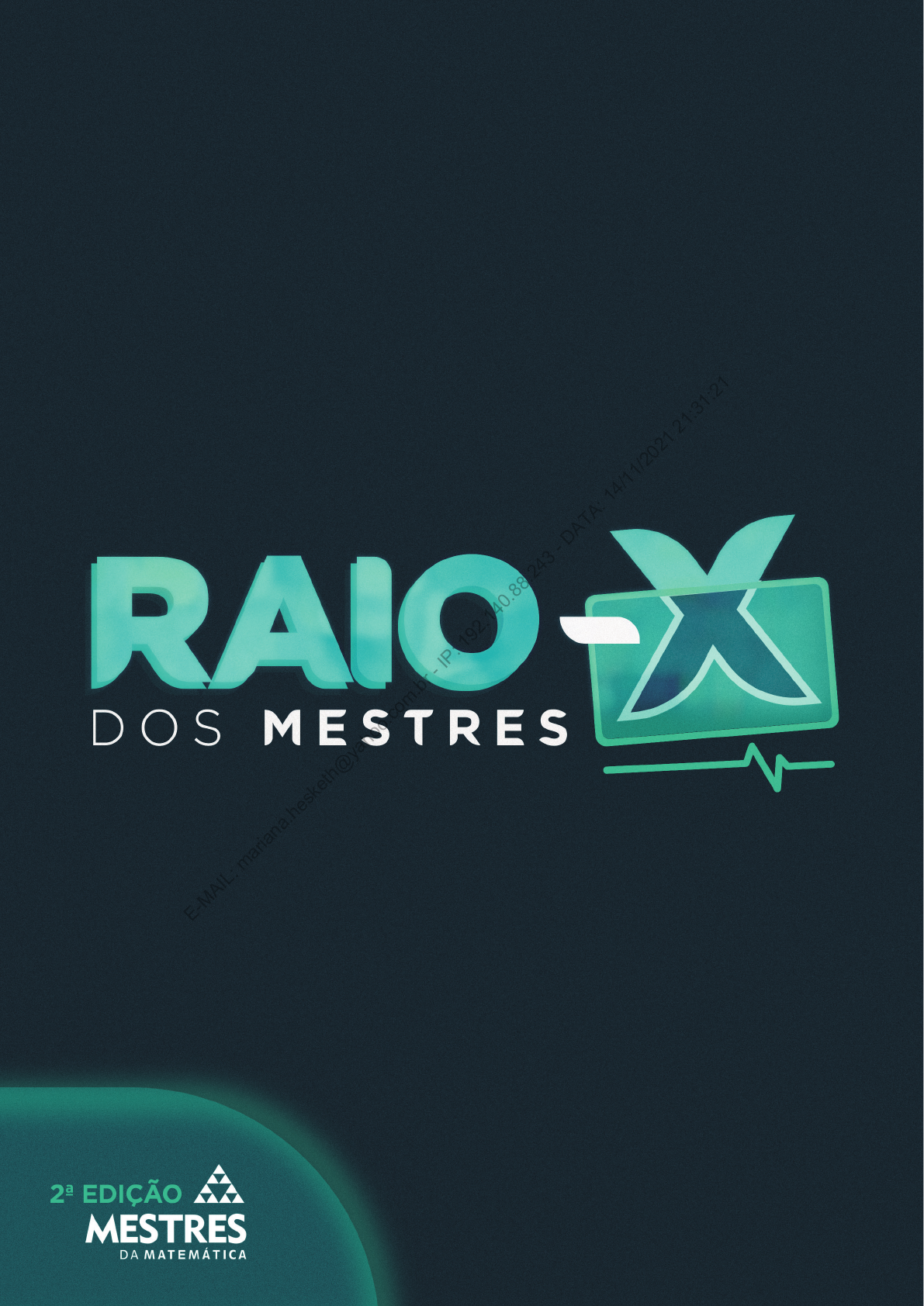 1 RAIO X DOS E- M AI L: m ar ian a. he sk et h@ ya ho o. co m .b r - IP : 1 92 .1 40 .8 8. 24 3 - D AT A: 1 4/ 11 /2 02 1 21 :3 1: 21 2 RAIO X DOS2 RAIO X DOS Somos amigos, professores e compartilhamos de uma mesma paixão: ensinar! Nosso objetivo é desmistificar a matemática e mostrar que um ensino de qualidade pode andar de mãos dadas com aulas leves e descontraídas. Trabalhamos com pré-vestibular desde 1998 e atualmente todos lecionamos no Colégio Bernoulli em Belo Horizonte. Temos um CURSO PREPARATÓRIO - o MESTRES DA MATEMÁTICA há 7 anos e já aprovamos centenas de alunos! Em 2019 relançamos o nosso CANAL no youtube e em 2020 lançamos o MESTRES DA MATEMÁTICA ON-LINE com o objetivo de levar o ensino da MATEMÁTICA a todos os cantos do BRASIL. E- M AI L: m ar ian a. he sk et h@ ya ho o. co m .b r - IP : 1 92 .1 40 .8 8. 24 3 - D AT A: 1 4/ 11 /2 02 1 21 :3 1: 21 3 RAIO X DOS3 RAIO X DOS nesse material estão TODAS as questões da prova de MATEMÁTICA, da 1ª aplicação do ENEM, de 2010 a 2020, para vocês resolverem. Elas estão separadas por assunto e classifi cadas em fácil ,média e difícil de acordo com a TRI DOS MESTRES. Para ajudar ainda mais nos seus estudos, tem um super controle de desempenho para que vocês sinalizem quais questões erraram em cada matéria, tendo um diagnóstico de quais são as suas maiores difi culdades! Além disso, tem explicação da importância da Matemática para escalar a sua nota no ENEM; a análise das barreiras de ruptura e da relação de número de acertos x notas; uma super explicação de como funciona a TRI e os parâmetros do ENEM; toda a estatística de quais foram os assuntos mais recorrentes em cada prova com a graduação de difi culdade, além de dicas imperdíveis para o dia da prova! E não para por aí, preparamos um super CADERNO DOS MESTRES com resumo teórico de todas as matérias que caem na prova! Nós esperamos que esse material REVOLUCIONE o conhecimento de vocês sobre a prova e os ajudem a conquistar a tão sonhada APROVAÇÃO. Um super abraço dos ! E- M AI L: m ar ian a. he sk et h@ ya ho o. co m .b r - IP : 1 92 .1 40 .8 8. 24 3 - D AT A: 1 4/ 11 /2 02 1 21 :3 1: 21 4 RAIO X DOS Todas as questões deste material estão resolvidas em vídeo pelos Mestres na nossa plataforma para todos os alunos dos nossos cursos ON-LINE e AO VIVO*. *Disponível apenas para os cursos Extensivos, Intensivos e Superintensivos ON-LINE e para os cursos Extensivos, Intensivos e Superintensivos AO VIVO! E- M AI L: m ar ian a. he sk et h@ ya ho o. co m .b r - IP : 1 92 .1 40 .8 8. 24 3 - D AT A: 1 4/ 11 /2 02 1 21 :3 1: 21 5 RAIO X DOS I - Análise de DADOS II - Caderno dos MESTRES III - Questões do ENEM (2010-2020) A importância da Matemática Barreiras de Ruptura Partiu 1% Entenda a TRI (Teoria da Resposta Item) Escala de Proficiência TRI X Números de Acertos Na Dúvida CHUTE! Será? Dica dos MESTRES Caderno dos MESTRES Nível de Dificuldade Assuntos Cobrados Simulado Raio X (Simulado de Questões Inéditas) III - Questões do ENEM (2010-2020) Razão e Proporção Estatísticas e Médias Geometria Plana Porcentagem e Juros Geometria Espacial Números Probabilidade Gráfico e Função Análise Combinatória Geometria Analítica Equações e Problemas 79 115 136 159 175 192 204 217 230 238 245 250 255 263 268 272 277 280 283 286 288 65 67 73 78 6 12 13 18 19 24 27 29 32 Função Afim Logaritmo Trigonometria Função Quadrática Projeções Progressões PA e PG Matriz Exponencial Inequações Conjuntos E- M AI L: m ar ian a. he sk et h@ ya ho o. co m .b r - IP : 1 92 .1 40 .8 8. 24 3 - D AT A: 1 4/ 11 /2 02 1 21 :3 1: 21 6 RAIO X DOS A I M P O R TÂ N C I A DA O Enem (Exame Nacional do Ensino Médio) foi criado em 1998 com o objetivo de avaliar o desempenho dos alunos que haviam concluído o ensino médio. Na primeira edição, o exame contou com um número modesto de apenas 115,6 mil participantes, de um total de 157,2 mil inscritos. A proposta original era de fazer um diagnóstico do ensino médio para direcionar políticas públicas e orientar intervenções curriculares. Nas primeiras versões, havia uma redação e uma prova de múltipla escolha contendo 63 questões. As questões não eram dispostas em áreas específi cas, havendo um forte componente multidisciplinar. Entretanto, já se percebia uma preocupação com as habilidades matemáticas cobradas tanto em questões específi cas desta disciplina quanto em outras áreas do conhecimento, como ferramentas de análise e inferência. A partir de 2004, com a criação do PROUNI (Programa Universidade para Todos), houve a popularização defi nitiva do Enem. O PROUNI passou a conceder bolsas em instituições privadas de ensino superior de acordo com o desempenho dos estudantes no exame e demais critérios, como ter sido aluno de escola pública e fatores socioeconômicos. Em 2009 o ENEM adquiriu o caráter de “vestibular nacional” e tornou- se um processo unifi cado de seleção para universidades públicas de todo o País. O exame passou de 63 questões para um teste com 180 perguntas distribuídas em quatro cadernos de prova: Ciências Humanas, Ciências da Natureza, Linguagens e Matemática, além de uma redação. E- M AI L: m ar ian a. he sk et h@ ya ho o. co m .b r - IP : 1 92 .1 40 .8 8. 24 3 - D AT A: 1 4/ 11 /2 02 1 21 :3 1: 21 7 RAIO X DOS7 RAIO X DOS Em 2010 foi criado o SISU (Sistema de Seleção Unificada), ferramenta on-line que cruza os dados das vagas nas instituições de ensino com as notas dos alunos no Enem. Assim, os estudantes fazem apenas uma inscrição e podem concorrer a vagas em instituições públicas de todo o País. Tais modificações tornaram a prova de Matemática ainda mais relevante sendo absolutamente crucial para os candidatos obterem uma boa pontuação em Matemática. O Brasil tem convivido com grandes defasagens no ensino da matemática, conforme demonstrado em vários exames internacionais de proficiência. Em um ambiente de 
