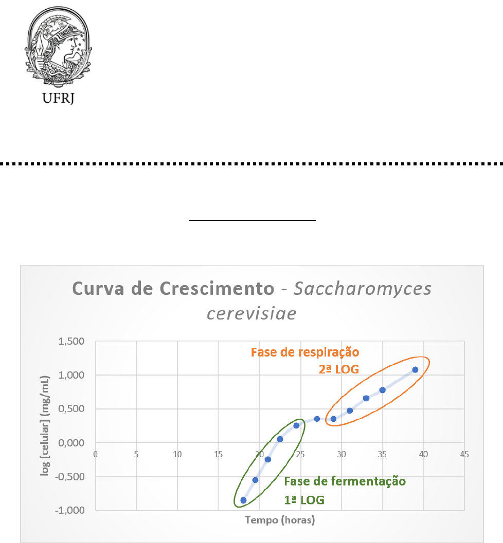 IQ-DQB/UFRJ | Terceiro Estudo Dirigido (ED 3) Disciplina: Bioquímica (IQB366) - Parte Experimental Discentes: Bianca Carvalho dos Santos | DRE: 117048507 Maria Luiza Marujo de Araujo | DRE: 117155396 Rio de Janeiro, 18 de fevereiro de 2022 Crescimento Celular 1) 2) A região circulada em verde corresponde à fase de fermentação, onde as células da levedura crescem devido ao uso da glicose que é utilizada como fonte de carbono para a via glicolítica. Esta etapa é chamada de “1ª LOG” e observa-se um crescimento exponencial da quantidade de células, por isso há um crescimento linear do log da massa de células/mL em relação ao tempo. Na fase de fermentação, a célula não desenvolve a mitocôndria e nem a cadeia respiratória. Dessa forma, o álcool gerado pelo consumo da glicose é excretado, uma vez que não há mitocôndrias disponíveis para oxidá-lo. Portanto, nessa fase a célula fermenta glicose, produzindo etanol e CO2 no meio. Segue-se então uma fase de transição onde as células se adaptam ao metabolismo oxidativo. Nesta fase, durante a qual a mitocôndria se desenvolve, são sintetizadas as enzimas do ciclo de Krebs e da cadeia respiratória. Ao fim desta fase adaptativa, ocorre uma segunda fase de crescimento, circulada em laranja, conhecida como “2ª LOG”. Nesta fase, o etanol, antes excretado, agora é utilizado na fase de respiração da célula. 3) O Tg pode ser analisado como o coeficiente angular da curva. Percebe-se que na 1ª LOG, a curva é mais inclinada, o que sugere um Tg menor. Logo, na 2ª LOG o Tg é maior. Isto é comprovado a partir do seguinte cálculo: Fermentação Alcoólica 1) Na levedura Saccharomyces Cerevisiae, ocorre o efeito chamado repressão catabólica: quando presente em altas concentrações de glicose, há a inibição da formação de mitocôndrias e não desenvolvimento da cadeia respiratória, fazendo com que a levedura fermente a glicose consumida e excretando o álcool por não poder oxidá-lo na falta da mitocôndria. Com isso, como a levedura vai liberar CO2 e etanol na fermentação alcoólica do experimento proposto, já que o frasco se encontra aberto, é possível fazer uma diferença de peso do fermentador com o passar do tempo, podendo calcular o rendimento e eficiência da fermentação, o quanto de glicose foi consumido e o quanto de CO2 foi liberado. 2) O NaF e o etanol são inibidores que atuam de formas diferentes, pois o NaF é um inibidor enzimático e o etanol atua como inibição por produto. O NaF, por ser um inibidor enzimático, inibe a enzima enolase, a qual é responsável por converter o 2-fosfoglicerato em fosfoenolpiruvato durante o processo de glicólise. Essa inibição acontece devido a complexação do fluoreto, do magnésio e do fosfato, que posteriormente se liga ao centro enzimático da enolase. Com essa ligação, há um impedimento na conversão de 2- fosfoglicerato em fosfoenolpiruvato, que então, diminui a produção de ATP. Já no caso do etanol, por ser considerado tóxico pelo metabolismo, sua alta produção vai ter como consequência a redução da velocidade do processo de fermentação. Isso acontece pois o aumento de etanol inibe as enzimas responsáveis pela regulação da via glicolítica. Ademais, ele tem características desidratantes e desnaturantes, fazendo com que os poros nas membranas lipídicas se abram, havendo uma desorganização e comprometendo o gradiente de prótons do processo metabólico. Oxidação Biológica O objetivo do experimento era calcular a atividade da enzima succinato desidrogenase, a qual faz parte da estrutura interna da membrana mitocondrial, e tem a função de transportar elétrons. Para determinar a velocidade da enzima, foi utilizado um método indireto, através da redução do diclorofenolindofenol (DCPIP), que é um aceptor artificial de elétrons. O DCPIP tem uma característica importante, pois sua forma oxidada é azul, e quando recebe os elétrons e passa para sua forma reduzida, se torna incolor. Devido a esse corante que é utilizado o espectrofotômetro, pois com a mudança de cor, também muda o λ máximo de absorção. Outros corantes poderiam ser utilizados, mas ele é altamente específico para essa reação, pois aceptores artificiais aceitam elétrons e prótons de qualquer agente redutor com potencial redox mais negativo que o seu (succinato/fumarato E°=0,03 V e DCPIP/DCPIPH2 E°=0,22 V). O succinato faz parte de uma cadeia de transporte de elétrons onde apresentam 4 complexos proteicos em que os elétrons migram de pares redox com potenciais de redução padrão mais negativos em direção a potenciais mais positivos. Os elétrons são carregados como mostra o esquema abaixo, do Complexo I e II para o Complexo III pela CoQ (succinato-CoQ redutase) e vão até o Complexo IV pelo citocromo c. A azida bloqueia a passagem de elétrons entre o Complexo IV e o O2, assim os elétrons resultantes da oxidação do succinato ficam inviabilizados de passar, e são transferidos diretamente para o DCPIP, ou seja, ela atua como um inibidor do complexo IV e auxilia a redução do DCPIP. O malonato é um inibidor de succinato por competição, pois apresentam uma semelhança estrutural, e consequentemente, não haverá redução do CoQ e a atividade da enzima fica comprometida. Em resumo, a estratégia do experimento é analisar a velocidade da enzima succinato desidrogenase por meio indireto, pela velocidade de redução de um aceptor artificial, e verificar como ela interage com dois tipos de inibidores.