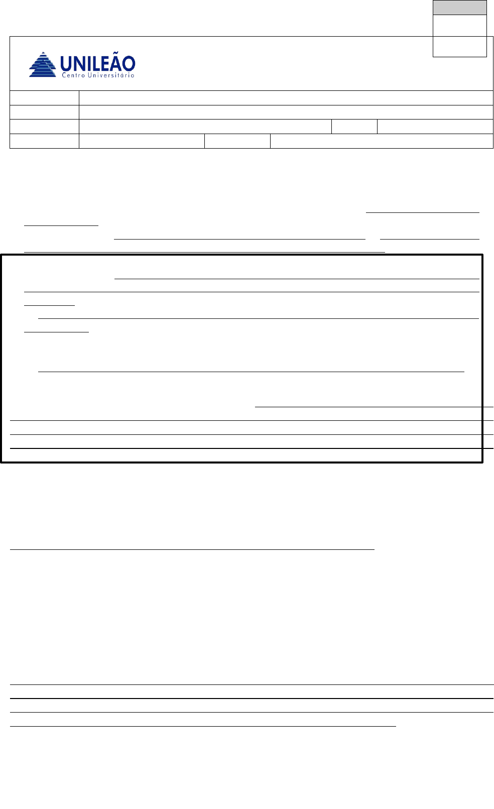 Nota AVP2 2022.1 Aluno: Professor: CLAUVER RENNÊ LUCIANO BARRETO Curso: DIREITO Data: Turma: Disciplina: DIREITO CIVIL VI – SUCESSÕES Orientações para a avaliação: 1. A DATA DE ENTREGA DA AVALIAÇÃO PARCIAL SERÁ DIA 10 DE JUNHO DE 2022. 2. A PROVA DEVE ESTAR DEVIDAMENTE RESPONDIDA E O PRAZO DO ENVIO É IMPRETERIVEL. 3. A avaliação DEVE SER RESPONDIDA JUSTIFICADAMENTE, EMPREGANDO OS ARGUMENTOS JURÍDICOS APROPRIADOS E A FUNDAMENTAÇÃO LEGAL pertinente ao caso. “A MERA CITAÇÃO DO DISPOSITIVO LEGAL NÃO CONFERE PONTUAÇÃO.” 4. As respostas PODEM SER MANUNUSCRITAS OU DIGITADAS E POSTERIORMENTE DIGITALIZADAS EM PDF OU OUTRO ARQUÍVO COMPATÍVEL E ENVIADA NO SISTEMA DA UNILEÃO. 5. A detecção de qualquer tipo de plágio, de outros colegas ou da internet IMPLICARÁ NA NOTA ZERO. 6. Poderá ser enviada somente respostas e o caso prático criado de forma digitalizada em PDF. 7. A inobservância de qualquer das regras acima acarretará automaticamente em nota zero. A prova de AVP2 de civil 6, VALENDO 4,00 PONTOS, vai se constituir em duas partes. A primeira parte consiste em criar uma história (caso hipotético) que institua a vida de uma personagem com informações relevantes como: se a personagem era casada, qual seu patrimônio, comum e particular, além de informações de cunho de âmbito familiar relevantes para a sucessão, como se tinha descendentes, ascendentes etc. Exemplo: Seu João, surdo mudo, alfabetizado, casado com dona Ruth no regime matrimonial tal, pai de 3 filhos José, Otávio e Pedro, todos maiores, tinha um patrimônio constituído junto com dona Ruth no valor de 1 milhão de reais, tinha xxx filhos... CADA ALUNO DEVE CRIAR SEU PRÓPRIO CASO HIPOTÉTICO! Depois de criado o caso hipotético, considerando as informações nele contidas, a segunda etapa da AVP2 consiste na escolha de um dos tipos de testamento (ordinários ou especiais), para formular o testamento de um de seus personagens, fundamentando cada disposição testamentária, o tipo de testamento e suas especificidades. VOCÊ VAI FAZER O TESTAMENTO DO PERSONAGEM CONFORME A HISTÓRIA E DADOS CRIADOS POR VOCÊ E DEVE FUNDAMENTAR O TESTAMENTO, POR EX. SE ESCOLHER O TESTAMENTO MARÍTIMO TEM QUE DIZER QUE ESTAVA A BORDO DE UM NAVIO E QUE NOS TERMOS DO ART. 1888 DO CC! Exemplo 2: Trata-se do Testamento Cerrado nos termos do art. 1868 do cc, por se tratar o testador de pessoas surda muda atendendo o disposto no art. 1873, onde dispõe de tais bens com observância a reserva da legítima por ter herdeiros necessários nos termos do art. 1845 e 1846 do cc. 2 Testemunhas compõem o ato, conforme dicção do art. 1868, IV. Devem ser observados os requisitos formais e materiais do testamento. OBRIGATORIAMENTE você vai incluir no testamento, uma disposição legatária a termo ou condicional a escolha do aluno, com o respectivo fundamento legal. OBRIGATORIAMENTE você vai incluir no testamento uma clausula instituindo uma substituição fideicomissária, com o respectivo fundamento legal. OBRIGATORIAMENTE você vai incluir no testamento uma disposição de bem determinado pelo gênero como obrigação instituída a um legatário (você deve criar esse legatário) adquirir e doar esse bem determinado pelo gênero em favor de uma instituição de caridade, como forme de legar coisa alheia nos moldes da exceção prevista no CC. A pontuação da prova (04 pontos) será distribuída da seguinte maneira: A história hipotética valerá 0,5 ponto; A formulação CORRETA E FUNDAMENTADA do testamento valerá 1,5 ponto, A clausula legatária a termo ou condicional valerá 0,5 ponto (ESCOLHA SÓ UMA DAS DUAS); A clausula de nomeação de substituto fideicomissário valerá 0,5 ponto, A CLAUSULA de disposição de bem determinado pelo gênero valerá 0,5 ponto, Valerá 0,5 ponto a boa fundamentação de todas as cláusulas do testamento. Quanto mais bem elaborada e mais assuntos envolver, maior será a pontuação conquistada. Boa Prova!