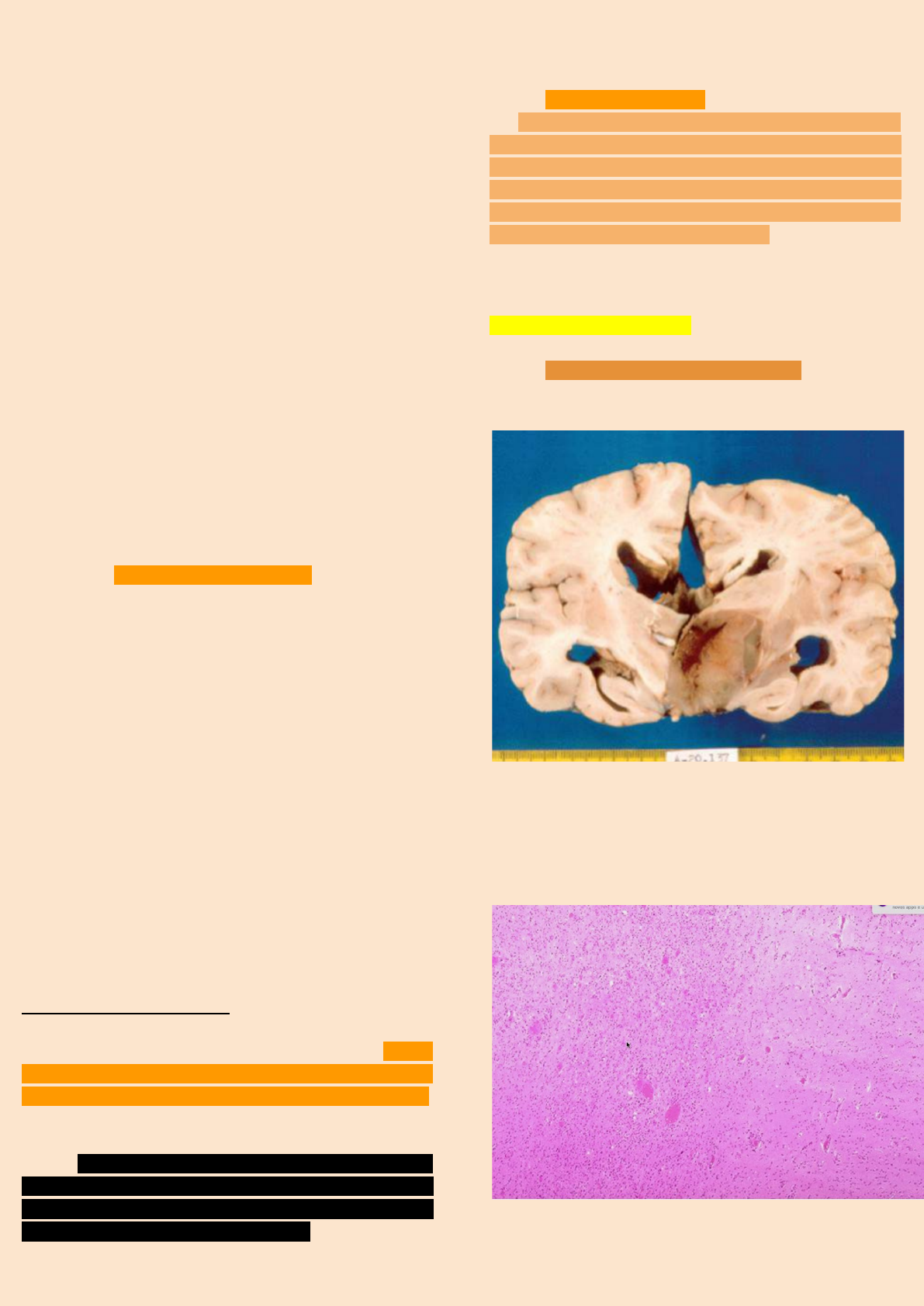 Julia S Crescencio P6 Tumores astrocitários → Mais frequentes O termo astrocitoma, sem outra especificação, designa tumores de crescimento infiltrativo difuso que, conforme seu comportamento biológico, são classificados como astrocitoma ou astrocitoma difuso (grau II), astrocitoma anaplásico (grau III) e glioblastoma (grau IV). Outros tumores astrocitários são astrocitoma pilocítico (grau I), astrocitoma subependimário de células gigantes (grau I) e xantoastrocitoma pleomórfico (grau II). Astrocitoma pilocítico → Grau 1, baixo potencial proliferativo, com crescimento lento e expansivo → Crianças e adolescentes → Nervos ópticos, no quiasma óptico/região hipotalâmica, no tálamo e cerebelo. → Localizações menos comuns são os hemisférios cerebrais (porção medial do lobo temporal), o tronco encefálico e a medula espinhal. → Transformação para astrocitoma pilocítico anaplásico é muito rara, em geral após radioterapia. As manifestações clínicas relacionam-se com as localizações do tumor. No quiasma e nos nervos ópticos, produz diminuição e perda da acuidade visual, papiledema, atrofia do nervo óptico, exoftalmia unilateral e perturbação dos movimentos oculares. O astrocitoma da região quiasmática, pelo acometimento frequente do hipotálamo, determina sinais e sintomas de disfunção hipotalâmica. Os tumores da região hipotalâmica causam diabetes insípido, puberdade precoce, obesidade, hipogonadismo, bulimia, emaciação, sinais e sintomas de hipertensão intracraniana e alterações visuais. No cerebelo, causam manifestações ligadas a compressão do IV ventrículo, do tronco encefálico (hipertensão intracraniana, nistagmo e estrabismo) e das raízes cervicais (rigidez de nuca) e ao comprometimento cerebelar (ataxia). Aspectos morfológicos O tumor tem limites em parte bem definidos, em parte imprecisos. O tecido tumoral possui áreas compactas, mais esbranquiçadas, ao lado de áreas mais frouxas, gelatinosas e acinzentadas. Cistos de dimensões variadas podem ser encontrados. Os tumores císticos são mais frequentes, sendo constituídos por grande cisto solitário preenchido por líquido seroso e contendo nódulo tumoral parietal geralmente pequeno. Quando sólidos, têm superfície de corte acinzentada, homogênea e mole. Tanto as formas sólidas quanto as císticas causam compressão do IV ventrículo. Microscopicamente, o astrocitoma pilocítico tem áreas compactas, sólidas, com células fusiformes e prolongamentos longos, ricos em fibras gliais, e áreas frouxas, formadas por astrócitos protoplasmáticos estrelados, desprovidos de fibras gliais, muitas vezes ao redor de pequenos cistos. Proliferação microvascular, especialmente na parede dos cistos, é relativamente comum, mas não implica transformação maligna. Achado frequente são as fibras de Rosenthal e os corpos granulares eosinófilos. Mitoses são ausentes ou raras, e o índice médio de proliferação celular avaliado pelo Ki-67/MIB-1 é de 1,1%. Astrocitoma pilocítico da região hipotalâmica. Notar a boa delimitação do tumor, cisto gelatinoso, compressão do III ventrículo e hidrocefalia. A hemorragia intratumoral deve-se a biópsia prévia. Notar, ainda, válvula para derivação ventricular. → Muito parecido com o parênquima normal. Percebe-se as fibras de Rosenthal nas áreas tumorais (compridas). Julia S Crescencio P6 Astrocitoma pilocítico. Áreas compactas, fibrilares e frouxas, microcísticas. Astrocitoma pilocítico. Área compacta, fibrilar, com numerosas fibras de Rosenthal (estruturas acidófilas e alargadas). Astrocitoma subependimário de células gigantes → Grau 1 → Associado a esclerose tuberosa. → O tumor aparece mais nas duas primeiras décadas de vida e na maioria dos casos os pacientes apresentam a forma frustra da doença, ou seja, sem história familial e sem os sinais da tríade clínica: retardamento mental, convulsões e angiofibromas da face. O tumor origina-se quase sempre na região anterior da parede medial do assoalho dos ventrículos laterais, formando massa intraventricular que obstrui o forame interventricular e causa hidrocefalia. A lesão é bem delimitada, acinzentada e mole, podendo conter áreas císticas e de calcificação. As células tumorais são grandes, globoides ou de contorno irregular, piramidal ou fusiforme, de onde partem prolongamentos ricos em fibras gliais. O citoplasma é amplo, acidófilo, homogêneo e hialino. O núcleo é excêntrico, grande e vesiculoso e contém nucléolo bem evidente, o que dá certa semelhança com neurônios; contudo, não contém corpos de Nissl ou neurofibrilas. As células neoplásicas exibem fenótipo glioneuronal, sendo imunorreativas para proteínas gliais e neuronais. Agravamento das crises convulsivas e sinais e sintomas de hipertensão intracraniana são as manifestações usuais. O tumor tem crescimento lento e não recidiva quando ressecado totalmente. Caráter vesiculoso dos núcleos Obs.: Os astrócitos gemistocíticos são células com núcleo excêntrico e citoplasma volumoso, róseo e homogêneo (aspecto hialino). Julia S Crescencio P6 Xantoastrocitoma pleomórfico → Grau II → Raro, afeta principalmente crianças, adolescentes e adultos jovens de ambos os gêneros. → Tem localização superficial, ocupando o córtex cerebral, preferencialmente do lobo temporal, e a partir daí se infiltra na leptomeninge adjacente. Um ou mais cistos com nódulo mural são comumente encontrados. Microscopicamente, é formado por células grandes, com citoplasma amplo, acidófilo e núcleos excêntricos, ao lado de células alongadas arranjadas em fascículos e envoltas por rede de fibras reticulares. Há pleomorfismo e hipercromasia nucleares, multinucleação e poucas figuras de mitose; não há necrose. Pode haver acúmulo de lipídeos no citoplasma das células neoplásicas; essa alteração e o aspecto pleomórfico do tumor levaram à designação xantoastroc