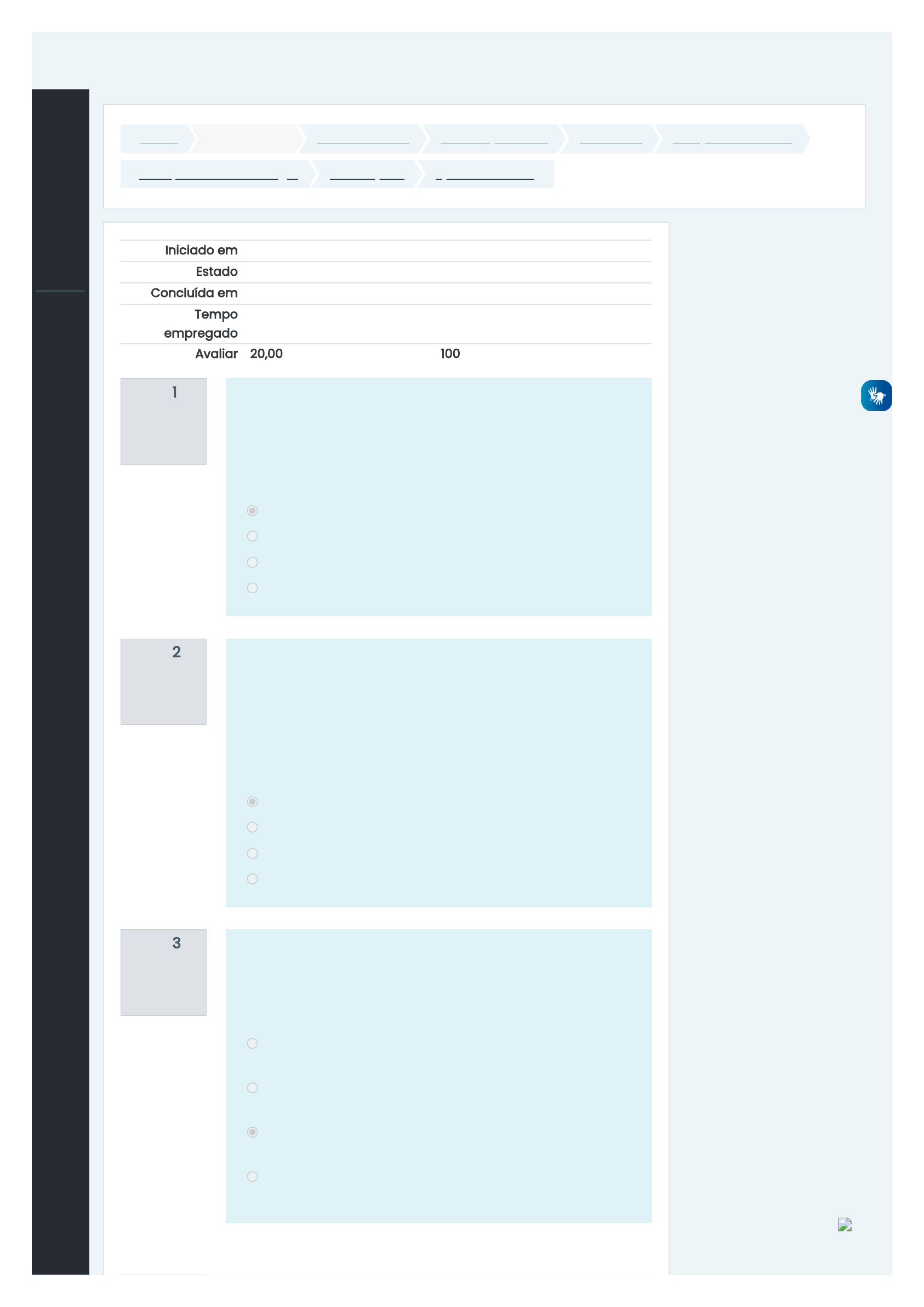 28/09/2022 11:33 QUESTIONÁRIO 2 https://ava.funec.br/mod/quiz/review.php?attempt=334564&cmid=9859 1/4 Painel Meus cursos CURSOS FUNEC Graduação - EAD Aluno EAD JUNÇÕES DE TURMA Princípios de Entomologia AVALIAÇÕES QUESTIONÁRIO 2 Questão 1 Completo Atingiu 2,00 de 2,00 Questão 2 Completo Atingiu 2,00 de 2,00 Questão 3 Completo Atingiu 2,00 de 2,00 Iniciado em Wednesday, 28 Sep 2022, 09:58 Estado Finalizada Concluída em Wednesday, 28 Sep 2022, 11:33 Tempo empregado 1 hora 34 minutos Avaliar 20,00 de um máximo de 20,00(100%) Diferentes linhagens de insetos se especializaram em utilizar fontes diversas de alimentos. O aparelho digestivo dos insetos é estruturalmente e funcionalmente dividido nas seguintes regiões: Escolha uma opção: a. estomodeu, mesêntero e proctodeu. b. estomodeu, papo, proctodeu. c. esôfago, papo e proventrículo. d. esôfago, proventrículo, papo. Os insetos possuem sangue frio, ou seja, sua temperatura corpórea acompanha a temperatura ambiente. Como são definidos os organismos com esse comportamento de temperatura corpórea? Escolha uma opção: a. Pecilotérmicos. b. Endotérmicos. c. Exotérmicos. d. Homotérmicos. Os insetos apresentam centralização de gânglios nervosos na região cefálica, formando um cérebro. Este órgão é composto por três regiões distintas que enervam os seguintes órgãos: Escolha uma opção: a. protocérebro: olhos; tritocérebro: antenas e deuterocérebro: peças bucais. b. protocérebro: antenas; deuterocérebro: olhos e tritocérebro: asas. c. protocérebro: olhos; deuterocérebro: antenas e tritocérebro: peças bucais. d. protocérebro: antenas; tritocérebro: olhos e deuterocérebro: peças bucais. https://ava.funec.br/my/ https://ava.funec.br/course/index.php?categoryid=10 https://ava.funec.br/course/index.php?categoryid=17 https://ava.funec.br/course/index.php?categoryid=19 https://ava.funec.br/course/index.php?categoryid=77 https://ava.funec.br/course/view.php?id=639 https://ava.funec.br/course/view.php?id=639#section-6 https://ava.funec.br/mod/quiz/view.php?id=9859 javascript:void(0); https://ava.funec.br/user/index.php?id=639 https://ava.funec.br/badges/view.php?type=2&id=639 https://ava.funec.br/admin/tool/lp/coursecompetencies.php?courseid=639 https://ava.funec.br/grade/report/index.php?id=639 https://ava.funec.br/my/ https://ava.funec.br/?redirect=0 https://ava.funec.br/calendar/view.php?view=month&course=639 javascript:void(0); https://ava.funec.br/user/files.php https://ava.funec.br/course/view.php?id=374 https://ava.funec.br/course/view.php?id=757 https://ava.funec.br/course/view.php?id=356 https://ava.funec.br/course/view.php?id=461 https://ava.funec.br/course/view.php?id=954 https://ava.funec.br/course/view.php?id=322 https://ava.funec.br/course/view.php?id=369 https://ava.funec.br/course/view.php?id=366 https://ava.funec.br/course/view.php?id=485 https://ava.funec.br/course/view.php?id=447 https://ava.funec.br/my/ 28/09/2022 11:33 QUESTIONÁRIO 2 https://ava.funec.br/mod/quiz/review.php?attempt=334564&cmid=9859 2/4 Questão 4 Completo Atingiu 2,00 de 2,00 Questão 5 Completo Atingiu 2,00 de 2,00 Questão 6 Completo Atingiu 2,00 de 2,00 Questão 7 Completo Atingiu 2,00 de 2,00 O ácido úrico é a principal excreta dos insetos e constitui uma importante adaptação ao meio terrestre, uma vez que é eliminado sem que ocorra perda de água. Nesses animais, a excreção ocorre por meio do(a)(s): Escolha uma opção: a. Metanefrídeos. b. Rins. c. Traqueia. d. Túbulos de Malpighi. A respiração e a circulação nos insetos sustentam a alta demanda metabólica desses animais durante o voo. Além disso, a respiração traqueal é uma importante adaptação dos insetos para a vida terrestre. Sobre as relações fisiológicas entre os processos respiratório e circulatório nos insetos, é correto afirmar: Escolha uma opção: a. O sistema circulatório aberto contém hemocianina, pigmento respiratório que facilita o transporte de oxigênio do sistema traqueal para os tecidos. b. O sistema circulatório fechado contém hemoglobina e é fundamental para o transporte de oxigênio do sistema traqueal para os tecidos. c. O sistema traqueal conduz oxigênio da hemolinfa para os tecidos, o que torna a respiração dependente de um sistema circulatório. d. O sistema traqueal conduz oxigênio diretamente para os tecidos e o dióxido de carbono em direção oposta, o que torna a respiração independente de um sistema circulatório. Os insetos, assim como outros artrópodes, possuem um exoesqueleto quitinoso relacionado com a proteção contra predadores e a perda de água. Esse exoesqueleto, no entanto, é um grave problema quando o assunto é crescimento. Marque a alternativa que apresenta o nome do processo que garante o crescimento desses animais. Escolha uma opção: a. Evolução. b. Permuta. c. Metamorfose. d. Ecdise. Dos organismos a seguir, qual possui metamorfose incompleta? Escolha uma opção: a. Joaninha. b. Borboleta. c. Traça. d. Gafanhoto. javascript:void(0); https://ava.funec.br/user/index.php?id=639 https://ava.funec.br/badges/view.php?type=2&id=639 https://ava.funec.br/admin/tool/lp/coursecompetencies.php?courseid=639 https://ava.funec.br/grade/report/index.php?id=639 https://ava.funec.br/my/ https://ava.funec.br/?redirect=0 https://ava.funec.br/calendar/view.php?view=month&course=639 javascript:void(0); https://ava.funec.br/user/files.php https://ava.funec.br/course/view.php?id=374 https://ava.funec.br/course/view.php?id=757 https://ava.funec.br/course/view.php?id=356 https://ava.funec.br/course/view.php?id=461 https://ava.funec.br/course/view.php?id=954 https://ava.funec.br/course/view.php?id=322 https://ava.funec.br/course/view.php?id=369 https://ava.funec.br/course/view.php?id=366 https://ava.funec.br/course/view.php?id=485 https://ava.funec.br/course/view.php?id=447 https://ava.funec.br/my/ 28/09/2022 11:33 QUESTIONÁRIO 2 https://ava.funec.br/mod/quiz/review.php?attempt=334564&cmid