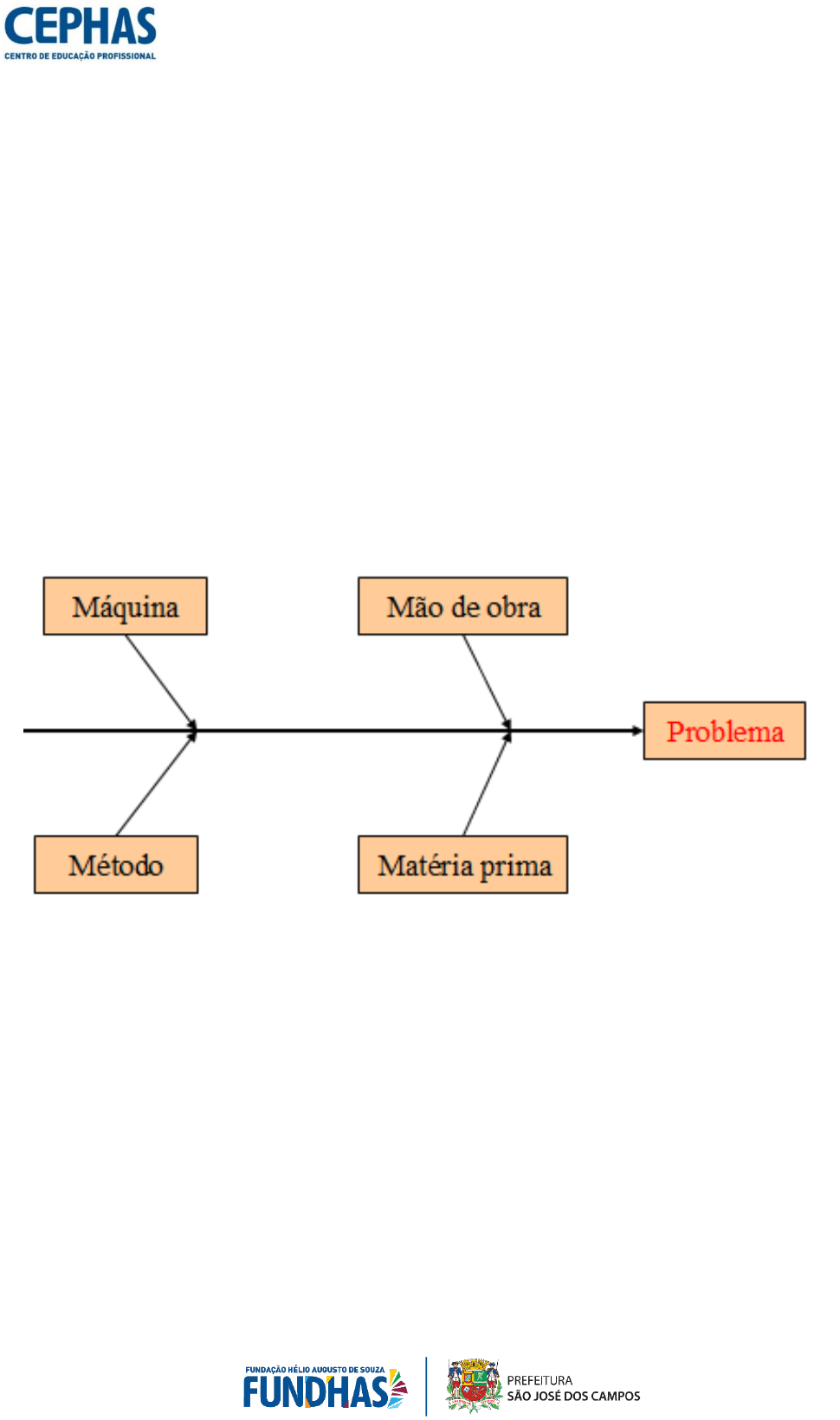 DIAGRAMA DE CAUSA E EFEITO O diagrama de causa e efeito, também conhecido como espinha de peixe foi desenvolvido pelo próprio Ishikawa e tem esse nome (espinha de peixe) devido ao seu formato peculiar. O seu eixo principal aponta diretamente para o problema a ser discutido enquanto que as ramificações laterais representam os 4 M’s (Máquina, Mão de obra, Matéria prima e Método) que são tidas como os potenciais problemas de qualidade. Por meio do uso desse diagrama é possível identificar somente as possíveis causas para um dado problema. Por exemplo, o chef de cozinha de um restaurante precisa saber o motivo pelo qual os seus clientes começaram a reclamar da comida e ao elaborar juntamente com sua equipe um diagrama de Pareto obteve a seguinte figura: Nesse tipo de diagrama é possível verificar que não existe a indicação clara da causa raiz de um problema, mas sim o levantamento de possíveis causas relacionadas com os 4 M’s. Deste modo, a solução definitiva para o problema apontado depende das prioridades do grupo, ou seja, muitas vezes melhorar a qualidade da matéria prima é mais fácil que trocar o maquinário ou a mão de obra. Mas isto pode não solucionar o problema em definitivo, por isso muitas vezes é necessário elaborar outros diagramas de causa e efeito secundários estudando cada um dos itens apontados. Diagrama de dispersão Esse é um gráfico que relaciona duas características diferentes, mas que, no entanto, possuam uma relação entre si, tais como: Peso e altura (peso versus altura; peso x altura); Preço e quantidade de produto. O objetivo dessa ferramenta da qualidade é mostrar se existe ou não uma relação de causa e efeito entre duas características, ou seja, quanto mais você compra de um determinado produto mais caro será a conta na hora de pagar. Por exemplo, o dono de uma empresa fabricante de queijos, precisa saber se existe uma relação entre o tempo que o queijo fica na salmoura e a quantidade de sal que ele absorve, com o intuito de otimizar a sua produção e para isso, ele colocou um queijo dentro da salmoura e monitorou a quantidade de sal que ia sendo absorvia ao longo do tempo e depois de coletar os dados montou o seguinte gráfico de dispersão: Observando o diagrama, o empresário percebeu que existe sim uma relação entre o teor de queijo no sal e o tempo dentro da salmoura, já que quanto mais o queijo ficou imerso mais salgado ele foi ficando. No entanto, essa absorção de sal é bem relevante por volta de 30 minutos e a partir de 35 minutos a quantidade absorvida pelo queijo 0,1 0,15 0,2 0,25 0,3 0,35 0,4 0,45 20 25 30 35 40 45 50 55 60 65 Tempo no banho (min) T eo r d e sa l n o q u ei jo se tornou muito baixa, percebendo também que deixar o queijo na salmoura em tempos acima de 35 minutos seria uma perda de tempo e consequentemente perda de dinheiro. Gráfico de controle O gráfico de controle ou carta de controle é usado para pesquisar as tendências e padrões que podem estar acontecendo ao longo do tempo em um dado processo de fabricação, podendo também ser utilizado para monitorar preventivamente um processo verificando se o produto está saindo dentro do especificado. Ele é muito importante dentro de um processo, pois se bem elaborado, permite predizer o quanto se pode produzir além de reduzir em muito as variações tendenciosas que podem estar ocorrendo dentro de um processo, justamente pelo fato de ser elaborado quase que de forma simultânea com os produtos. O gráfico de controle pode ser basicamente de dois tipos: De variáveis quantitativas: peso (massa), largura, comprimento, tempo etc; De atributos, ou características qualitativas: sexo, estado civil, peça boa ou ruim etc. A partir de várias medições dos dados de processo, é possível obter a média e os limites superior e inferior de controle, ou seja, para um prego a média seria o seu comprimento ideal, digamos 5 cm, o limite superior seria 5,2 cm e o limite inferior seria 4,8 cm. Se durante o processo de fabricação dos pregos as medidas de comprimento se mantiverem dentro do Limite Superior de Controle (LSC) e do Limite Inferior de Controle (LIC) a produção está OK, no entanto caso algum prego sofra um desvio e fique maior o gráfico de controle terá um ponto fora das linhas especificadas, conforme a figura abaixo:
