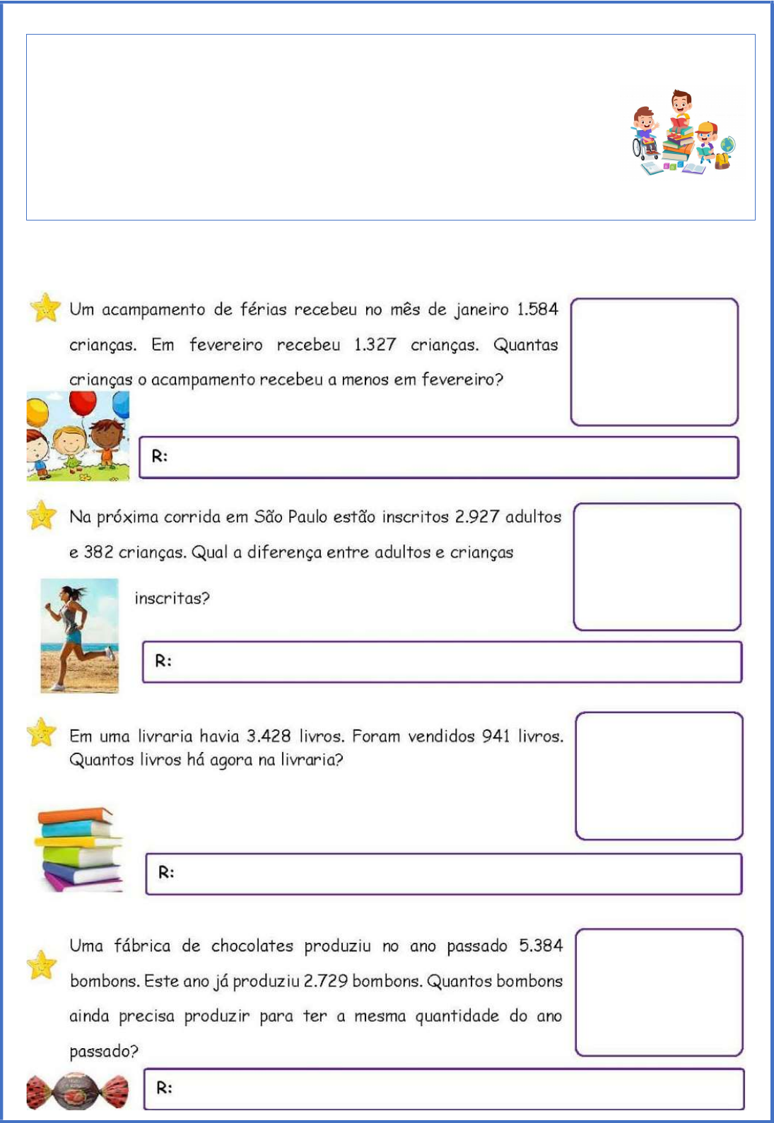 NOME:_____________________________________________________________ ANO: ______ TURMA: ______ DATA:______/______/________ PROFESSORA: ______________________________________________________ PROBLEMINHAS COM SUBTRAÇÕES