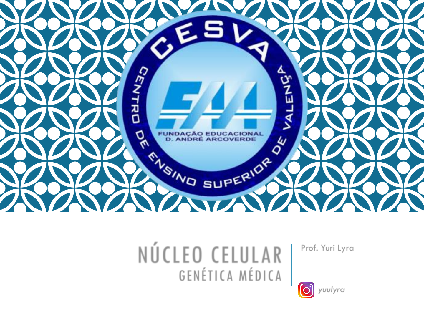 NÚCLEO CELULAR GENÉTICA MÉDICA Prof. Yuri Lyra MSc em Ciências Biomédicas yurilyra@gmail.com yuulyra Objetivo Geral → Reconhecer a organização do Núcleo Celular Objetivos Específicos → Identificar os componentes presentes no Núcleo celular → Compreender as relações celulares mantidas c/ o Núcleo celular NÚCLEO CELULAR GENÉTICA MÉDICA Capítulo 12 Introdução - O NÚCLEO é a região responsável por atuar como GUARDIÃO das informações hereditárias (DNA), necessárias a (sobre)vivência da cél no ambiente Nucleoplasma (Enzs da REPLICAÇÃO) Síntese d e R N A rSustentação & Formato → Trânsito Internuclear → → CARIOTECA (Eucariotas x Procariotas) Organização nuclear após CC → C R O M O SS O M O S (4 6 ) “T er ri tó ri o s” (i n te r) C R O M O SS Ô M IC O S Lâminas Nucleares - As Lâminas nucleares são formados por FINTER os quais estão envolvidos em diversas Funções (Ex.: SUSTENÇÃO/FORMATO) e [“disfunções”] • Lâminas Nucleares (A*, B e C) →MNINTERNA x Cromatina) Obs.: Laminopatias → Genes LMNA MUTADOS (Distrofias e Neuropatias) Lâminas Nucleares • Lâminas Nucleares (A*, B e C) →MNINTERNA x Cromatina) Obs.: Laminopatias → Genes LMNA MUTADOS (Distrofias e Neuropatias) • As Lâminas nucleares se associam diretamente ao TELÔMERO dos cromossomos → mutações implicam no envelhecimento celular PRECOCE Poro Nuclear - O Envoltório nuclear se apresenta de forma descontínua, permitindo a passagem SELETIVA (NLS/NES) de mols (Ex.: RNAm e Enzimas) Finter Im p o rt in as e/ o u T ra n sp o rt in as • A Face EXTERNA associa-se ao RER (SEM/SCM) • A Face INTERNA participa da organização nuclear através da ligação a Cromatina Trânsito Internuclear - O TRÂNSITO internuclear ocorre por meio da participação de mols (IM/EX/TRANSPORTINAS) que se associam a SEQUÊNCIAS de Ptns (NLS/NES) • RECEPTORES de HORMÔNIOS permanecem no citosol “gripados” a ptns chaperonas IMPEDINDO sua passagem em direção ao núcleo celular diafragma diafragma E GAP GEF Ran GTP/GDP+P Trânsito Internuclear - O TRÂNSITO internuclear ocorre por meio da participação de mols (IM/EX/TRANSPORTINAS) que se associam a SEQUÊNCIAS de Ptns (NLS/NES) • RECEPTORES de HORMÔNIOS permanecem no citosol “gripados” a ptns chaperonas IMPEDINDO sua passagem em direção ao núcleo celular diafragma diafragma E GAP GEF Ran GTP/GDP+P Cromatina - A Cromatina é responsável pela SÍNTESE de RNA não ribossômico – RNAm e RNAt. A und básica da cromatina é denominada NUCLEOSSOMA (DNA + Ptns Histonas) x46 • Eucromatina – estado ativo do DNA → RNAm e RNAt • Heterocromatina – estado inativo do DNA → Facultativa/Constitutiva D N A H 1 H 2- 4 Cromatinas Sexuais - Os Cromossomos sexuais X estão presentes aos pares em MULHERES, e precisam ser silenciados (Corpúsculo de Barr) → COMPENSAÇÃO de DOSE Obs.: A inativação do cromossomo sexual X é ALEATÓRIA, podendo ser de origem materna ou paterna Cromatinas Sexuais - Os Cromossomos Sexuais X estão presentes aos pares em MULHERES, e precisam ser silenciados (Corpúsculo de Barr) → COMPENSAÇÃO de DOSE Obs.: Em ANEUPLOIDIAS, o nº de cromatinas sexuais pode ser variável (Ex.: “Triplo X” – 02 Corpúsculos de Barr) CdB NØ – PMN Nucléolo - O Nucléolo é região central do núcleo, cuja função é a SÍNTESE de RNAr e reorganização do núcleo celular após a divisão • PTNs presentes no nucléolo se associam a outros produtos gênicos p/ desempenhar função de proteção do GENOMA celular Nucléolo • Após a síntese e processamento do RNAr, estes se associam as “fitas” de RNAm em estruturas denominadas polissomas/poliribossomas • Obs.: Embora as “funções ribossomais” sejam idênticas em diversos seres vivos, suas COMPOSIÇÕES NÃO são (80S/70S) Nucléolo • Após a síntese e processamento do RNAr, estes se associam as “fitas” de RNAm em estruturas denominadas polissomas/poliribossomas • Obs.: Embora as “funções ribossomais” sejam idênticas em diversos seres vivos, suas COMPOSIÇÕES NÃO são (80S/70S) Localização Nuclear - CORANTES c/ “afinidades” ácidas ou básicas são utilizados p/ diversos propósitos em Histologia/Patologia Clínica • Ácidos nucleicos (DNA/RNA) são basofílicos e portanto se coram por corantes básicos (Hematoxilina) Localização Nuclear - CORANTES c/ “afinidades” ácidas ou básicas são utilizados p/ diversos propósitos em Histologia/Patologia Clínica • Proteínas são estruturas acidofílicas e portando coram-se por corantes ácidos (Eosina) Localização Nuclear - TRATAMENTOS c/ enzimas e/ou corantes específicos (Ex.: PAS) evidenciam ESTRUTURAS e/ou LOCALIZAÇÕES celulares de interesse histopatológico Localização Celular - TRATAMENTOS c/ enzimas e/ou corantes específicos (Ex.: PAS) evidenciam ESTRUTURAS e/ou LOCALIZAÇÕES celulares de interesse histopatológico HCl DNAse RNAse Bibliografia Recomendada - Os Slides desta aula NÃO substituem NEM esgotam o tema proposto, portanto recomenda- se a LEITURA dos livros abaixo: