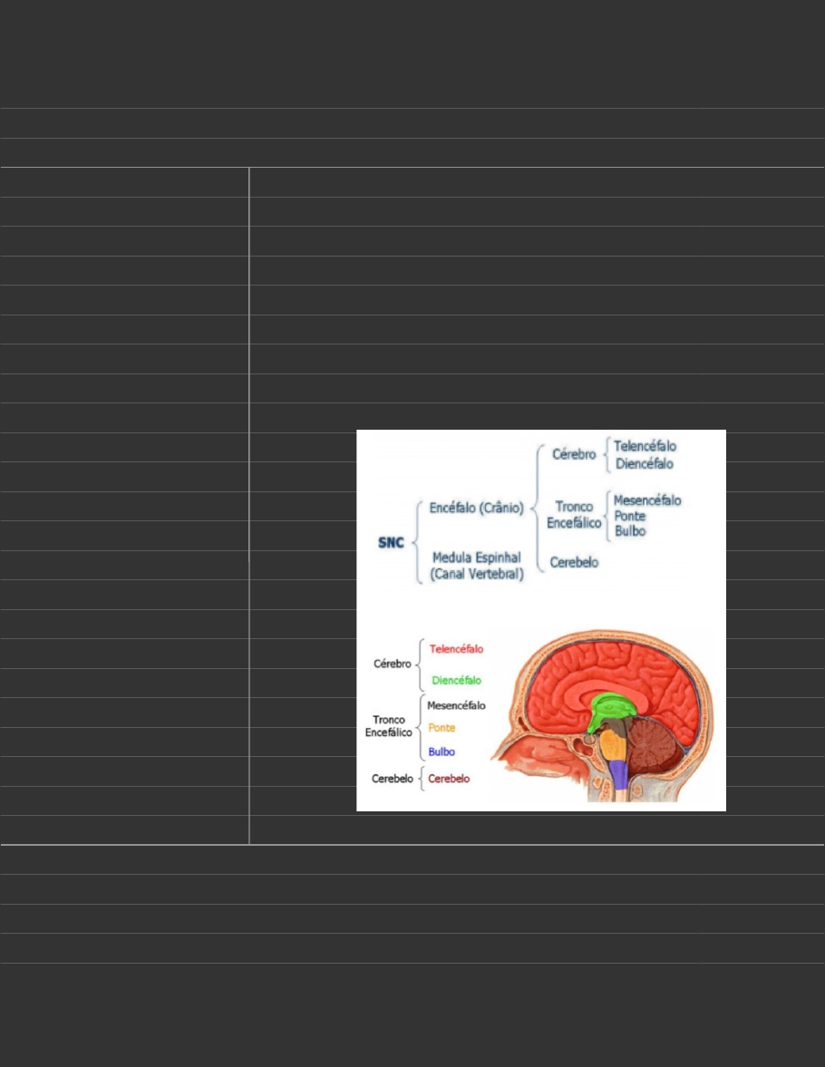 Neuroanatomia @mikaelesantana @mikaelesantana itlenáfaloÚmidos pelocorpocaloso 02 hemisférios cerebrais + lâmina terminal do # ventrículo O Os hemisférios laterais possuem cavidades • Ventrículos laterais DIE ↓ Se comunicam com o IIV pelo O Cada hemisfério possui 3 polos e 3 faces frontal µ ↳ face dorsolateral ( convexa) i Occipital← ↳ face medial ( plana) ; temporal← ↳ face inferior (base do cérebro) i O Depressões do sulcos cerebrais os determinam os giros cerebrais A existencia dos sulcos per- & ↳ Sulco lateral : começa na base do cérebro , separando o lobo frontal dos lobos tem-mite aumento de superficie pond e parietal . Quando chega na face dorsolateral ,divide - se em 3 """ " """" " """ / [ "" " ÷÷÷÷÷÷÷÷""""""lobo frontal . terminando no lobo parietal .Cerebral . Ao Sulco CentralSepara lobo frontal e parietal . Inicia- se na face mediale vai adiante e para baixo em direção ao ramo posterior dosulcocentral . É ladeado por 2 giros paralelos : gin o pré - central(motricidade) Gino pós - central (sensibilidade ) Do Sulco Parido -occipital Separa os lobos parietal e occipital . OBS. : Os sulcos ajudam a delimitar os lobos cerebrais; ↳ divisão não funcional ( exceção : lobo occipital - visão ) @mikaelesantana Lobos Cerebrais = dorsolateral ↓NO Frontal :. está localizado acima do sulco lateral e adiante do sulco central . ↓NOOccipital : . na face medial do cérebro , um limite anterior é o sulco parido -occipital - na face sápeno - lateral , este limite é situado em uma linha imaginária que une a terminação do sulco pornieto - occipital , na banda superior do hemisfério ,à incisura pré - occipital , situada na 6H únfeno - lateral . ↓NOSParietal e temporal : Do meio desta linha imaginária , parte uma segunda linha imaginária em direção ao ramo posterior do sulco lateral e que , juntamente com esse ramo , limita o lobo temporal do lobo parietal . Face dorsolateral Lobo Frontal Lobo Temporal @mikaelesantana f. ± paralelo ao sulco central A. inicia- se na porção superior do sulco pré- central e dirige- se anteriormente no lobo frontal . Ta partindo da porção inferior do sulco pré- central ,dirige-se p/ frente e p/ baixo . E. Entre os sulcos central e pré- central . Nele se localiza a área motona principal do cérebro ( córtex motor) . Ir Acima do sulco frontal superior . to Entre o sulco frontal superior e inferior . Tio Abaixo do sulco frontal inferior . O esquerdo é o centro cortical da palavra falada . MAE Inicia-se próximo ao polo temporal e dirige-se para trásparalelamenteao cromo posterior do sulco lateral, terminando no lobo parietal. LEI Paralelo ao sulco temporal superior . É geralmente formado por duas ou mais partes descontínuos . B. Entre o sulco lateral e o sulco temporal superior . Nos Entre os sulcos temporal superior e o temporal inferior . A. localiza-se abaixo do sulco temporal inferior um limita com o video O ccípi to -temporal . @mikaelesantana Sulco temporal Í¥TyT• superior bobo TSE tamo Lobo Frontal ( ↳Ginotemponolirfenion Capital Ba sdoot↳ᵈEGaiinfiriorr Lobo Occipital Efeito Ao I Sulco %eentrT-EH-OO-og.me#-d.LFo-E Lobo FrontalÉ Frontal superior afff &H%Ê gufeoGO.iq#ajEiTEoDIFnontMV4 superiormédio Ypf ! não e. " versaoFrontal Sulco Frontal Superior inferior .-1%4 Frontal inferiorLobo Frontal Lobo occipital Lobo Parietal @mikaelesantana Diferentemente dos outros lobos, o lobo parietal apresenta um giro e dois lóbulos Gino 1-num venoso posterior Giro transverso anterior Wennicke Córtex Auditivo primário córtex auditivo secundário dá& Mas Posteriormente ao giro pós - central Paralelo ao sulco central ↳ Perpendicular ao sulco pós - central e estende-se paratrás para terminar no lobo occipital . v. Entre o sulco central e o outro pai- central . Nik selocalizaa área somostísica . b. Superiormente ao sulco intra -parietal Nos Inferiormente ao sulco intnopanietol . Contém 2 giros : Gino supramarginal , curvando emtorno daextremidadedo ramo posterior do video lateral , e o giro angular, curvando em torno da porção terminal e ascendente do sulco temporal superior . @mikaelesantana Lobo OOOpós - central ÊÀnʰᵈ Frontal • ¥00Parietal Inferior • EeeeParietal Superior aaaa ADERItntrapouital Lobo occipital bobo occipital Toa Giro Angular Lobo Frontal V. Ecoariam bobo occipital loiro V. Supramarginof A. Giro Angular Lobo Frontal Lobo Occipital O lobo occipital ocupa uma porção relativamente pequena da face súpero-lateral do cérebro, onde apresenta pequenos sulcos e giros irregulares e inconstantes. Os principais sulcos e giros desse lobo são visualizados na face medial do cérebro. Ínsula O lobo da ínsula é visualizado afastando-se os lábios do sulco lateral. A ínsula tem forma cônica. @mikaelesantana fatoParte do sulco circular , na porção superior daínsula, e dirige- se no sentido anteno - inferior . Divide aínsula em 2 partes : giros longos e finos curtos . V. circunda a Úrsula na borda superior . v. posteriormente ao sulco central da ínsula se anteriormente ao sulco central da ínsula Face Medial@mikaelesantana Corpo Caloso U m a l â m i n a b r a n c a a r q u e a d a dorsalmente, o tronco do corpo caloso, que se dilata posteriormente no esplênio do corpo caloso e se flete anteriormente em direção da base do cérebro para constituir o joelho do corpo caloso. Este se afina para formar o rostro do corpo caloso, que se continua em uma fina lâmina, a lâmina rostral até a comissura anterior. Entre a comissura anterior e o quiasma óptico encontra-se a lâmina terminal, delgada lâmina de substância branca que também une os hemisférios e constitui o limite anterior do III ventrículo. Hoo une áreas simétricos do córtex cerebral de cada hemúfenio . Fórnix @mikaelesantana emergindo abaixo do esplênio do corpo caloso e arqueando-se em direção à comissura anterior, está o fórnix, feixe complexo de fibras. É constituído por duas 