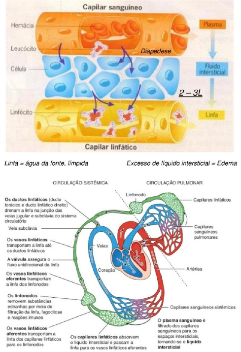 UCV: Mecanismos de Agressão e Defesa Anatomia: Sistema linfático: É o conjunto de vasos linfáticos que realizam a drenagem do líquido intersticial (linfa) e o transportam para o sangue, suas principais funções são drenar o excesso de líquido intersticial, transportar os lipídios e executar as respostas imunes, além de auxiliar a drenagem do sistema nervoso, devolver os líquidos provenientes do interstício para o sangue por estar intimamente ligado à circulação de sangue. Apresenta órgãos acessórios que participam de respostas imunológicas e faz o transporte de lipídios Divisão: temos a linfa; os vasos que são separados em capilares linfáticos, vasos linfáticos, de troncos linfáticos, ductos linfáticos torácicos e ductos linfáticos direito; os órgãos linfáticos primários que são medula óssea e Timo; e os órgãos linfáticos secundários que são baço, linfonodos e tonsilas Linfa: é o líquido Claro e incolor que circula nos vasos linfáticos. possui composição semelhante ao plasma, exceto pela baixa concentração de proteínas e grande quantidade de linfócitos. Ele é o plasma que passou por diapedese do capilar sanguíneo para o espaço intersticial, então esse líquido é reabsorvido para evitar edema. A linfa circula vagarosamente (3 l por dia) até entrar no sistema cardiovascular, não possui bomba para esse movimento e o fluxo aumenta em resposta à massagem manual (movimentação passiva ou drenagem linfática manual) e até pela pulsação das artérias adjacentes. Capilares linfáticos: são os menores vasos condutores da limpa, eles apresentam um fundo cego e transparência com paredes formadas por uma fina camada de endotélio (não apresenta membrana basal) e servem para recolher a limpa diretamente dos tecidos. Os capilares linfáticos são paralelos aos sanguíneos e existe uma ponte que interliga os dois para que ele volte a circulação. Os capilares linfáticos são de fundo cego ao contrário do sanguíneo que tem a parte venosa e arterial, então esses fundos se aproximam do sanguíneo e o líquido passa por aproximação. Não se encontram no SNC, cartilagem articular, músculos (estão nas fáscias), unhas e pelos. Vasos linfáticos: inicia o espaço intersticial, drenando partido produtor e um do da atividade celular e estruturas vasculares denominadas capilares linfáticos que formam uma extensa rede entre os capilares arteriais e venosos se anastomosando e tornando-se cada vez mais calibrados. São formados pela união dos capilares e quase sempre acompanham os vasos sanguíneos. Nada diferem dos outros vasos linfáticos exceto durante a digestão por transportar líquido branco leitoso (quilo), assim transportam lipídios absorvidos no trato digestório e são denominados de vasos quilíferos ou lácteos no intestino. Existem suscetíveis válvulas para impulsionar a linfa e para que ela não retorne. Eles desenvolvam e linfonodos que se agrupam na nuca e pescoço, nós axilas e virilhas, nos hilos pulmonares ir ao longo dos vasos ilíacos, da horta e da veia cava inferior. não há vasos linfáticos em cartilagens, poços e no sistema de envio central. A linfa é um líquido transparente discretamente amarelo que chega na cava superior pelo ângulo venoso, localizado na junção da jugular e da subclávia, do lado direito temos o ducto linfático direito (menor ->direita da cabeça, pescoço, tórax, MS e parte superior do abdômen) e no esquerdo o ducto torácico (maior -> todo o resto). Eles iniciam na região de L1-L2 na cisterna do quilo, local que possui um dilatação sacular e recebe os troncos lombares e intestinais. sua função é remoção de proteínas do líquido intersticial, remoção e destruição de bactérias, formação de anticorpos, absorção de nutrientes provenientes do intestino e retorno do líquido intersticial para a corrente sanguínea Transporte da linfa: feita pela musculatura lisa dos vasos e adjacente (fibras espiraladas), pulsação arterial, diferença de pressões torácicas e abdominais, força da gravidade e válvulas (fluxo unidirecional). depende da pressão do líquido intersticial (aumento da pressão incrementa absorção de líquidos pelos linfáticos), das válvulas e fibras miopiteliais dos capilares, das bombas linfáticas (se contraem conforme o volume da linfa no interior), das contrações musculares e da movimentação do corpo. Órgãos primários: produzem e maturam os linfócitos (tornar imunocompetentes), ou seja, formação, diferenciação e comprometimento das células imunes. Medula óssea produz Linfócitos B e T e matura os B enquanto os T migram. O Timo não produz só matura o linfócito T • Medula óssea vermelha: diferenciação e comprometimento dos linfócitos B • Timo: localizado acima do coração ele é mais ativo nas crianças, então nos adultos ele é transformado em gordura. Ele tem 2 lobos e a tonalidade inicia avermelhada e depois se torna mais amarelado. É uma glândula que produz timosina e timopoetina para maturar o linfócito. Faça diferenciação e comprometimento dos Linfócitos T. Órgãos secundários: local de filtração da linfa e defesa imunológica (proliferação de células de defesa), ou seja, são colonizados por linfócitos e fazem a apresentação de antígenos para a multiplicação dos mesmos e a formação de anticorpos • Baço: está no intermédio da circulação sanguínea então ele destrói patógenos e reciclar hemácias (hemocaterese) pois é um filtrador de sangue. É formado por uma polpa esplênica e recoberto por uma cápsula muito fina (gelatinoso), ele tem circulação aberta, por conta de sua função. Ele é irrigado por artérias calibrosas (tronco celíaco – artéria esplênica – passa muito sangue) e depois volta pelas veias (veia esplênica – sistema porta). • Linfonodos: pequenas massas de tecido linfático limitadas por cápsula fibrosa dispostas ao longo dos vasos linfáticos, que separ
