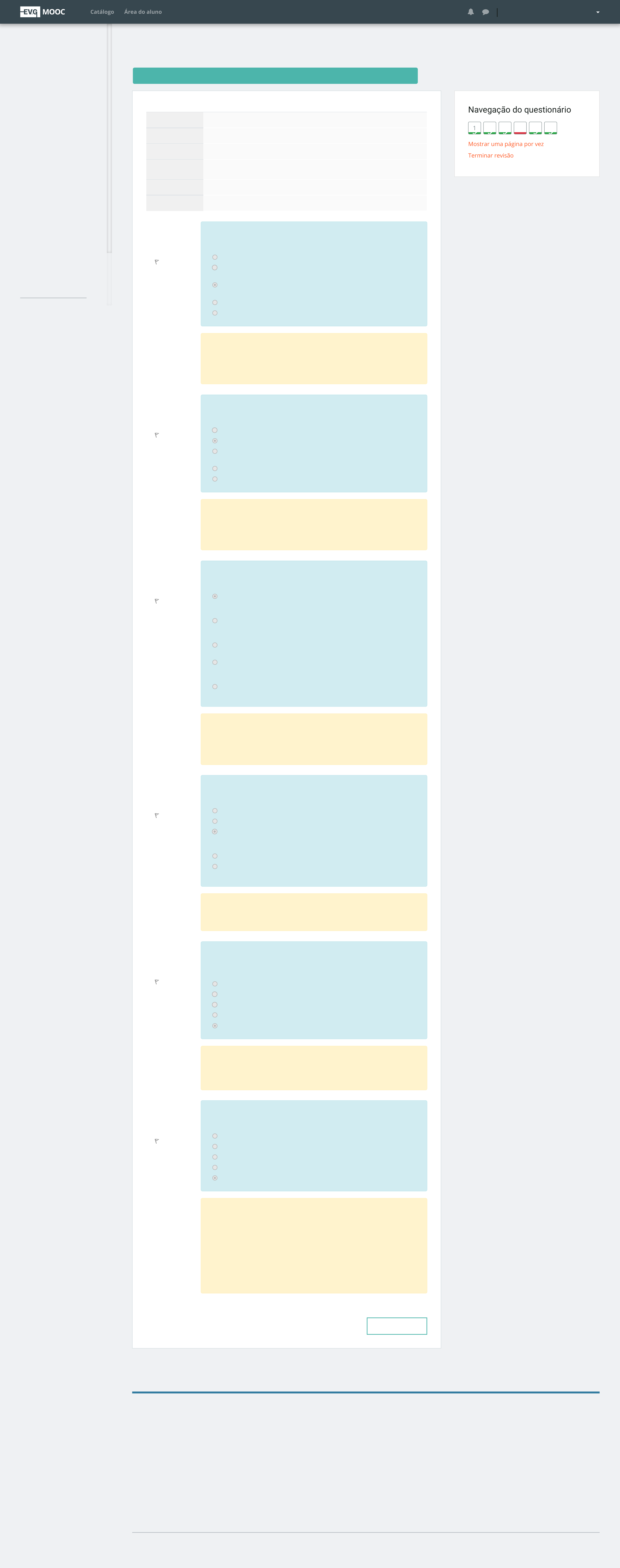 EV.G | Escola Virtual.Gov MOOC Seguindo as tendências educacionais mais recentes, a Escola Virtual.Gov oferece uma plataforma MOOC que sustenta a oferta de cursos de curta e média duração, abertos e gratuitos, como alternativa de formação mais aderente ao desenvolvimento rápido de competências para o trabalho. SOBRE A ESCOLA Catálogo de Cursos Catálogo de Programas Conheça a Escola Adesão Institucional Instituições Participantes Política de Privacidade UTILIDADES Validação de Documentos Perguntas Frequentes e Fale Conosco Catálogo Área do aluno Organizado por Escola Nacional de Administração Pública – Enap Painel / Meus cursos / Políticas Públicas de Educação / Exercício avaliativo - Módulo 1 Políticas Públicas de Educação Questão 1 Correto Atingiu 1,00 de 1,00 Marcar questão Questão 2 Correto Atingiu 1,00 de 1,00 Marcar questão Questão 3 Correto Atingiu 1,00 de 1,00 Marcar questão Questão 4 Incorreto Atingiu 0,00 de 1,00 Marcar questão Questão 5 Correto Atingiu 1,00 de 1,00 Marcar questão Questão 6 Correto Atingiu 1,00 de 1,00 Marcar questão Terminar revisão Iniciado em segunda, 3 out 2022, 19:42 Estado Finalizada Concluída em segunda, 3 out 2022, 19:56 Tempo empregado 14 minutos 21 segundos Notas 5,00/6,00 Avaliar 33,33 de um máximo de 40,00(83%) Qual é a importância do regime de colaboração no âmbito da educação? Escolha uma opção: a. Garantir que cada ente federado atue dentro de sua respectiva esfera. b. Permitir que os municípios solicitem recursos para investir em educação. c. Assegurar a união de esforços entre estados, municípios e União na oferta de uma educação básica de qualidade. d. O regime de colaboração no âmbito da educação não é importante. e. Nenhuma das alternativas. Sua resposta está correta. A resposta é a letra C. O regime de colaboração é o elemento central da organização da educação básica no Brasil. Ele representa a união de esforços entre todos os entes governamentais, em prol da melhoria da qualidade da educação básica. Como podem ser aplicados os recursos destinados à educação? Escolha uma opção: a. A critério do gestor, em quaisquer ações de necessidade do município. b. Em ações de manutenção e desenvolvimento do ensino. c. Os recursos destinados à educação podem ser aplicados em educação e em outras ações correlatas, como as ações de assistência social. d. Na melhoria das escolas e das universidades locais. e. Apenas para remuneração dos professores. Sua resposta está correta. A resposta é a letra B. Os recursos vinculados à educação só podem ser destinados às ações de manutenção e desenvolvimento do ensino. Elas se configuram como as ações necessárias à consecução dos objetivos básicos das instituições educacionais. Quais são os principais objetivos do Fundeb? Escolha uma opção: a. Assegurar a manutenção e o desenvolvimento da educação básica e a valorização dos profissionais da educação no âmbito dos estados, Distrito Federal e municípios. b. Garantir o financiamento dos programas do FNDE e a valorização dos profissionais da educação no âmbito dos estados, Distrito Federal e municípios. c. Financiar a construção de escolas e universidades e assegurar a manutenção e o desenvolvimento da educação básica. d. Viabilizar o repasse de recursos para a construção de ginásios de esporte e bibliotecas municipais, ainda que não pertencentes aos sistemas de ensino. e. Garantir o financiamento dos programas do FNDE e a construção de escolas e universidades. Sua resposta está correta. A resposta é a letra A. Os dois objetivos principais do Fundeb são garantir o financiamento necessário para a manutenção e o desenvolvimento da educação básica em todos os entes governamentais e assegurar a condigna remuneração dos profissionais da educação. O Salário-Educação é: Escolha uma opção: a. Um imposto federal. b. Uma taxa a ser paga por todos os estudantes. c. Os recursos destinados à educação, que podem ser aplicados em educação e em outras ações correlatas, como as ações de assistência social. d. Uma fonte suplementar de financiamento da educação básica. e. Um programa de bolsas para alunos em condição de vulnerabilidade social. Sua resposta está incorreta. A resposta é a letra D. O Salário-Educação é uma contribuição social que exerce o papel de fonte suplementar de financiamento da educação básica. Quais são as matrículas que podem ser consideradas para distribuição dos recursos do PNATE? Escolha uma opção: a. Apenas as matrículas da educação infantil. b. Apenas as matrículas do ensino fundamental. c. Apenas as matrículas do ensino médio. d. As matrículas da educação básica urbana. e. As matrículas da educação básica de alunos das áreas rurais. Sua resposta está correta. A resposta é a letra E. O PNATE é um programa por meio do qual são repassados recursos a todos os alunos da educação básica pública residentes em áreas rurais. Os recursos do Programa Dinheiro Direto na Escola são repassados: Escolha uma opção: a. Apenas aos estados. b. Apenas para os municípios. c. Aos alunos cadastrados no CAD Único. d. Às Secretarias Estaduais e Municipais de Educação. e. Diretamente às escolas que fazem adesão ao programa. Sua resposta está correta. A resposta é a letra E. A transferência dos recursos do PDDE é automática e ocorre, de acordo com a Resolução nº 6, de 27 de fevereiro de 2018, em duas parcelas anuais, creditadas diretamente às Unidades Executoras Próprias (UEx), Entidades Executoras (EX) e Entidades Mantenedoras (EM) que cumprirem as exigências de atualização cadastral até a data de efetivação dos pagamentos. Os valores são depositados pelo FNDE em uma conta corrente aberta para cada escola exclusivamente para essa finalidade e o cálculo para repasse tem como base o número de alunos computados no Censo Esc