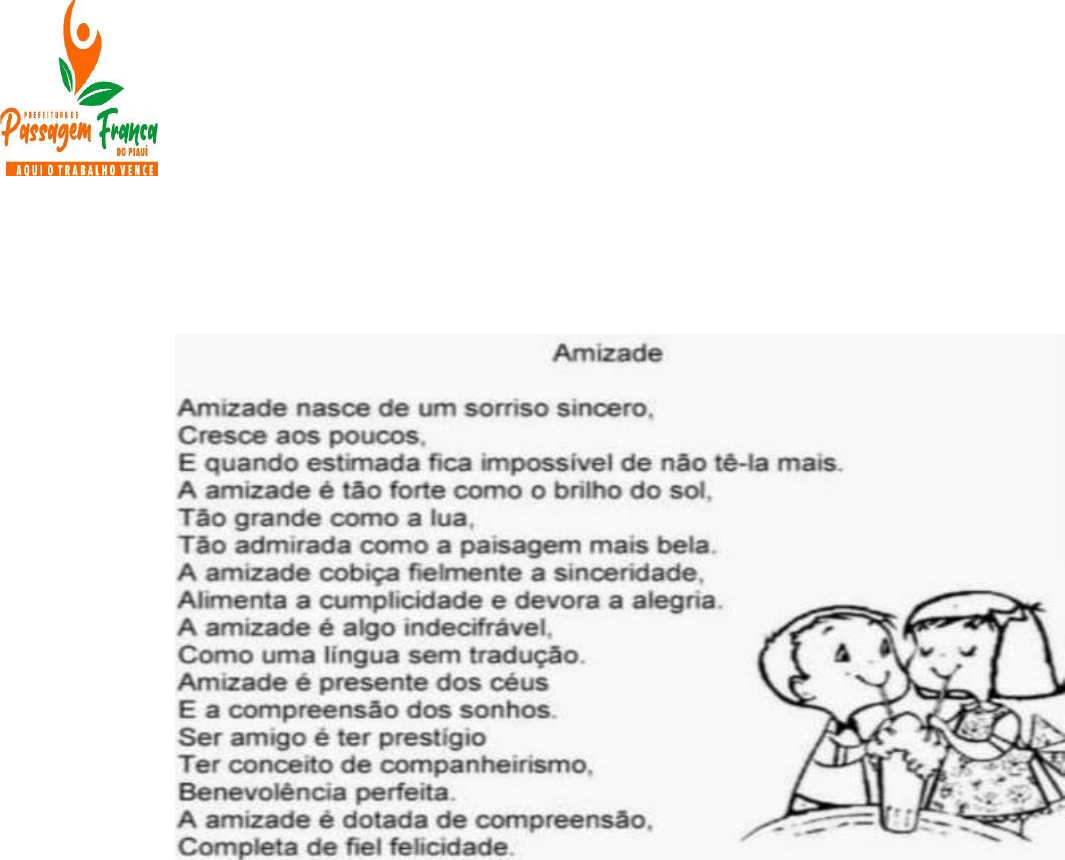ESCOLA MUNICIPAL ABDIAS FRANCISCO DOS SANTOS PASSAGEM FRANCA DO PIAUÍ __/__/2022 ENSINO FUNDAMENTAL II SÉRIE:8° ANO C COMPONENTE CURRICULAR: ENSINO RELIGIOSO PROFESSOR (A): MARIA ANTONIA TURNO: TARDE ALUNO (A): _____________________________________________ 6° AVALIAÇÃO DE ENSINO RELIGIOSO >Leia o texto e responda. 1. Qual o assunto principal do texto? ( ) Ter um sorriso sincero ( ) Como nasce a amizade ( ) Ser fiel ( ) Ser compreensivo 2. Complete de acordo com o texto acima. A) A ________________________ é tão forte como o brilho do sol. B) Tão grande como a _______________________________. C) A amizade é __________________________ de _______________. 3. Marque a alternativa correta segundo o texto. ( ) Não gosto de fazer amizade. ( ) Amizade é dotada de compreensão ( ) N.D.A 4. O que a amizade cobiça? _________________________________________________________ 5. Defina “amizade” de acordo com o texto acima. __________________________________________________________ __________________________________________________________ 6. Para demonstrar seu amor, o que Jacó deu de presente para José? __________________________________________________________ 7. Qual era a intenção dos irmãos de José para com ele? __________________________________________________________ __________________________________________________________ 8. O que os irmãos de José fizeram com ele? __________________________________________________________ __________________________________________________________ 9. Escreva o nome do pai de José. __________________________________________________________ 10. Porque os irmãos de José foram para o Egito?