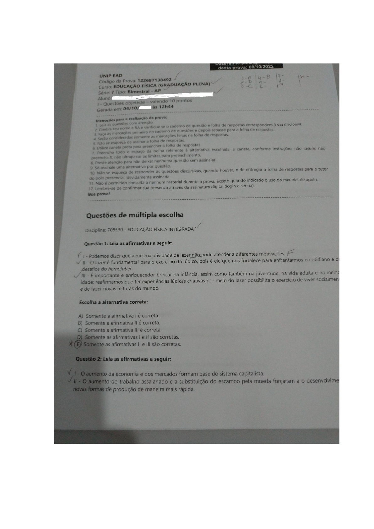 Prova Educação Física Integrada