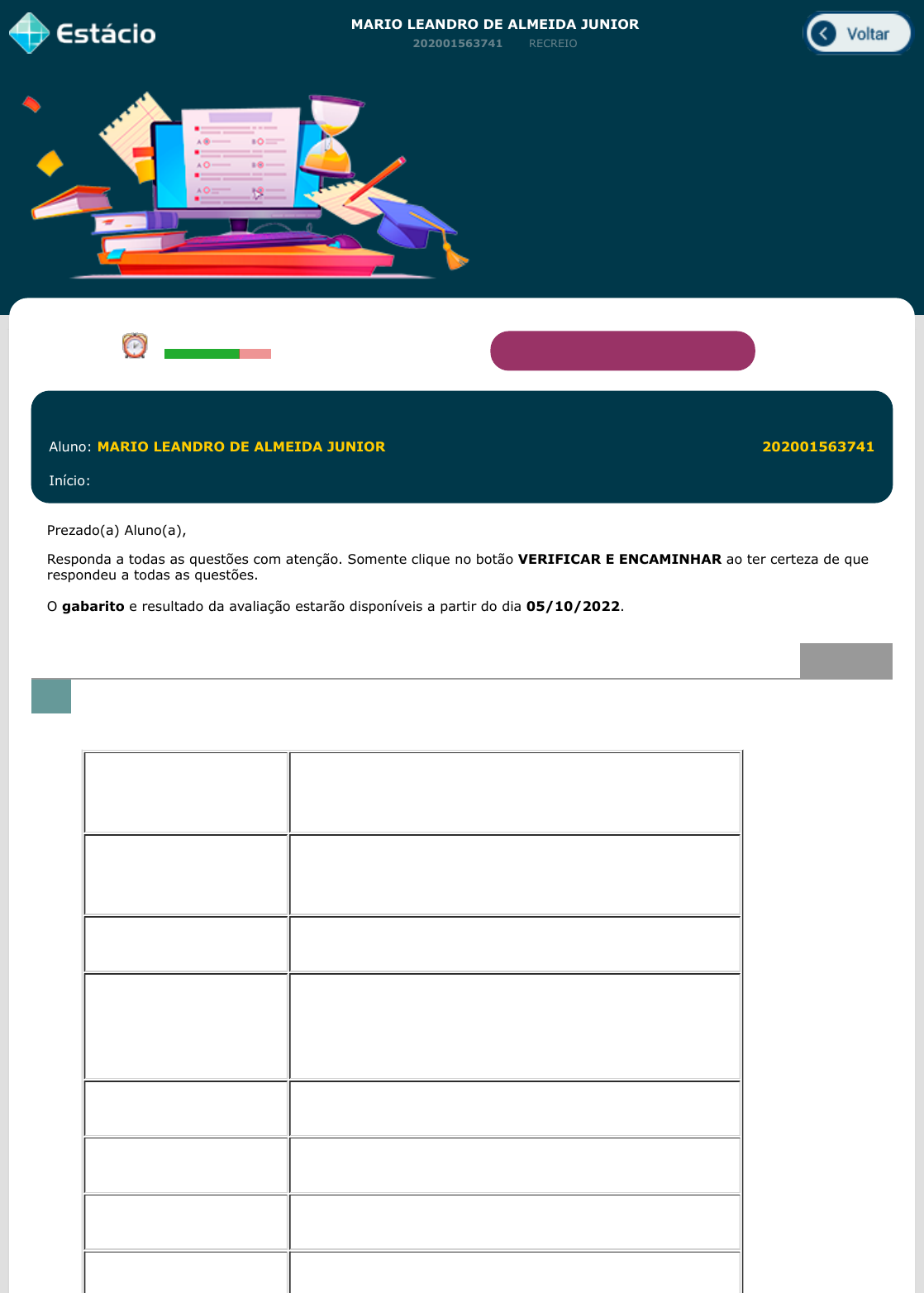 MARIO LEANDRO DE ALMEIDA JUNIOR Sua AV1Sua AV1 aqui!aqui! 202001563741 RECREIO avalie seus conhecimentosavalie seus conhecimentos 1 ponto Os pilares e valores do Scrum devem nortear os membros da equipe sobre como as atividades do projeto devem ser conduzidas. Avalie a relação entre os princípios e valores do Scrum com suas respectivas definições e assinale a sequencia correta da segunda coluna: (A) Transparência ( ) Os membros da equipe de desenvolvimento devem estar dispostos a cumprir metas realistas. (B) Adaptação ( ) Os membros da equipe de desenvolvimento devem ter coragem para fazer a coisa certa. (C) Inspeção ( ) Transparência dos processos,requisitos de entrega e status. (D) Coragem ( ) O empirismo do Scrum requer transparência e abertura em relação a todo o trabalho e desafios com a execução dos trabalhos. (E) Foco ( ) Inspeção constante de tudo o queestá sendo feito. (F) Comprometimento ( ) Todas as ações devem zelar pelo respeito um pelo outro. (G) Respeito ( ) Adaptação, tanto do processo,quanto do produto às mudanças. ( ) Todos devem estar concentrados nos Faltam 140 min. VERIFICAR E ENCAMINHAR ARA0152 - MÉTD ÁGEIS COM S 2022.2 (G) Aluno: MARIO LEANDRO DE ALMEIDA JUNIOR 202001563741 Início: Prezado(a) Aluno(a), Responda a todas as questões com atenção. Somente clique no botão VERIFICAR E ENCAMINHAR ao ter certeza de que respondeu a todas as questões. O gabarito e resultado da avaliação estarão disponíveis a partir do dia 05/10/2022. 1. javascript:voltar(); https://simulado.estacio.br/provas_pni_em_casa_linear.asp# Mario Almeida Jr Mario Almeida Jr Mario Almeida Jr (H) Abertura objetivos da equipe. (Ref.: 202007730668) 1 ponto Uma analista foi contratada para participar de um projeto de desenvolvimento de uma aplicação utilizando Scrum, o qual a primeira atividade foi a de avaliar a lista de requisitos presentes no Backlog do Produto, ou Product Backlog (PB). Este artefato está sendo utilizado pela equipe como um direcionador dos itens que devem ser priorizados e desenvolvidos. O responsável pela gestão do Backlog do Produto, que pode auxiliar no esclarecimento de dúvidas desta analista em relação aos requisitos é o: (Ref.: 202007730747) 1 ponto Jorge é o Scrum Master de um projeto bastante complexo, que utiliza a metodologia ágil Scrum. Ele estudou este framework e obteve uma certificação, dando-lhe segurança para conduzir o time de desenvolvimento, porém, está tendo que assumir muitas tarefas. Analise as afirmativas abaixo em relação as tarefas que devem ser realizadas pelo Scrum Master: (I) Capacitar os membros envolvidos no projeto a respeito do framework Scrum. (II) Auxiliar na implementação da cultura ágil na organização, buscando sempre a geração de benefícios. (III) Remover os impedimentos do time de desenvolvimento. As afirmativas que estão corretas em relação as atividades do Scrum Master são: (Ref.: 202007730748) 1 ponto O projeto que adota a metodologia ágil com Scrum divide a implementação das funcionalidades em ciclos de tempo fixo, o qual contempla um conjunto de entregáveis cada. Este ciclo é conhecido como: F - D - A - H - G - C - B - E F - D - H - A - C - G - B - E F - D - A - H - C - G - B - E E - D - H - A - C - G - B - F E - D - A - H - C - G - B - F 2. Product Owner Testador Cliente Scrum Master Desenvolvedor 3. Todas as afirmativas. Somente as afirmativas I e II. Somente as afirmativas I e III, Somente a afirmativa I. Somente a afirmativa II. 4. (Ref.: 202007730750) 1 ponto O time Scrum é responsável por escolher as funcionalidades a serem desenvolvidas em cada interação e desenvolvê-las. Esta é uma característica ágil conhecida como: (Ref.: 202007734560) 1 ponto Com base no manifesto ágil utilizado pelas metodologias ágeis, qual dos itens abaixo não faz parte no que tange a importância/prioridade? (Ref.: 202007730761) 1 ponto Em relação ao Framework Scrum, avalie as afirmativas a seguir com (V) para Verdadeiro e (F) para Falso e assinale a alternativa correta: ( ) Idealmente, as reuniões diárias devem ter pelo menos 1 hora de duração. ( ) As reuniões diárias também são conhecidas como Stand-up Meetings. ( ) O Sprint Backlog contempla itens de Backlog que serão realizadas em uma Sprint. ( ) De acordo com a necessidade, uma Sprint pode ter uma duração menor que a anterior, a fim de atender a entrega com maior agilidade. (Ref.: 202007730918) Sprint Quadro Kanban Reunião Diária Product Owner Product Backlog 5. Adaptabilidade. Auto-organização. Excelência. Simplicidade. Comunicação. 6. Negociação de contratos. Software funcional Colaboração com o cliente Indivíduos e interações Adaptação às mudanças 7. V - V - V - F V - F - F - V F - V - V - V V - F - V - F F - V - V - F 1 ponto "Os modelos mais tradicionais são compostos por processos longos e com objetivos definidos, porém, sem muitos detalhes sobre os caminhos recomendados para atingi-los. As metodologias ágeis contam com uma proposta de processos mais curtos, com entregas em menor espaço de tempo, focando principalmente na melhoria e no alinhamento da equipe." (EGOV, 2021) EGOV. Metodologias Ágeis/Scrum/Lean. Disponível em: . Acesso em: 21/04/2022. Qual dos itens abaixo representa uma característica da agilidade (métodos ágeis)? (Ref.: 202007730933) 1 ponto A metodologia tradicional de projetos, ou cascata, se caracteriza por apresentar etapas em que uma fase só pode ser iniciada quando finalizada a anterior. A metodologia ágil se diferencia neste sentido da tradicional por: (Ref.: 202007734556) 1 ponto As metodologias ágeis apresentam valores e princípios que foram concebidos a partir do manifesto ágil, criado por um grupo de especialistas de desenvolvimento de software. Estes valores e princípios devem direcionar os projetos ágeis, independente do framework a ser utilizado. Em relação as metodologias ágeis, analise as afirmativas a seguir e assinale a alternativa que a