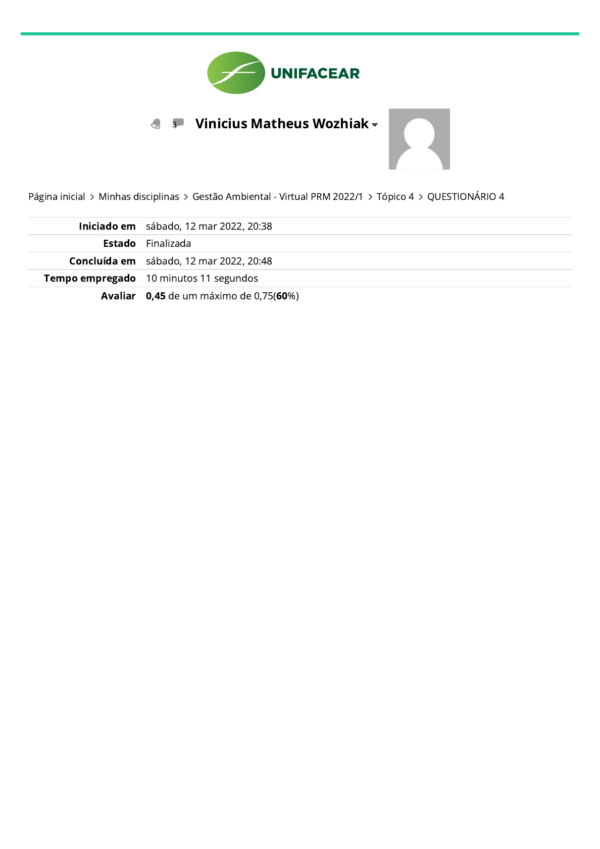 Iniciado em sábado, 12 mar 2022, 20:38 Estado Finalizada Concluída em sábado, 12 mar 2022, 20:48 Tempo empregado 10 minutos 11 segundos Avaliar 0,45 de um máximo de 0,75(60%) 3 Vinicius Matheus Wozhiak Página inicial Minhas disciplinas Gestão Ambiental - Virtual PRM 2022/1 Tópico 4 QUESTIONÁRIO 4 http://ava.unifacear.edu.br/ http://ava.unifacear.edu.br/user/view.php?id=10662&course=94051 javascript:void(0) http://ava.unifacear.edu.br/ http://ava.unifacear.edu.br/course/view.php?id=94051 http://ava.unifacear.edu.br/course/view.php?id=94051§ion=4 http://ava.unifacear.edu.br/mod/quiz/view.php?id=665181 Questão 1 Correto Atingiu 0,15 de 0,15 Uma empresa pretende instalar um armazém de depósito de sucatas e materiais metálicos em determinado município. Para isso a empresa dá início ao Estudo de Impacto Ambiental. No decorrer desde estudo veri�cou-se que o empreendimento iria atingir uma área verde de uma comunidade, e 80 moradores solicitaram à autoridade competente a realização, no âmbito do EIA, de uma audiência pública. Baseado nesta situação: Escolha uma opção: a. A audiência pública não é necessária, uma vez que apenas deve ser instalada quando houver solicitação do Ministério Público. b. A audiência pública não é necessária, uma vez que apenas deve ser instalada quando houver solicitação de associação civil legalmente constituída há pelo menos 1 (um) ano. c. A audiência pública é necessária, salvo quando celebrado Termo de Ajustamento de Conduta com o Ministério Público. d. A audiência pública é necessária, sendo que compete a comunidade organizar a audiência de forma que a empresa possa apresentar o estudo. e. A audiência pública é necessária, e, caso não realizada, a eventual licença ambiental concedida não terá validade. Sua resposta está correta. A resposta correta é: A audiência pública é necessária, e, caso não realizada, a eventual licença ambiental concedida não terá validade. Questão 2 Correto Atingiu 0,15 de 0,15 Os métodos de avaliação de impacto ambiental servem de referência nos estudos ambientais para se determinar de forma mais precisa a signi�cância de uma alteração ambiental. Também são usados para padronizar e facilitar a abordagem do meio físico, que em geral leva em consideração vários aspectos. Em um Estudo de Impacto Ambiental (EIA), deve-se tomar cuidado pois, a maioria dos métodos apresentam caráter subjetivo na abordagem do meio físico. Portanto, devem ser utilizados critérios bem de�nidos para a escolha do método a ser usado, ou seja, cada método tem uma aplicação de�nida, sendo utilizado conforme o caso. Nestes termos é correto a�rmar que: Escolha uma opção: a. método superposição de cartas oferece resultados subjetivos, não quanti�ca magnitude, difícil integração de dados sócio-econômicos e não considera dinâmica dos sistemas. b. O método matrizes de interação identi�ca impactos indiretos, características temporais e dinâmica dos sistemas e magnitude sem subjetividade. c. O método Ad hoc possui baixo grau de subjetividade. d. O método de redes de interação detecta a importância relativa dos impactos, aspectos temporais e espaciais e dinâmica dos sistemas. e. O método checklist identi�ca impactos diretos e indiretos, características temporais e dinâmica dos sistemas. Sua resposta está correta. A resposta correta é: método superposição de cartas oferece resultados subjetivos, não quanti�ca magnitude, difícil integração de dados sócio-econômicos e não considera dinâmica dos sistemas. Questão 3 Incorreto Atingiu 0,00 de 0,15 A respeito do relatório de impacto ambiental (RIMA), julgue os próximos itens. O responsável técnico pelo RIMA deve se abster de emitir opinião, comentários ou recomendações quanto à alternativa mais favorável diante das conclusões do estudo de impacto ambiental. Os efeitos esperados da adoção de medidas que possam minimizar eventuais impactos negativos do empreendimento deverão estar descritos no RIMA. A previsão da qualidade ambiental futura da área de in�uência do empreendimento deverá estar caracterizada no RIMA, comparando-se a hipótese de não realização do empreendimento com diferentes soluções de projeto. O EIA/RIMA é realizado de acordo com o Termo de Referência, expedido pelo responsável do empreendimento. Assinale a alternativa que apresenta a sequência correta: Escolha uma opção: a. V,V,V,V. b. V,V,V,F. c. F,V,F,F. d. F,F,V.F. e. F,V,V,F. Sua resposta está incorreta. A resposta correta é: F,V,V,F. Questão 4 Correto Atingiu 0,15 de 0,15 Os métodos de avaliação de impacto ambiental servem de referência nos estudos ambientais para se determinar de forma mais precisa a signi�cância de uma alteração ambiental. Também são usados para padronizar e facilitar a abordagem do meio físico, que em geral leva em consideração vários aspectos. I) O método Matrizes de Interações consiste em uma análise bidimensional organizada em um quadro onde são listados horizontalmente e verticalmente os fatores ambientais e as ações de projeto. Métodos basicamente de identi�cação. II) O método das Listagens Consiste em uma análise bidimensional organizada em um quadro onde são listados horizontalmente e verticalmente os fatores ambientais e as ações de projeto. Métodos basicamente de identi�cação. III) O método Rede de Interações busca estabelecer a sequência de impactos ambientais a partir de uma determinada intervenção, utilizando método grá�co. Nesse método, são utilizados diagramas, grá�cos ou �uxogramas, mostrando a cadeia de modi�cações que ocorrem, ou seja, os impactos diretos e indiretos que podem resultar de um empreendimento. Efeitos secundários e terciários. Assinale a alternativa correta: Escolha uma opção: a. II e III, corretas. b. I e III, corretas. c. Somente I correta. d. I e II, corretas. e. I