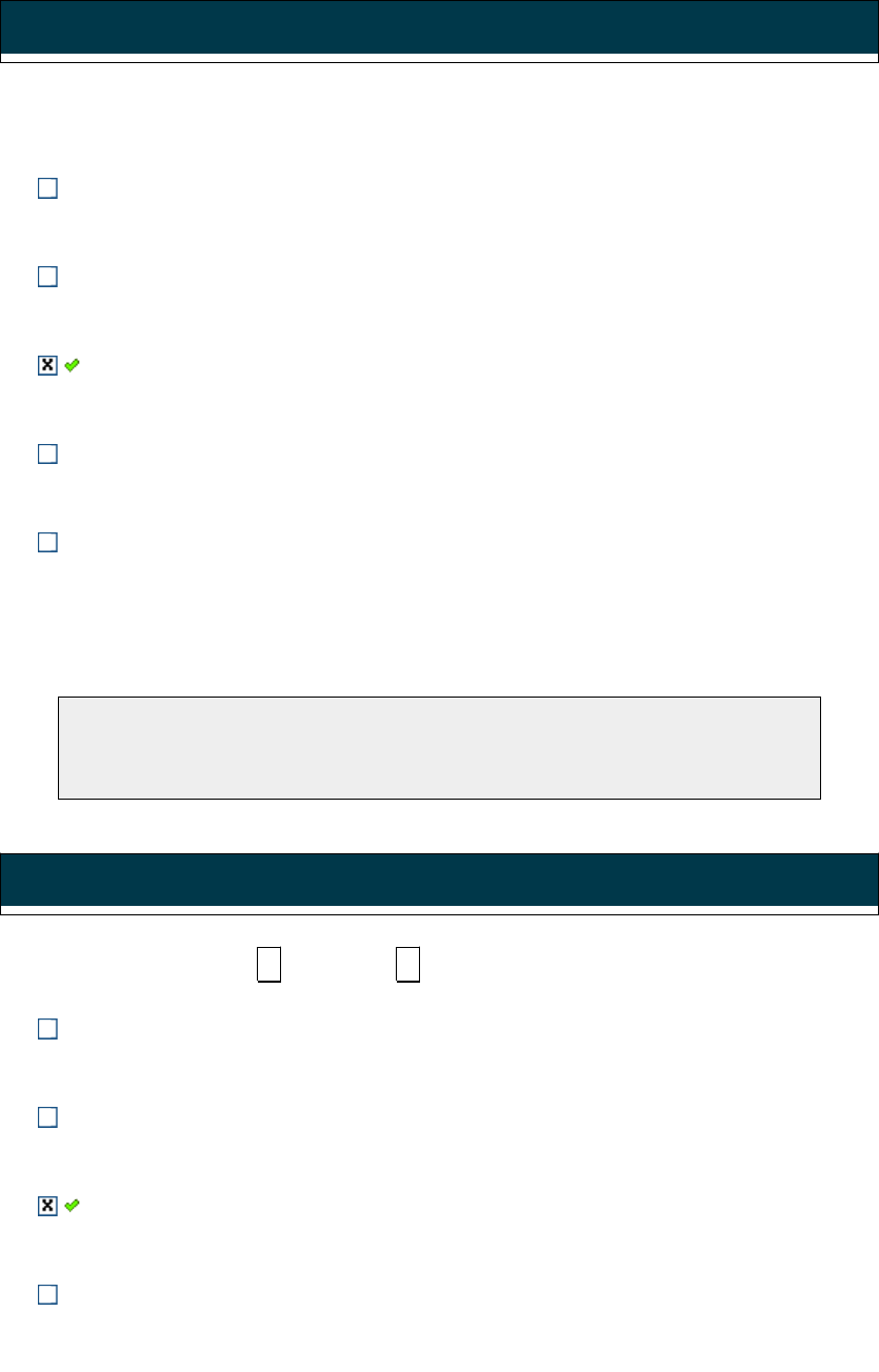 1a Questão Acerto: 1,0 / 1,0 Qual o valor eficaz ou rms de uma corrente alternada senoidal de valor de pico Ip=4AIp=4A? Irms=2AIrms=2A Irms=8AIrms=8A Irms=2,83AIrms=2,83A Irms=4AIrms=4A Irms=5,66AIrms=5,66A Respondido em 07/10/2022 10:55:58 Explicação: Resposta correta: Irms=2,83AIrms=2,83A 2a Questão Acerto: 1,0 / 1,0 Determine o valor de (√2−j)+j(1+j√2)(2−j)+j(1+j2) −2j−2j 2j2j 00 22 2√222 Respondido em 07/10/2022 10:55:30 Explicação: Resposta correta: 00 3a Questão Acerto: 1,0 / 1,0 Dois circuitos RLC, um série e outro paralelo, operam na mesma frequência. Se XL>XCXL>XC, os circuitos são, respectivamente: Indutivo e capacitivo Resistivo e resistive Capacitivo e indutivo Indutivo e indutivo Capacitivo e capacitivo Respondido em 07/10/2022 10:56:18 Explicação: Resposta correta: Indutivo e capacitivo 4a Questão Acerto: 1,0 / 1,0 Em que: Ea=100∠0oEa=100∠0o Eb=100∠−120oEb=100∠−120o Ec=100∠−240oEc=100∠−240o Z=2+j4ΩZ=2+j4Ω A potência ativa, em kW, consumida pelo circuito é, aproximadamente: 1,0 6,7 3,0 1,5 2,2 Respondido em 07/10/2022 11:02:44 Explicação: Resposta correta: 6,7 5a Questão Acerto: 1,0 / 1,0 Para o circuito apresentado na figura abaixo, o valor da impedância vista entre os pontos A e B, em ΩΩ, é aproximadamente: 0,2∠−19,4o0,2∠−19,4o 4,8∠19,4o4,8∠19,4o 0,4∠−19,4o0,4∠−19,4o 9,6∠9,4o9,6∠9,4o 5,8∠23,5o5,8∠23,5o Respondido em 07/10/2022 11:03:13 Explicação: Resposta correta: 4,8∠19,4o4,8∠19,4o 6a Questão Acerto: 1,0 / 1,0 O módulo da corrente de Norton, em A, entre os pontos X1 e X2 é, aproximadamente: 0,82 3,20 1,64 1,03 2,06 Respondido em 07/10/2022 11:03:37 Explicação: Resposta correta: 2,06 7a Questão Acerto: 1,0 / 1,0 Determine o fator de qualidade do filtro da figura abaixo. Q=1√LCQ=1LC Q=1R√LCQ=1RLC Q=RLQ=RL Q=1RCQ=1RC Q=R√CLQ=RCL Respondido em 07/10/2022 10:58:02 Explicação: Resposta correta: Q=R√CLQ=RCL 8a Questão Acerto: 1,0 / 1,0 Considerando Q = 0,1, o circuito da fidura abaixo corresponde a que filtro? Filtro passa-alta Filtro passa-baixa Filtro passa-tudo Filtro rejeita-faixa Filtro passa-faixa Respondido em 07/10/2022 10:58:30 Explicação: Resposta correta: Filtro passa-baixa 9a Questão Acerto: 1,0 / 1,0 Um sinal no domínio tempo é representado pela expressão: y(t)=[(1+2t)e−t+e2t]u(t)y(t)=[(1+2t)e−t+e2t]u(t) Determine o sinal no domínio da frequência complexa: Y(s)=5s−1s3−3s−2Y(s)=5s−1s3−3s−2 Y(s)=5s−1s3−3s+2Y(s)=5s−1s3−3s+2 Y(s)=5s−1s3+3s+2Y(s)=5s−1s3+3s+2 Y(s)=5s+1s3−3s−2Y(s)=5s+1s3−3s−2 Y(s)=5s+1s3+3s+2Y(s)=5s+1s3+3s+2 Respondido em 07/10/2022 11:07:37 Explicação: Resposta correta: Y(s)=5s−1s3−3s−2Y(s)=5s−1s3−3s−2 10a Questão Acerto: 1,0 / 1,0 Um sinal no domínio da frequência complexa é representado pela expressão: Y(s)=−4s+72s2−3s+10Y(s)=−4s+72s2−3s+10 Determine o valor inicial do sinal no domínio do tempo (t=0 s): y(0) = 2 y(0) = 0 y(0) = 0,7 y(0) = -4 y(0) = -2 Respondido em 07/10/2022 11:12:46 Explicação: Resposta correta: y(0) = -2