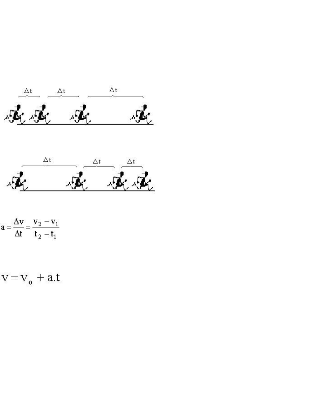 Apostila de física Movimento Uniforme Variado No MUV passa a existir a aceleração constante, isso significa que a velocidade varia de uma forma uniforme. Poderíamos citar como exemplo desse tipo de movimento uma pedra caindo de uma certa altura ou um carro freando ao ver os sinal vermelho. Então, o MUV é aquele em que o móvel sofre variações de velocidades iguais em intervalos de tempo iguais. MOVIMENTO ACELERADO MOVIMENTO RETARDADO No MRUV, como a aceleração é constante, a aceleração média será igual a instantânea, logo: a = am Função da velocidade no MUV é dada por: Função Horária do espaço (s) MUV: Sabendo-se que a aceleração no MUV permanece constante podemos calcular a variação do espaço de um móvel no decorrer do tempo: 2 0 0 . 2 1 . t a t v s s + + = Equação de Torricelli: Se substituirmos a equação V=vo+at na equação S=So+Vot+at2/2, teremos a equação de Torricelli: s a v v D + = . . 2 2 0 2 01- Um anúncio de um certo tipo de automóvel relaciona que o veículo saindo do repouso, atinge a velocidade de 108 km/h em 8 s.Qual a aceleração escalar média? 02 - As faixas de aceleração das auto-estradas devem ser longas o suficiente para permitir que um carro partindo do repouso atinja a velocidade de 100 km/h em uma estrada horizontal. Um carro popular é capaz de acelerar de 0 a 100 km/h em 18 s. Suponha que a aceleração seja constante. a)Qual o valor da aceleração? b) Qual a distância percorrida em 10 s? c) Qual deve ser o comprimento mínimo da faixa de aceleração? 03 - Um carro tem velocidade de 20 m/s quando, a 30 m de distância, um sinal vermelho é observado. Qual deve ser a desaceleração produzida pelos freios para que o carro pare a 5 m do sinal? 04 - Um carro está a 20 m de um sinal de tráfego quando este passa de verde a amarelo. Supondo que o motorista acione o freio imediatamente, aplicando ao carro uma desaceleração de 10 m/s2, calcule, em km/h, a velocidade máxima que o carro pode ter, antes de frear, para que ele pare antes de cruzar o sinal. 05 - A velocidade de um móvel varia com o tempo, de acordo com os dados da tabela seguinte. O sinal da velocidade indica o sentido do movimento, segundo uma orientação da trajetória. t(s) 0 1 2 3 4 5 6 7 8 9 v(m/s) -18 -15 -12 -9 -6 -3 0 3 6 9 a)O movimento é uniforme ou variado? Por quê? b)Qual a velocidade escalar inicial do móvel? c)Classifique o movimento como acelerado ou retardado nos intervalos de tempo de 0s a 4s e de 7s a 9 s. d)Calcule a aceleração escalar média do movimento nos intervalos de tempo de 0s a 3s , de 4s a 7s e de 6s a 9 s. 06 - Um piloto de fórmula 1 está se movendo a 250 km/h quando, ao atingir uma curva, se vê forçado a reduzir a velocidade de seu veículo para 88 km/h, o que faz num intervalo de tempo de 3s . Qual a aceleração escalar média do carro nesse intervalo de tempo, expressa em m/s²? 07- É dada a função v= 12 - 2.t , onde t é medido em segundos e v em metros por segundo. a)Determine a velocidade escalar inicial e a aceleração escalar do movimento b)Comente e justifique se o movimento é acelerado ou retardado nos instantes 2s e 8s. 08 - Calcule a aceleração do movimento em cada um destes gráficos: Funções Queda do Movimento de Queda Livre Funções do Movimento de Livre e lançamento vertical. As funções que regem o lançamento vertical, portanto, são as mesmas do movimento uniformemente variado, revistas com o referencial vertical (h), onde antes era horizontal (S) e com aceleração da gravidade (g). Para o estudo deste movimento é claro que estaremos tratando de um movimento uniformemente variado. Assim, iremos estuda-lo pelas equações do MUV. Substituindo espaço (S) por ( h ) nas funções horárias do MUV: Sendo que g é positivo ou negativo, dependendo da direção do movimento: g=10m/s². Resumo das funções de Queda Livre e Lançamento Vertical: Lançamento Vertical: Queda Livre: * h = ho + a.t² * h = g.t² 2 2 * V = Vo + a.t * V = g.t * V² = Vo² + 2.a . ∆s * V² = 2.g.∆h Exercícios: 14 - Um corpo, nas proximidades da Terra, cai com aceleração constante de 9,8 m/s ² , desprezada a resistência do ar.Supondo que tenha partido do repouso, quais suas velocidades nos instantes 1s,2s,3s,4s e 5s? 15 - Um móvel é atirado verticalmente para cima a partir do solo, com velocidade de 72 km/h. Determine: Adote g = 10m/s2 a) as funções horárias do movimento; b) o tempo de subida; c) a altura máxima atingida; d) em t = 3 s, a altura e o sentido do movimento; e) o instante e a velocidade quando o móvel atinge o solo. 16 - Um corpo é abandonado a 80m do solo. Sendo g = 10m/s² e o corpo estando livre de forças dissipativas, determine o instante e a velocidade que o móvel possui ao atingir o solo. 17 - gato consegue sair ileso de muitas quedas. Suponha que a maior velocidade com a qual ele possa atingir o solo sem se machucar seja de 8 m/s. Então, desprezando a resistência do ar, a altura máxima de queda, para que o gato nada sofra, deve ser: g = 10m/s². 18 - Um ponto material, lançado verticalmente para cima, atinge a altura de 20 m. Qual a velocidade de lançamento? Adote g = 10m/s². 1 2 3 0 10 20 30 V(m/s) t(s) 1 2 3 0 10 20 30 V(m/s) t(s) 1 2 3 0 10 20 30 V(m/s) t(s) 1 2 3 0 10 20 30 V(m/s) t(s) a) a = ............. b) a = ............. c) a = ............. d) a = ............. _2147483647.unknown _2147483646.unknown