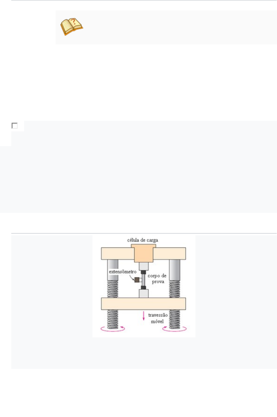 Teste Ensaio de tração Origem: Wikipédia, a enciclopédia livre. Esta página cita fontes, mas estas não cobrem todo o conteúdo. Ajude a inserir referências. Conteúdo não verificável poderá ser removido.—Encontre fontes: Google (notícias, livros e acadêmico) (Junho de 2021) Em um ensaio de tração, um corpo de prova ou provete é submetido a um esforço que tende a alongá-lo ou esticá-lo até à ruptura. Geralmente, o ensaio é realizado num corpo de prova de formas e dimensões padronizadas, para que os resultados obtidos possam ser comparados ou, se necessário, reproduzidos. Este é fixado em uma máquina universal de ensaios que aplica esforços crescentes na sua direção axial, sendo medidas as deformações correspondentes. Os esforços ou cargas são mensurados na própria máquina e normalmente o ensaio ocorre até a ruptura do material (ensaio destrutivo). Índice · 1Ensaio · 2Resultados · 3Deformação Elástica · 4Deformação Plástica · 5Cálculo do módulo de Young · 6Ver também · 7Referências Ensaio Dispositivo usado para conduzir ensaios tensão-deformação por tração. O corpo de prova é alongado pelo travessão móvel; uma célula de carga e um extensômetro medem, respectivamente, a magnitude da carga aplicada e o alongamento. Com esse tipo de ensaio, pode-se afirmar que praticamente as deformações promovidas no material são uniformemente distribuídas em toda a sua extensão, pelo menos até ser atingida uma carga máxima próxima do final do ensaio e, como é possível fazer com que a carga cresça numa velocidade razoavelmente lenta durante todo o teste, o ensaio de tração permite medir satisfatoriamente a resistência do material. A uniformidade da deformação permite ainda obter medições para a variação dessa deformação em função da tensão aplicada. Essa variação, extremamente útil para o engenheiro, é determinada pelo traçado da curva tensão-deformação a qual pode ser obtida diretamente pela máquina ou por pontos. A uniformidade termina no momento em que é atingida a carga máxima suportada pelo material, quando começa a aparecer o fenômeno da estricção ou da diminuição da secção do provete, no caso de matérias com certa ductilidade. A ruptura sempre se dá na região mais estreita do material, a menos que um defeito interno no material, fora dessa região, promova a ruptura do mesmo, o que raramente acontece. A precisão de um ensaio de tração depende, evidentemente, da precisão dos aparelhos de medida que se dispõe. Com pequenas deformações, pode-se conseguir uma precisão maior na avaliação da tensão ao invés de detectar grandes variações de deformação, causando maior imprecisão da avaliação da tensão. Mesmo no início do ensaio, se esse não for bem conduzido, grandes erros podem ser cometidos, como por exemplo, se o provete não estiver bem alinhado, os esforços assimétricos que aparecerão levarão a falsas leituras das deformações para uma mesma carga aplicada. Deve-se portanto centrar bem o corpo-de-prova na máquina para que a carga seja efetivamente aplicada na direção do seu eixo longitudinal. Resultados Diagrama tensão-deformação obtido por meio de um ensaio de tração. Num ensaio de tração, obtém-se o gráfico tensão-deformação, no qual é possível analisar o comportamento do material ao longo do ensaio. Do início do ensaio, até a ruptura, os materiais geralmente passam pelas seguintes etapas: 1. Tensão máxima de tração 2. Tensão de escoamento 3. Tensão de ruptura 4. Região de encruamento 5. Região de "estricção" Bibliografia :WIKIPedia.com.br satisfatoriamente a resistência do material. A uniformidade da deformação permite ainda obter medições para a variação dessa deformação em função da tensão aplicada. Essa variação, extremamente útil para o engenheiro, é determinada pelo traçado da curva tensão-deformação a qual pode ser obtida diretamente pela máquina ou por pontos. A uniformidade termina no momento em que é atingida a carga máxima suportada pelo material, quando começa a aparecer o fenômeno da estricção ou da diminuição da secção do provete, no caso de matérias com certa ductilidade. A ruptura sempre se dá na região mais estreita do material, a menos que um defeito interno no material, fora dessa região, promova a ruptura do mesmo, o que raramente acontece. A precisão de um ensaio de tração depende, evidentemente, da precisão dos aparelhos de medida que se dispõe. Com pequenas deformações, pode-se conseguir uma precisão maior na avaliação da tensão ao invés de detectar grandes variações de deformação, causando maior imprecisão da avaliação da tensão. Mesmo no início do ensaio, se esse não for bem conduzido, grandes erros podem ser cometidos, como por exemplo, se o provete não estiver bem alinhado, os esforços assimétricos que aparecerão levarão a falsas leituras das deformações para uma mesma carga aplicada. Deve-se portanto centrar bem o corpo-de-prova na máquina para que a carga seja efetivamente aplicada na direção do seu eixo longitudinal. Resultados Diagrama tensão-deformação obtido por meio de um ensaio de tração. Num ensaio de tração, obtém-se o gráfico tensão-deformação, no qual é possível analisar o comportamento do material ao longo do ensaio. Do início do ensaio, até a ruptura, os materiais geralmente passam pelas seguintes etapas: 1. Tensão máxima de tração 2. Tensão de escoamento 3. Tensão de ruptura 4. Região de encruamento 5. Região de "estricção" Bibliografia :WIKIPedia.com.br satisfatoriamente a resistência do material. A uniformidade da deformação permite ainda obter medições para a variação dessa deformação em função da tensão aplicada. Essa variação, extremamente útil para o engenheiro, é determinada pelo traçado da curva tensão-deformação a qual pode ser obtida diretamente pela máquina ou por pontos. A