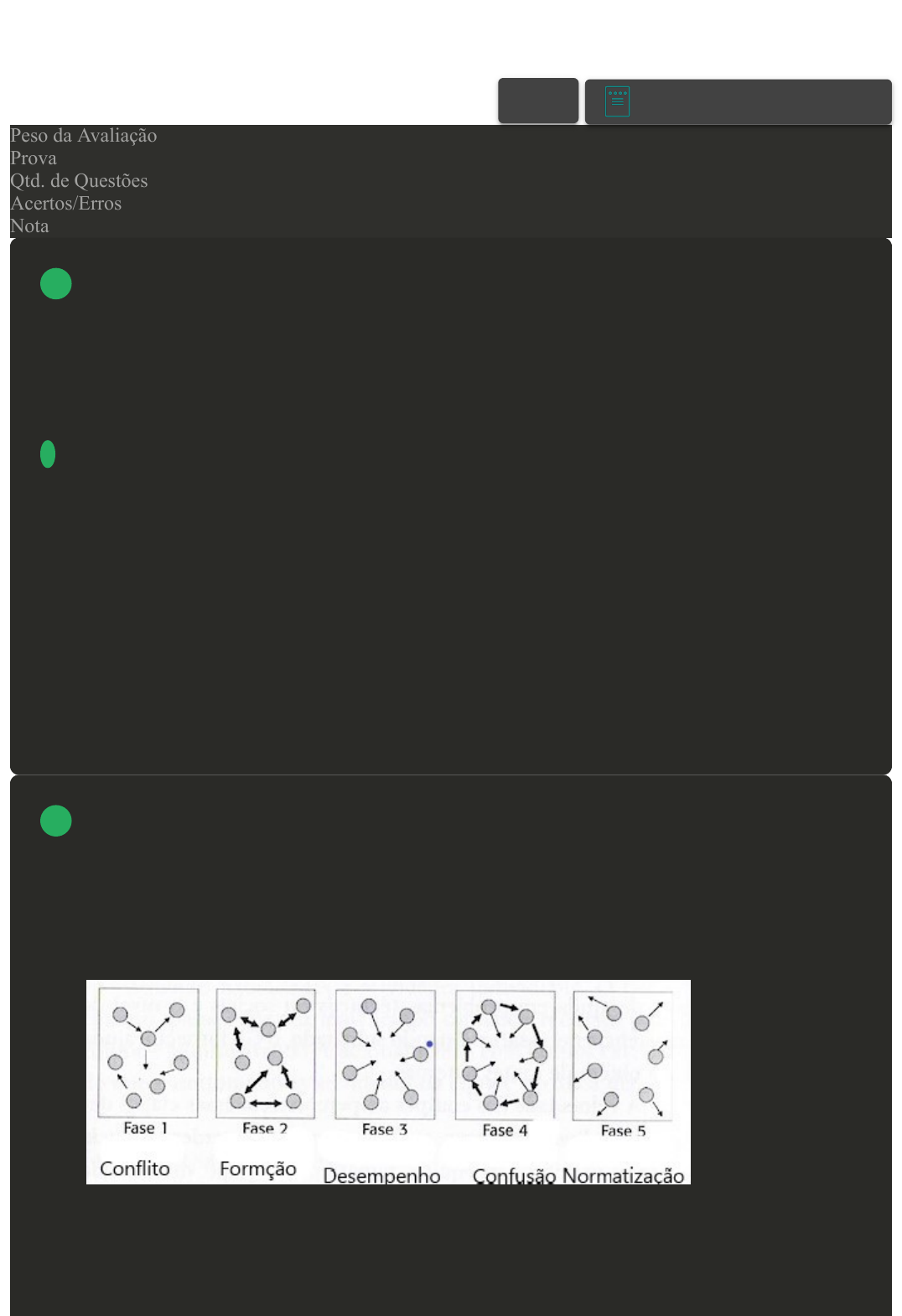 Prova Impressa GABARITO | Avaliação I - Individual (Cod.:766769) Peso da Avaliação 1,50 Prova 55734417 Qtd. de Questões 10 Acertos/Erros 9/1 Nota 9,00 “Geralmente, a formação de equipes passa por cinco estágios, que são: formação, tempestade, normatização, desempenho e encerramento” (TUCKMAN, 1977 apud MAXIMIANO, 2010, p. 175). Assinale a alternativa CORRETA que apresenta a definição do estágio de formação: FONTE: MAXIMIANO, Antonio Cesar Amuru. Administração de projetos: como transformar ideias em resultados. 4. ed. São Paulo: Atlas, 2010. A Trata do início da relação entre as pessoas que compõem a equipe. As pessoas ainda não se conhecem muito bem e, por isso, precisam identificar afinidades entre elas, bem como iniciar suas relações de interdependência no projeto. B É o estágio em que se formalizam certas normas com o intuito de amenizar ou interromper os conflitos que surgiram no estágio da tempestade. Nesse estágio, a equipe cria sua identidade de grupo e consegue evoluir no desenvolvimento do projeto, caso contrário a equipe fica estagnada no estágio de turbulências, podendo, até mesmo, acabar. C É o estágio de demonstração de maturidade da equipe. Caso o nível de desempenho fique em mediano ou baixo, pode ser sinal de que o estágio de normatização não foi bem desenvolvido. D Também conhecido como estágio de turbulência. Esse estágio é representado por uma fase de conflitos entre os integrantes da equipe, em que é possível perceber as diferenças entre as personalidades, opiniões etc. entre todos os envolvidos. De acordo com Tuckman (1977 apud MAXIMIANO, 2010, p. 175), para que sejam compostas as equipes, ocorre geralmente cinco estágios para que o processo de desenvolvimento torne as pessoas diretamente envolvidas no projeto. Sobre as fases do estágio, assinale a alternativa CORRETA: FONTE: MAXIMIANO, Antonio Cesar Amuru. Administração de projetos: como transformar ideias em resultados. 4. ed. São Paulo: Atlas, 2010. A VOLTAR A+ Alterar modo de visualização 1 2 B C D Pensar sobre o ciclo de vida de um projeto empresarial permite ao gestor uma noção do que deve ser produzido em cada etapa do projeto. Essas informações pensadas no âmbito temporal e de ciclo de vida são de grande valor, já que poderão orientar as ideias que poderão surgir no decorrer do projeto. Sobre o exposto, assinale a alternativa CORRETA: A O desenho, o desenvolvimento e a peça. B A descoberta, a concepção, o desenho, o desenvolvimento e a entrega. C A amostra, o desenho, o desenvolvimento e a entrega. D A descoberta, o desenvolvimento e a amostra. As competências são divididas em três grupos principais, que são: as competências técnicas que são responsáveis pela iniciação, condução e encerramento do projeto; as competências comportamentais dos indivíduos envolvidos no projeto e as competências contextuais relacionadas à organização (ou organizações) com as quais o projeto está envolvido. Assinale a alternativa CORRETA que apresenta apenas elementos de competências contextuais: A Sistemas, produtos e tecnologia; gerenciamento de pessoal; saúde, segurança, proteção e meio ambiente; finanças e legislação. 3 4 B Sistemas, produtos e tecnologia; gerenciamento de pessoal; criatividade, segurança, proteção e meio ambiente; finanças e legislação. C Sistemas, produtos e tecnologia; gerenciamento de pessoal; argumentação, segurança, proteção e meio ambiente; finanças e legislação. D Sistemas, produtos e tecnologia; gerenciamento de pessoal; eficiência, segurança, proteção e meio ambiente; finanças e legislação. Administrar um projeto empresarial pressupõe, basicamente, planejar, executar (e controlar) e encerrar as fases de seu ciclo de vida tanto no micro, ou seja, em cada uma das fases do ciclo de vida, quanto no macro, ou seja, no contexto geral do projeto. Maximiano (2010, p. 39) apresenta um roteiro prático para a administração de um projeto. Segundo Maximiano (2010), o plano básico (termo de abertura do projeto) deve conter, no mínimo, os alguns itens. Sobre esses itens, assinale a alternativa CORRETA: FONTE: MAXIMIANO, Antonio Cesar Amuru. Administração de projetos: como transformar ideias em resultados. 4. ed. São Paulo: Atlas, 2010. A Descrição do projeto; entregáveis. B Justificativas do projeto (business case); estimativas de custo e tempo. C Justificativas do projeto (business case); descrição do projeto; entregáveis; estimativas de custo e tempo. D Descrição do projeto; entregáveis; estimativas de custo e tempo. Estrutura organizacional é um padrão de interações, agrega os componentes tecnológicos e humanos da organização, de forma a assegurar que os objetivos próprios da organização sejam desenvolvidos e implementados em um dado contexto. Para atingir esses objetivos é preciso encontrar mecanismos eficientes de coordenação, integração e de fluxo de informação que permitam reduzir a incerteza na tomada de decisão (ROLDÃO, 2007, p. 31). As estruturas organizacionais citadas, de acordo com o PMI (2004, p. 28), são: “estrutura funcional, estrutura por projeto e estrutura matricial”. Considere as estruturas em que "há a participação, além do gerente funcional, de um gerente de projeto, ou seja, um novo membro é adicionado à estrutura. O gerente de projeto trabalha em tempo integral, mas a equipe do projeto permanece sendo capitaneada também pelo gerente funcional". A que o exposto se refere? FONTE: ROLDÃO, Victor Sequeira. Gestão de projetos: uma perspectiva integrada. São Carlos: EdUFSCar, 2007. MENEZES, Luís César de Moura. Gestão de projetos. 3. ed. São Paulo: Atlas, 2009. PMI. Guia PMBOK. Um guia do conjunto de conhecimentos em gerenciamento de projetos. 3. ed. Project Management Institute. Four Campus Boulevard, Newton Square, PA, EUA, 2004. A Estrutura Matricial Forte. B Estrutura Matricial. C Estrutura Matricial Fraca. D Estr