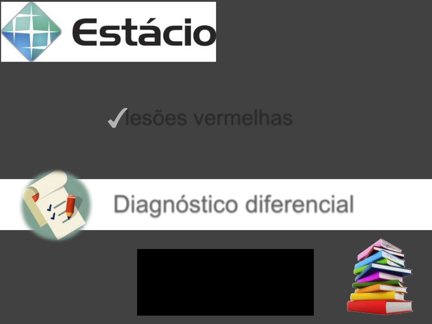Diagnóstico diferencial lesões vermelhas Simone de Macedo Amaral Estomatologia avançada 2022.1 Lesões vermelhas E Mistas (brancas e vermelhas) da cavidade oral Hemangioma e malformação vascular Trauma Candidose eritematosa Estomatite nicotínica Língua geográfica Queimaduras reação de sensibilidade Eritroplasia leucoeritroplasia Liquen plano- forma erosiva ou atrófica Lúpus eritematoso Hemangioma e malformação vascular Hemangioma e malformação vascular ▪ Hemangioma: lesão benigna da infância crescimento + proliferação endotelial + involução Crianças - 8 primeiras semanas de vida Região de cabeça e pescoço (60%) Acompanhamento ▪ Malformação vascular: alteração nos vasos Ao nascimento - persistentes Manchas “vinho do porto” Cirurgia, laser, crioterapia, esclerosantes, corticoide Disponível em: http://www.idoj.in/article.asp?issn=2229- 5178;year=2012;volume=3;issue=1;spage=28;epage=30;aulast=Rao Hemangiomas Lesões e alterações vasculares Lesões e alterações vasculares • Será visto mais profundamente na aula de lesões pigmentadas • Característica vermelha / arroxeada- varizes, hemangiomas, associadas a síndromes, sarcoma de kaposi ( aula de lesões pigmentadas e lesões exofíticas / aula de HIV) Hemangioma Lesões e alterações vasculares Hematoma por pressão negativa Sarcoma de Kaposi Condição proliferativa endotelial amplamente considerada como uma neoplasia. Segunda a quarta décadas de vida Induzido pelo herpesvírus humano-8 Agora- KSHV - herpesvírus associado ao sarcoma de Kaposi) Ligado a imunossupressão Síndrome de Sturge-Weber Angiomatose encefalotrigeminal Condição congênita não-hereditária rara Manchas “vinho do porto” ou nevo flâmeo (76%) (malformações vasculares), unilateral, ao longo do nervo trigêmeo Angiomas cerebrais, epilepsia (80%), retardo mental (54%), alterações oculares (37%) RX crânio: calcificações em “linhas de trem” (63%) Mucosa oral: áreas hiperplásicas avermelhadas https://www.aao.org/clinical-video/s%C3%ADndrome-sturge-weber https://www.osmosis.org/ learn/Sturge- Weber_syndrome https://www.lovewhatmatters.com/tag/sturge-weber-syndrome/ Candidose eritematosa Candidose eritematosa ▪ Candida albicans - principalmente ▪ Determinantes: Medicamentos - atrófica aguda Estado imune - pós- RXT Idiopática - Glossite romboidal mediana Perda dimensão vertical – queilite angular Uso de próteses dentárias Desequilibrio do microbioma oral Diabetes, hipossalivação ▪ IHO; antifúngico Scully, 2008 Warnakulasuryia, 2019 Scully, 2008 Manifestação vermelha Mais frequente - Língua e palato Pode acometer mais de um sítio Pode ou não estar associada a prótese Candidose eritematosa Woo, 2017 Queilite angular Glossite romboidal mediana Estomatite protética Estomatite protética Candidíase eritematosa Glossite por candida Glossite romboidal mediana Paracoccidioidomicose ▪ Doença sistêmica – infecção bucal sucede a pulmonar Fungo- habitat- terra, vegetais rasteiros – transmissão por inalação ou boca-terra. ▪Semelhante clinicamente com o CEC – lesão ulcerada extensa de fundo esbranquiçado, micropápulas, curso lento avermelhadas, puntiformes, assentadas em meio a fundo Esbranquiçado, indolor. Estomatite moriforme preferencia por gengiva Lesões Mistas- Brancas e vermelhas Estomatite nicotínica Estomatite nicotínica ▪ Resposta ao calor; cachimbo - não relacionada aos agentes carcinógenos! ▪ ♂; 45 anos ▪ Queratinização do palato + inflamação das glândulas salivares menores ▪ Reversível Scully, 2008 Área esbranquiçada, contendo variável quantidade de pequenas elevações “umbilicadas”, que correspondem a glândulas mucosas dilatadas e inflamadas. Os pontos vermelhos representam inflamação dos ductos excretores das glândulas salivares menores Woo, 2017 Raramente evolui para uma lesão maligna, exceto em indivíduos que têm o hábito do fumo invertido Língua geográfica ▪ Eritema migrans, Glossite migratória benigna, Eritema areata migrans ▪ Comum, 1 a 3% população - + mulheres causa? Anomalia de desenvolvimento ▪ Indivíduos atópicos? Psoríase oral? Hereditário? ▪ Localização variável - melhoram e recorrem em outra área ▪ Assintomático; sensação de queimação – corticoide tópico Presença de pequenas áreas de desceratinização e descamação e Áreas erosivas no dorso e nas bordas da língua que podem ser isoladas ou múltiplas Manifestação clínica - placas atróficas avermelhadas rodeadas por bordas esbranquiçadas nos casos típicos ou perda localizada das papilas filiformes - placa avermelhada ou brancas Woo, 2017 Zona de eritema: Atrofia (perda) papilas filiformes + inflamação - mucosa sensível/ demarcação por área branca Reação de sensibilidade- estomatite de contato Toothpaste allergy diagnosis and management. Zirwas MJ, Otto S. . J Clin Aesthet Dermatol. 2010 May; 3(5):42-7. Sensibilização prévia e reexposição do indivíduo ao alergeno. Quantidade menor de saliva = Menor proteção do meio Aditivos alimentares, Chicletes Canela, Própolis e componentes de cremes dentais 1- Lauril sulfato de sódio - aumenta a permeabilidade dos tecidos 2- Pirofosfato, hexametafosfato - clareadoras e anti-tártaro 3- Aromatizantes -Óleo de canela, menta ,carvona (odor hortelã) Anetol - (Anis e Erva-doce, 13 x mais doce que o açúcar) 4- Outras substâncias - Clorexidina, Própolis, peróxido de hidrogênio http://www.ncbi.nlm.nih.gov/pubmed/20725569 http://www.ncbi.nlm.nih.gov/pubmed/20725569 Acantose e hiperparaqueratose H20-14872 Bicarbonato de sódio, ácido cítrico, hidroxiapatita, ciclamato de sódio, sacarina sódica, xilitol, citrato de potássio, extrato de melaleuca alternifolia (tea tree), fragrância, limoneno, linalol. Trauma local Paciente de 28 anos, gênero masculino com queixa principal de "inchaço na região anterior do céu da boca" com evolução de sete dias. Durante anamnese, p