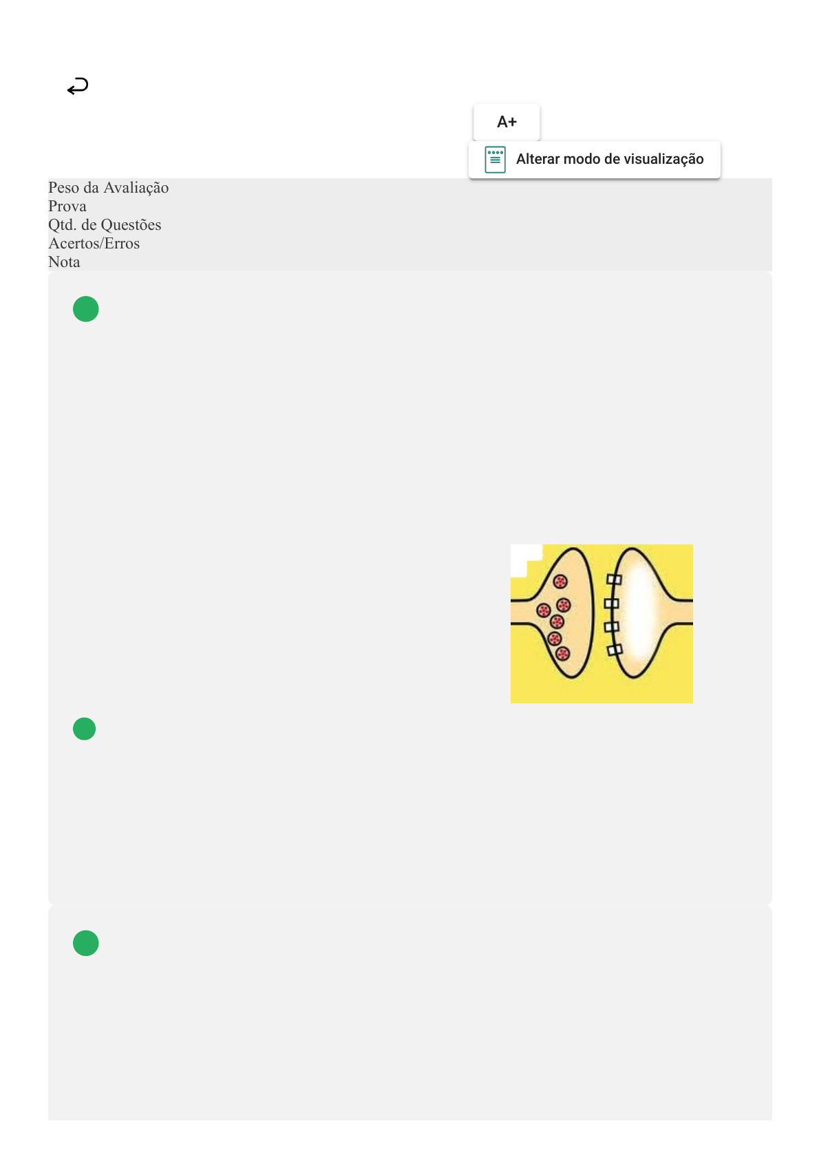 14/07/2022 17:07 Avaliação Final (Objetiva) - Individual about:blank 1/6 Prova Impressa GABARITO | Avaliação Final (Objetiva) - Individual (Cod.:669823) Peso da Avaliação 3,00 Prova 29112486 Qtd. de Questões 12 Acertos/Erros 12/0 Nota 10,00 O funcionamento do nosso cérebro é realizado pela transmissão constante de sinais de um lado para outro. O que você faz, reflete ou sente depende de quais neurônios estão mais ou menos ativos a cada instante. Essas transmissões ocorrem através das sinapses. Sobre as sinapses, analise as sentenças a seguir: I- Durante as realizações das sinapses não há contato entre os neurônios. II- As mensagens são enviadas por neurotransmissores de uma célula para outra. III- As sinapses processam as informações e são capazes de alterar o comportamento em decorrência das suas experiências prévias. IV- As sinapses servem para receber, analisar e conduzir informações. Agora, assinale a alternativa CORRETA: FONTE DA IMAGEM: Disponível em: . Acesso em: 3 dez. 2012. A As sentenças I, II e IV estão corretas. B As sentenças I, III e IV estão corretas. C Somente a sentença III está correta. D Somente a sentença II estão correta. A linguagem é um dos componentes fundamentais no processo de aprendizagem. Sabe-se que há áreas específicas no cérebro responsáveis pela linguagem, além dela ser expressa de várias maneiras. Sobre a linguagem, analise as sentenças a seguir: I- Lesões na área de Broca prejudicam a articulação da fala. II- A área de Wernicke é responsável pela compreensão da fala. III- A linguagem pode ser expressa por meio de gestos, olhares e sons. IV- A postura corporal e as expressões faciais são características da linguagem verbal. VOLTAR A+ Alterar modo de visualização 1 2 14/07/2022 17:07 Avaliação Final (Objetiva) - Individual about:blank 2/6 Agora, assinale a alternativa CORRETA: A As sentenças I, II e III estão corretas. B As sentenças I, II e IV estão corretas. C As sentenças III e IV estão corretas. D As sentenças II, III e IV estão corretas. A criança, desde o útero materno, recebe amor e muito carinho por parte de seus pais. Quando ela nasce, é estimulada por meio de movimentos e sensações. Esta é uma relação importante para aquisições de novas habilidades, tanto intelectual, emocional como social. Sobre a afetividade, analise as seguintes sentenças: I- Quando uma criança cresce em um ambiente afetivo, ela tem maior possibilidade de se tornar um adulto mais seguro, confiante e equilibrado. II- No mundo moderno, a tecnologia vem influenciando significativamente a vida das pessoas, proporcionando isolamento social. Esta situação pode muitas vezes limitar a afetividade nas famílias. III- Para que ocorra um bom desenvolvimento do corpo humano, alguns fatores são essenciais, sendo que as brincadeiras isoladas dos grupos são um deles. Agora, assinale a alternativa CORRETA: A Somente a sentença III está correta. B As sentenças I e II estão corretas. C As sentenças I e III estão corretas. D Somente a sentença II está correta. Ao considerarmos a história da Psicomotricidade, verificamos que esta iniciou com um viés filosófico, sendo incrementada pela Biologia, Psicologia, Psicanálise e, mais recentemente, passando a interessar também a Pedagogia e a Educação Física. Acerca da Psicomotricidade, associe os itens, utilizando o código a seguir: I- Definição e finalidade correta de psicomotricidade. II- Definição e finalidade incorreta de psicomotricidade. ( ) A principal finalidade da psicomotricidade é colaborar para o desenvolvimento motor da criança, cooperando, assim, com a evolução de sua personalidade e com o êxito escolar. ( ) A psicomotricidade visa a proporcionar uma prática pedagógica que potencialize a aprendizagem por meio do desenvolvimento integral. ( ) A psicomotricidade é a práxis que se propõe a auxiliar os adultos a executar as atividades cotidianas que são importantes para eles, a despeito da debilidade, incapacidade ou deficiências. ( ) O objetivo inicial da psicomotricidade era curar, evitar recaídas, reabilitar o paciente e diminuir o estresse familiar. Agora, assinale a alternativa que apresenta a sequência CORRETA: 3 4 14/07/2022 17:07 Avaliação Final (Objetiva) - Individual about:blank 3/6 A I - I - II - II. B II - II - I - I. C II - I - I - II. D II - I - II - I. A Educação Infantil é considerada a base da educação, na qual a criança entra em contato com um universo de possibilidades antes desconhecidas. Neste sentido, a psicomotricidade nesta fase inicial torna esse processo: A Rico de possibilidades, experiências, vivências. B Harmonioso, determinante, intencional. C Confortável, brilhante, objetivo. D Vislumbrante, criativo, harmonioso. Segundo Alves (2009), nosso corpo somos nós, somos o que parecemos ser, confundimos o visível com o superficial e, por meio da psicomotricidade, conseguimos buscar aquilo que não conseguimos ver, isto é, nosso conteúdo, nossa inteligência, nossa alma. Partindo desse pressuposto, classifique V para as sentenças verdadeiras e F para as falsas: ( ) O trabalho psicomotor contribui significativamente para a aprendizagem, ele é essencial para a educação, pois permite trabalhar o corpo na sua totalidade. ( ) A psicomotricidade busca favorecer a maturação da criança pelas suas ações e brincadeiras. ( ) A psicomotricidade auxilia a criança na busca da autonomia, na conquista de um desenvolvimento harmonioso. ( ) O trabalho psicomotor deve ser realizado apenas por profissionais habilitados, como psicomotricista, fonoaudiólogo, fisioterapeuta. Agora, assinale a alternativa que apresenta a sequência CORRETA: FONTE: ALVES, Fátima. Como aplicar a psicomotricidade. Rio de Janeiro: Wak, 2009. A F - F - V - V. B V - F - F - V. C F - V - F - F. D V - V - V - F. Segundo Carvalho (2003), a educação psicomotora se coloca no sentido de uma educação que não se restringe ap