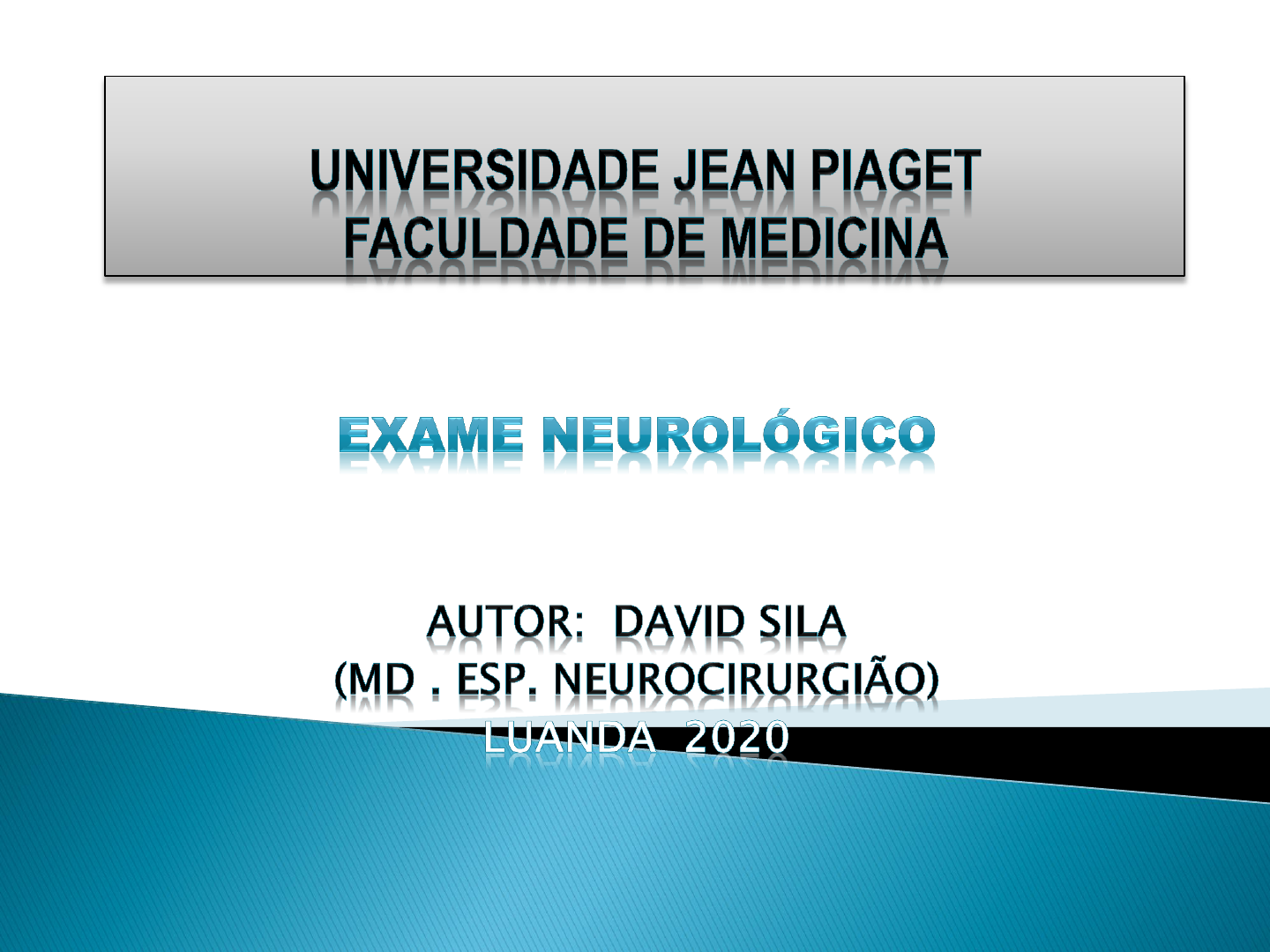 Aula nº 1 I- Introdução II-Objectivos III-Breve anatomia do sistema nervoso central IV-Material necessário para realizar o exame neurológico V-Como realizar um bom Exame Neurológico ? O exame neurológico é, reconhecidamente, uma ferramenta importante na avaliação do paciente que apresenta danos neurológico de diferentes graus e origens. É bastante util saber por onde começar Assim parte-se do exame geral para o mais especifico, deste para a função cortical e para os reflexos Orientar o medico interno /estudantes de medicina na realização do exame neurológico Capacitar o medico na elucidação diagnóstica Reconhecer as alterações das funções normais dos orgãos e aparelhos Para atender aos objetivos do ensino neurológico, é necessário que os alunos disponham de instrumentos adequados que serão exigidos, por serem indispensáveis ao exame clínico. Consideramos essencial que todo estudante tenha, para uso pessoal, o seguinte material: 1. Abaixador de língua 2. Algodão 3. Alfinete 4. Estilete de ponta romba 5. Fita métrica 6. Lanterna de bolso 7. Martelo de reflexos. 8. Diapasão de 128 ou 256 Hertz 9. Oftalmoscópio. 1- Anamnese: 1.1. Queixa e duração. 1.2. História da moléstia atual. . Início: súbito, insidioso. . Evolução: estacionária, regressiva,progressiva. paroxística, recidivante ondulante ;Tratamentos anteriores 1.3 Antecedentes pessoais 1.4 Antecedentes familiares 2. Exame físico geral 2.1. Tipo constitucional. Mucosas. Estado de nutrição. 2.2. Alterações cutâneas: manchas hipercrônicas, hipocrônicas e vinhosas, tumoração,alterações tróficas da pele e anexos. 2.3. Exame de crânio: palpação, percussão. (fontanela , perimetro cefalico ‘’ crianças’’) 2.4. Exame da coluna: inspeção movimentação ativa,percussão. 2.5. Exame de ossos e articulações. Alterações tróficas ,pontos dolorosos superficial. 2.6. Aparelho cardio-respiratório. 2.7. Aparelho digestivo. 2.8. Aparelho geniturinário. 2.9. Pulsos arteriais: carotídeo, radial, femural, pedioso, temporal superficial. 3. Exame neurológico: Estado de consciência, comunicação e cognição Nervos cranianos Sensibilidade Força e tónus musculares Reflexos Função cerebelar Irritação meníngea A percepção consciente do mundo exterior de si mesmo caracteriza o estado- vigilia que resultante da actividade de diversas áreas cerebrais coordenadas –sistema reticular ativador ascendente Quando a consciência é comprometida de modo pouco intenso, mas seu estado de alerta é discreto a moderadamente comprometido - obnubilação Na sonolência , paciente é facilmente despertado, responde mais ou menos apropriadamente e logo volta a dormir Confusão mental / Delirium -configura-se por perda de atenção, pensamento não é claro , respostas lenta e não há percepção normal, podendo surgir alucinações,agitação Se a alteração de consciência é mais pronunciada, mas o paciente ainda é despertado por estímulos mais fortes, tem movimentos espontâneos e não abre olhos –estupor / torpor Se não há despertar com essa estimulação e o paciente está sem movimentos espontâneos – Coma Desse modo tem sido utilizado a Escala de Coma de Glasgow (GCS) 1974-Teasdale e jennett Distúrbios de comunicação: Disfonia- alteração do timbre da voz ,que se torna rouca ou bitonal , depende da disfunção das cordas vocais, Lesão do nervo a acessório (XI ) Quando bilateral torna-se afónico Disartria- alteração da articulação da palavra falada ou fala decorrente de algumas neuropatias centrais ou periféricas Dislalia – perturbação da articulação da palavra falada sem as causas estejam localizadas no SN Disritmolalia – perturbação do ritmo da fala, destacando- se taquilalia , gagueira Dislexia – consiste na dificuldade de capacitar–se para a leitura convencionalmente ensinada ( natureza genética) Disgrafia – onde a grafia é basicamente irregular, fragmentada muitas vezes tornar –se ilegível Afasia - perda total da linguagem As mais importantes formas clínicas de afasia são: Afasia motora ou verbal (afasia de broca) Afasia receptiva ou sensorial (afasia de wernicke) Afasia global Afasia de condução – em que a maior dificuldade é a repetição de palavras, embora consiga ler Afasia amnéstica – incapacidade para nomear ou designar os vocábulos / nome de objectos Afasia transcortical- o achado mais relevante é a repetição conservada, apesar de existir outros sintomas de afasia Alteração cognitiva Gnosia – reconhecimento ( córtex cerebral ) Agnosia – perda do reconhecimento ; outros tipos são: Agnosia auditiva (sons ) Cegueira cortical ou psíquica( visão de objetos ) Estereoagnosia ( colocados em sua mão ao ser suprimida a visão ) Somatoagnosia (do próprio corpo em relação a\o espaço ) Prosopoagnosia (fisionomia alheia) Autoprosopoagnosia ( sua própria fisionomia ) Distúrbios das praxias : Praxia – capacidade de realizar actividade gestual consciente e intencional. Apraxia –dificuldade ou incapacidade desta actividade ,sem que haja paralisias, ataxias ou hipercinesias . Apraxia construtiva Apraxia ideomotora Apraxia ideatoria Apraxia de vestir Apraxia de marcha Apraxia bucolinguofacial NERVOS CRANIANOS SENSIBILIDADE Nervos cranianos Existe 12 pares cranianos tem origem do tronco encefalico ; com excesão do XI par cranino cuja origem se encontra na medula espinal I Nervo Olfatório Receptores na mucosa nasal --------- centros corticais da olfação ( Hipocampo) I Nervo Olfatório De olhos fechados , o paciente deve reconhecer o aroma que o examinador coloca diante de cada narina. I Nervo Olfatório Condições que impeçam o reconhecimento do odor : - Resfriados ( Hiposmia ) -Atrofia da mucosa ( Anosmia ) ganha importância clínica nas situações de trauma , lesões infiltrativas da goteira olfatória Lesões corticais - Parosmia : perversão do olfato - Cacosmia : sensação olfatório desagradável na 