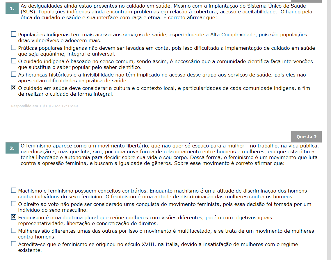 Questão 3 O feminismo de modo algum pode ser considerado como o equivalente feminino do machismo, porque machismo traduz a ideia de superioridade ...
