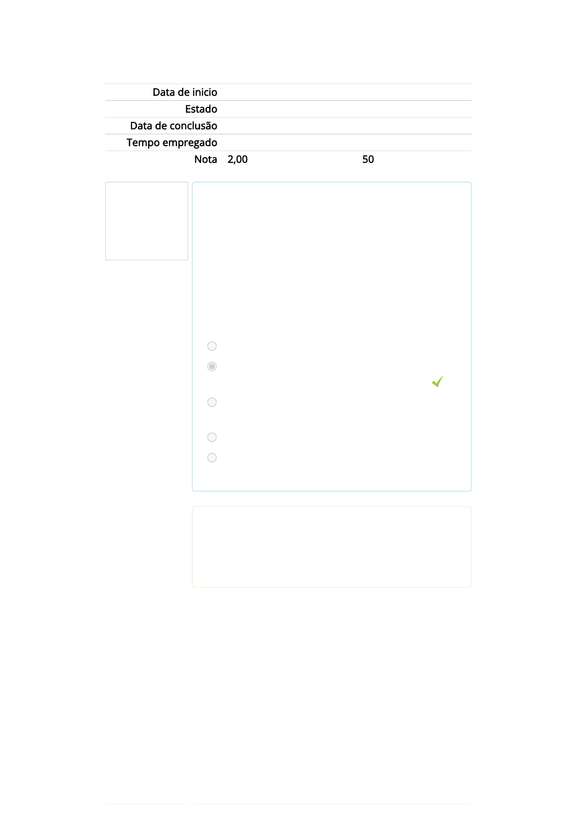 Questão 1 Correto Atingiu 1,00 de 1,00 Gestão de Carreiras ► AVALIAÇÃO ► ATIVIDADE DO ESTUDO DE CASO Data de inicio quinta, 13 Out 2022, 14:17 Estado Finalizada Data de conclusão quinta, 13 Out 2022, 14:35 Tempo empregado 18 minutos 22 segundos Nota 2,00 de um máximo de 4,00(50%) De acordo com o livro texto, o termo Feedback é uma palavra inglesa que signi�ca dar resposta, ferramenta utilizada nas empresas para dar retorno sobre vivências e situações, utilizadas para avaliação de pro�ssionais e equipes dentro de um ambiente de negócios. Analise as a�rmativas abaixo, e assinale a que corresponde ao Feedback recebido pelo Sr. Geraldo na loja de Curitiba. Escolha uma: a. Todos os feedbacks foram negativos. b. Recebeu feedback proativo de Samuel e feedback negativo dos demais funcionários. c. Adequados ao nível de treinamento e capacitação pro�ssional. d. Assertivos e pontuais e. Nenhuma das alternativas anteriores está correta. Sua resposta está correta. A resposta correta é: Recebeu feedback proativo de Samuel e feedback negativo dos demais funcionários.. https://moodle.universoead.com.br/course/view.php?id=49 https://moodle.universoead.com.br/mod/quiz/view.php?id=2328 Questão 2 Incorreto Atingiu 0,00 de 1,00 Questão 3 Incorreto Atingiu 0,00 de 1,00 Pela sua habilidade de criar sistemas multicanais de vendas do varejo, imagine que Samuel passou a ser assediado por outras empresas, que são contratadas para fazerem o processo de recrutamento e seleção e neste processo não podem cobrar do entrevistado. Desta forma, assinale a alternativa que corresponde a pro�ssionais que realizam este tipo de serviço. Escolha uma: a. Coaching. b. Coach. c. Headhunters. d. Recursos Humanos. e. Nenhuma das alternativas anteriores está correta. Sua resposta está incorreta. A resposta correta é: Headhunters.. Samuel conseguiu ascensão pro�ssional na rede de supermercados graças a um trabalho particular dele próprio na construção de sua marca, pela prática: Escolha uma: a. De utilizar as redes sociais. b. De utilizar o autoconhecimento do saber o que oferecer. c. De melhorar as relações de empregabilidade. d. De elaborar apresentações dinâmicas e convincentes o que permitiu atingir o sucesso. e. Nenhuma das alternativas anteriores está correta. Sua resposta está incorreta. A resposta correta é: De utilizar o autoconhecimento do saber o que oferecer.. Questão 4 Correto Atingiu 1,00 de 1,00 De acordo com nossos estudos, o networking pessoal e empresarial impulsionam os contatos destas redes. O efeito destas interações é percebido no cotidiano do desenvolvimento pro�ssional. Para ter um networking e�ciente, Samuel precisou tomar quais ações? Escolha uma: a. Criar objetivos diferentes para cada grupo de networking, inclusive com abordagens estudadas e exploradas de forma diferente. b. Apenas manter contato com fornecedores e colaboradores de forma e�ciente. c. Criar um banco de dados de fornecedores. d. Estruturar as lojas, para melhoria do processo de atendimento ao cliente. e. Nenhuma das alternativas anteriores está correta. Sua resposta está correta. A resposta correta é: Criar objetivos diferentes para cada grupo de networking, inclusive com abordagens estudadas e exploradas de forma diferente..